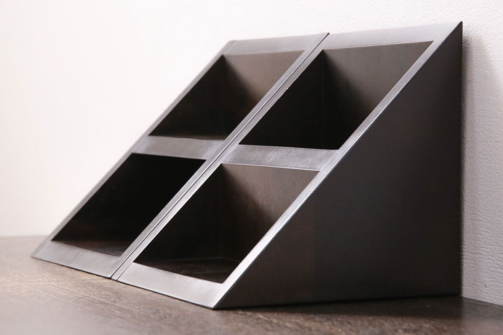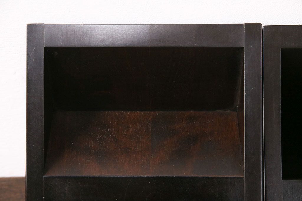 民芸家具 > 中古 北海道民芸家具 使い方いろいろ!置き方次第でペン立てにも棚にもなる小さな飾り棚2個セット(花台、ディスプレイ台、ペン立て、小物収納)(R-050707)