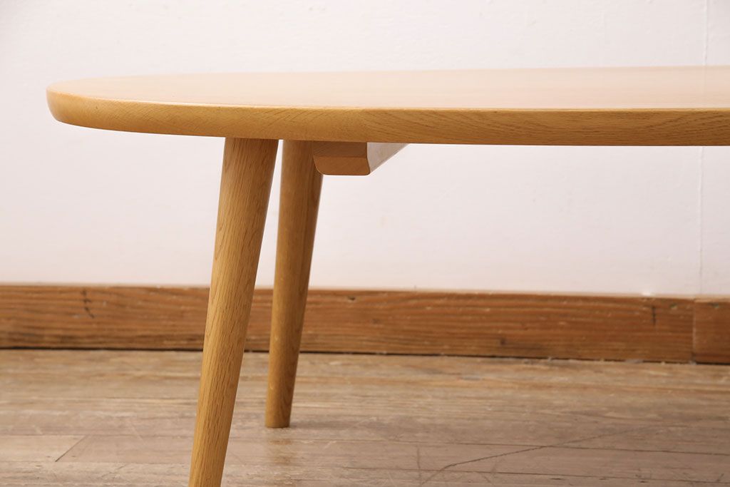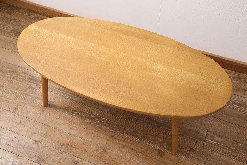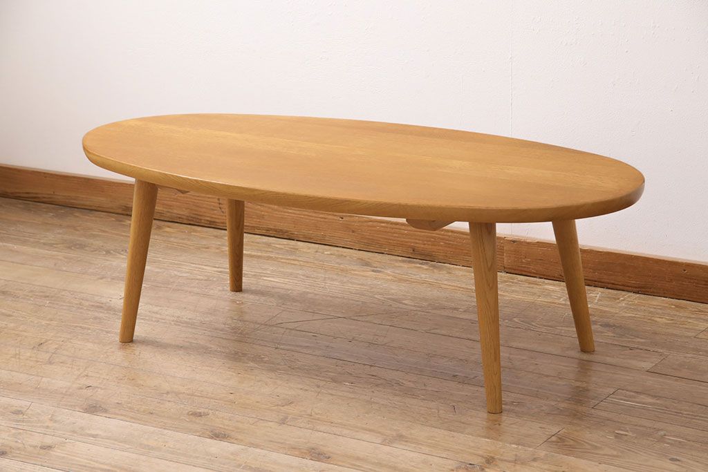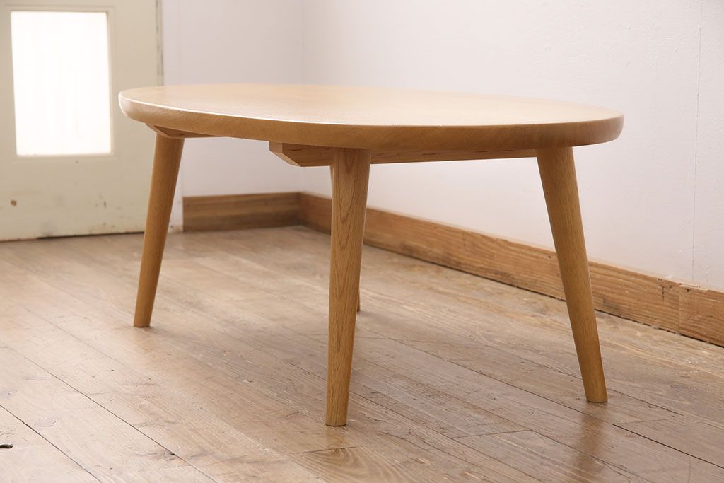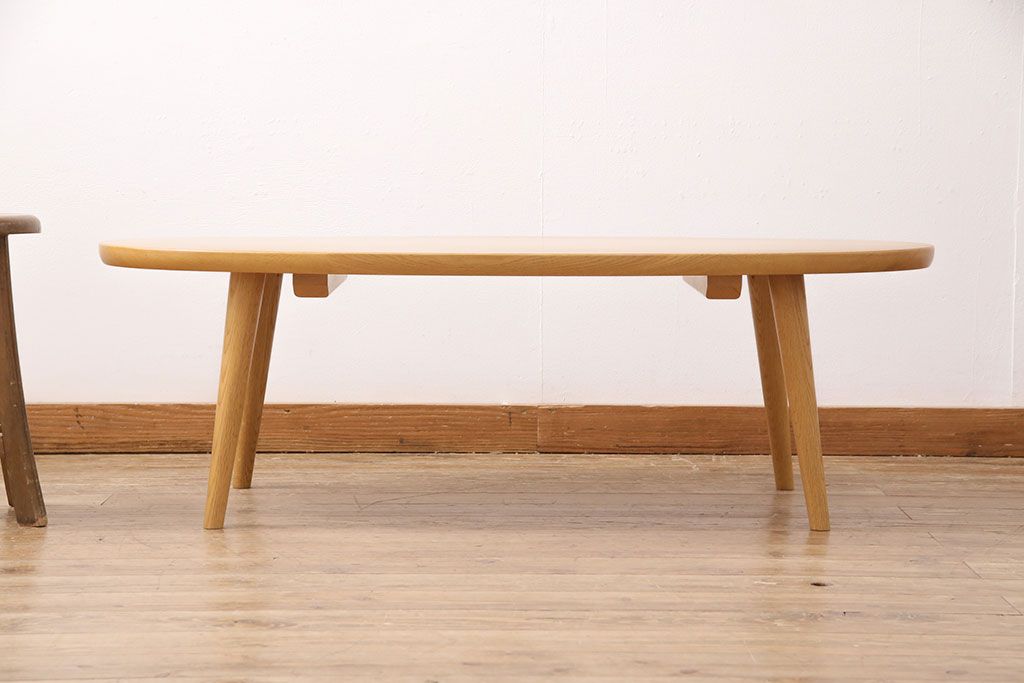 中古 柏木工(KASHIWA・カシワ) ナラ材 滑らかな木の風合いが魅力!温かみのある空間を演出するローテーブル(座卓、リビングテーブル)(定価約16万円)(R-050664)