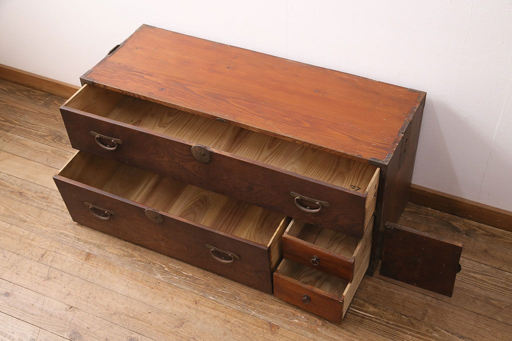 和箪笥> 衣装箪笥 > 昭和初期の仙台箪笥の見た目を変えずに綺麗にリペア!引き出しや可動部の調整。着色せず仕上げ。(時代箪笥、和タンス、引き出し、収納箪笥)