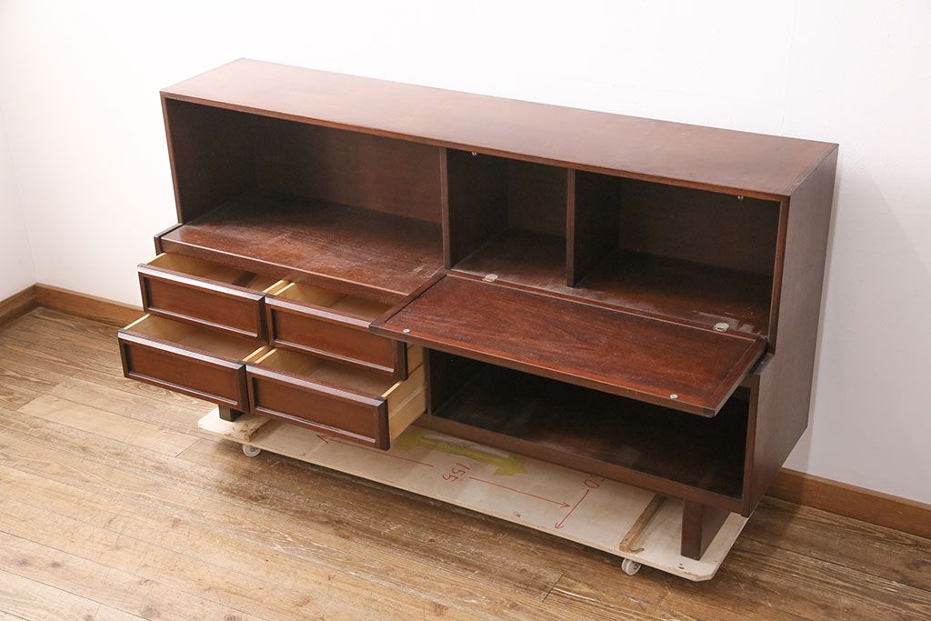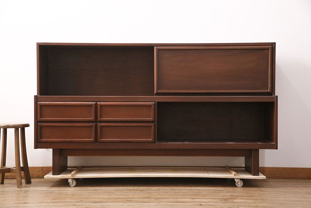 ラフジュ工房> キャビネット・戸棚> サイドキャビネット > ジャパンヴィンテージ チーク材 北欧家具のようなスタイリッシュさが魅力的なサイドボード(収納棚、戸棚、キャビネット、ビンテージ)(R-050712)