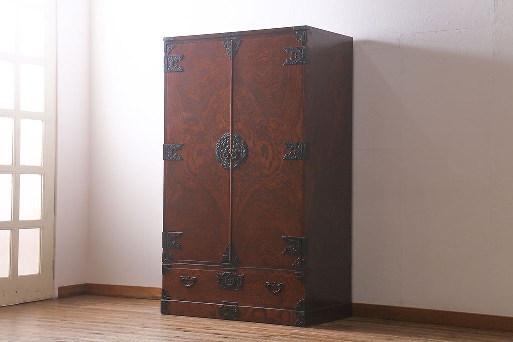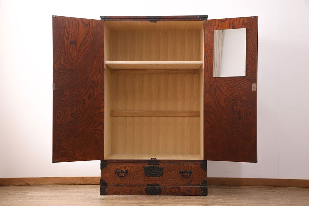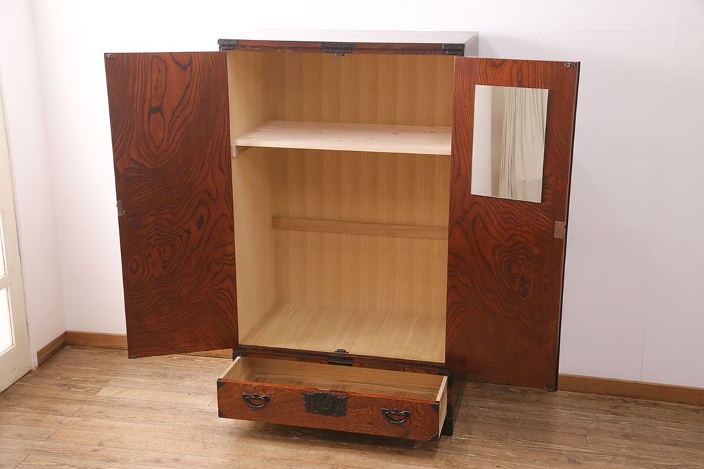 民芸家具 > 岩谷堂箪笥の洋服タンスをリペア&カスタム!内部のポール・ネクタイ収納・小物入れを取り外し、棚を追加。(ワードローブ)