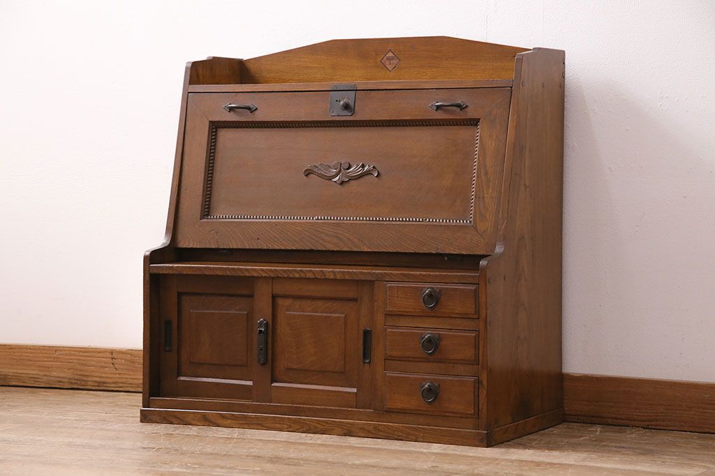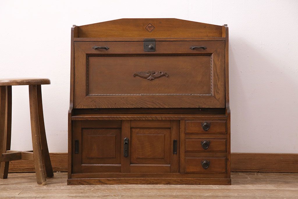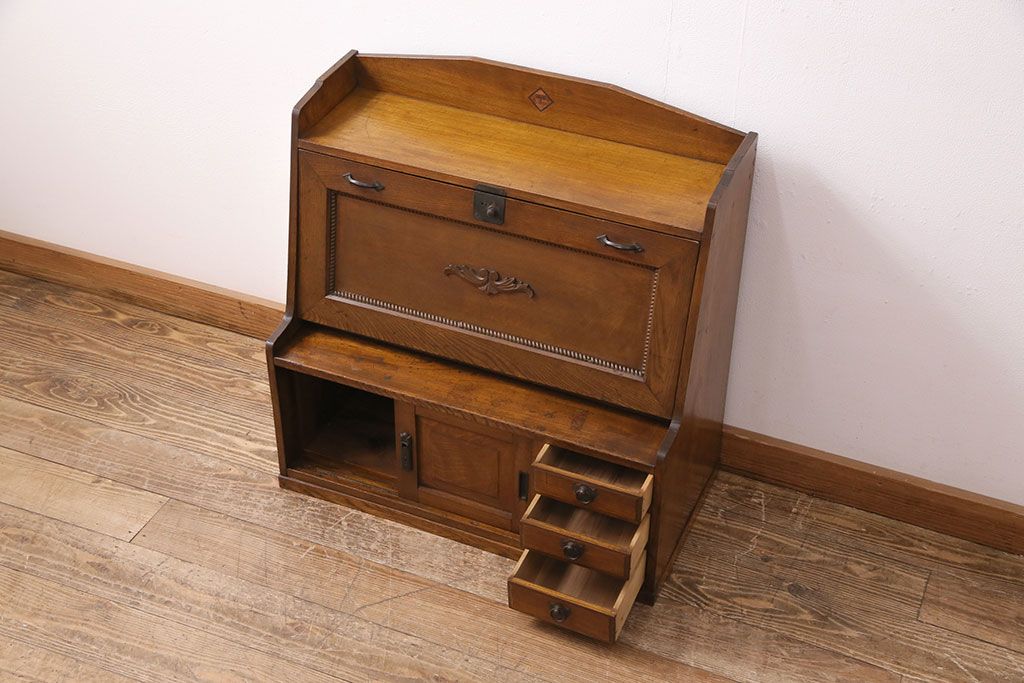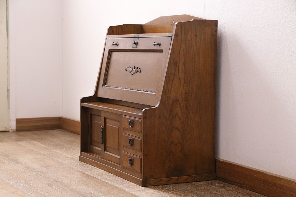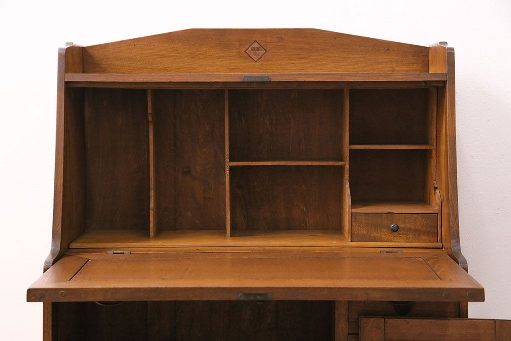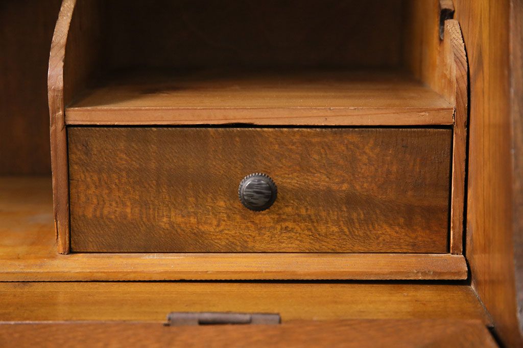 ライティングビューローをリペア&カスタム!高品質リペアを施し、1トーン落ち着いた色味に着色し仕上げ。(簿記机、デスク、引き出し)