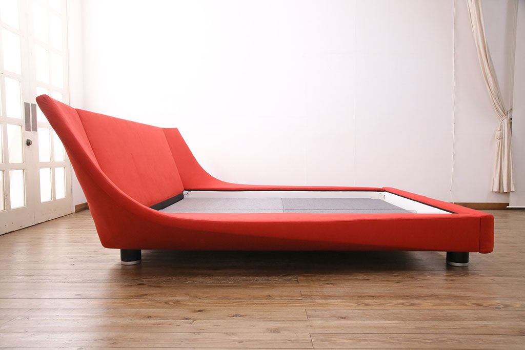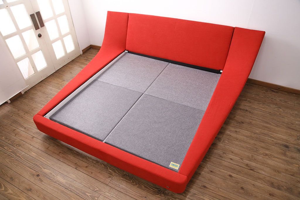 中古 展示美品 希少 RUF(ルフ) レッドカラーが空間のアクセントになるベッドフレーム(キングサイズ)(定価約47万円)(R-050493)