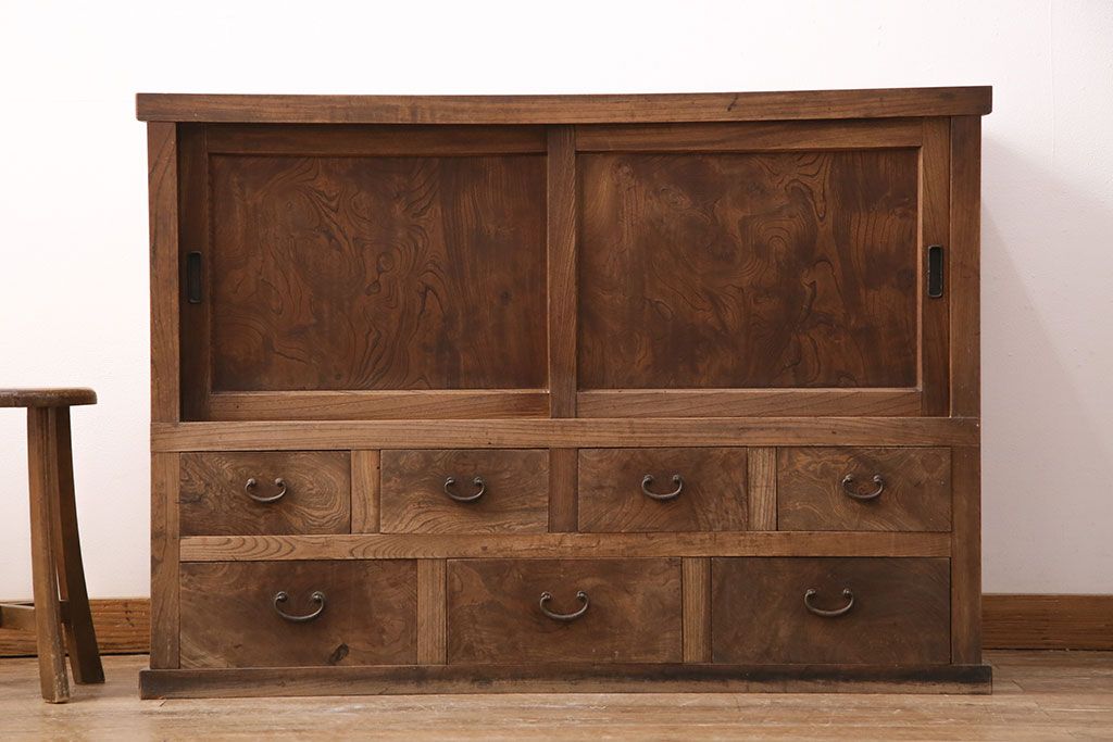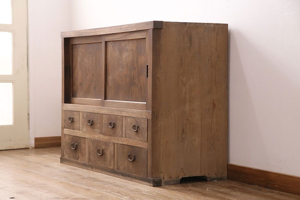 和箪笥 > 明治大正期の箪笥サイドボードの見た目を変えずに綺麗にリペア!高品質リペアを施し、欠損した金具を取り付け。(収納棚、戸棚、時代箪笥)