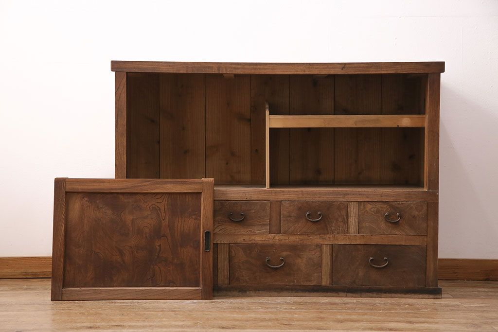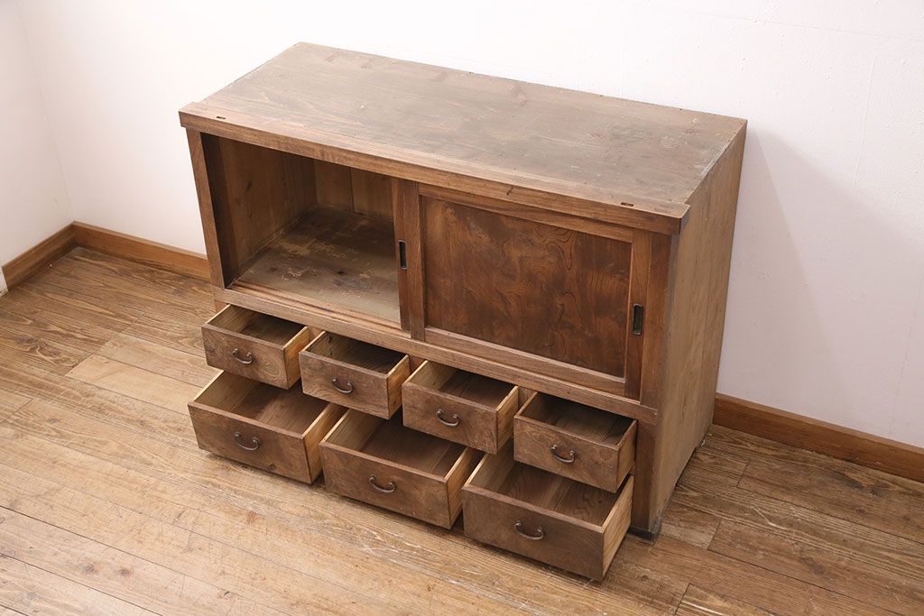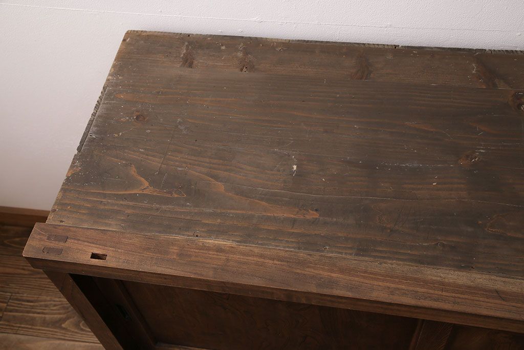 キャビネット・戸棚> サイドボード > 明治大正期の箪笥サイドボードの見た目を変えずに綺麗にリペア!高品質リペアを施し、欠損した金具を取り付け。(収納棚、戸棚、時代箪笥)