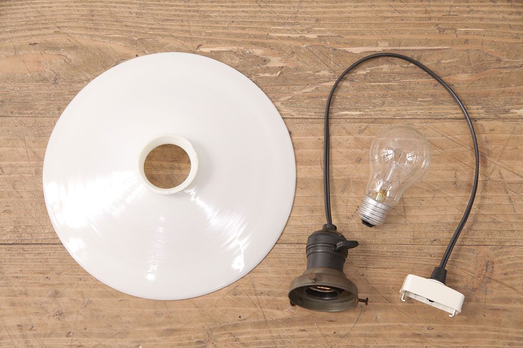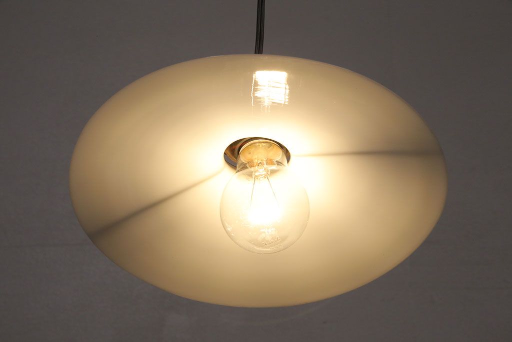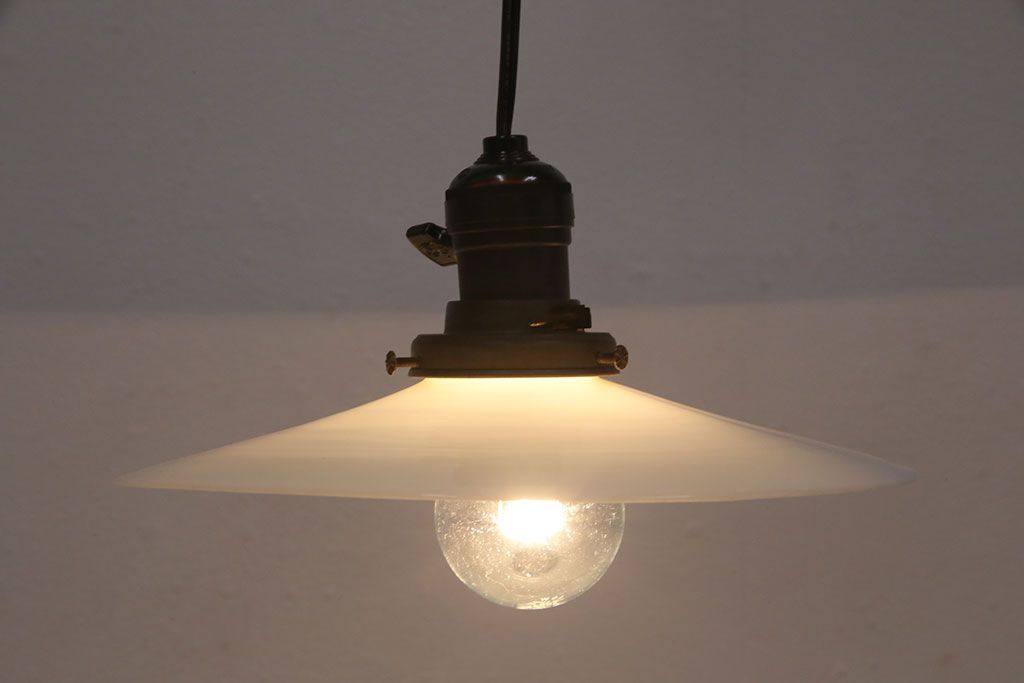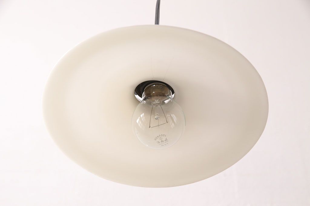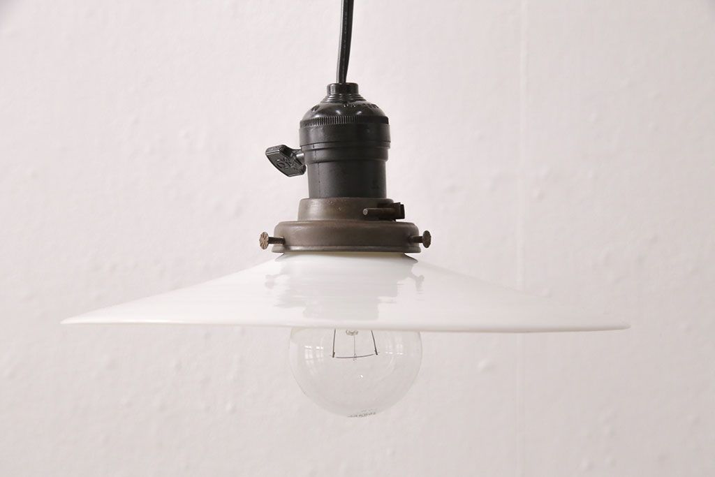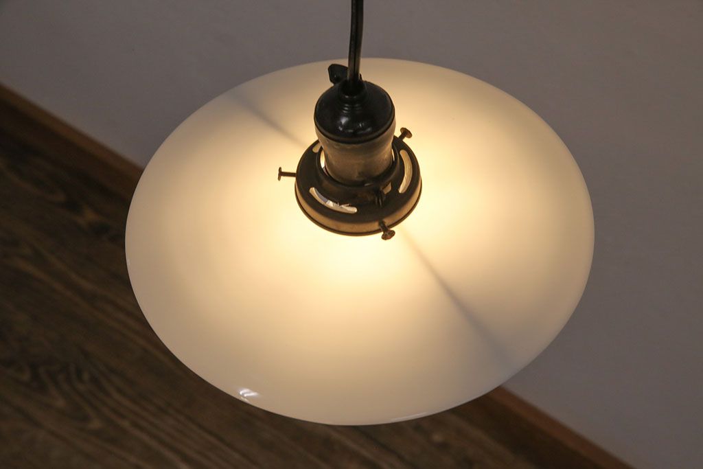 アンティーク照明 昭和レトロ ノスタルジックな雰囲気を醸し出す平笠シェードの吊り下げ照明(ペンダントライト、天井照明、電笠)(R-050797)