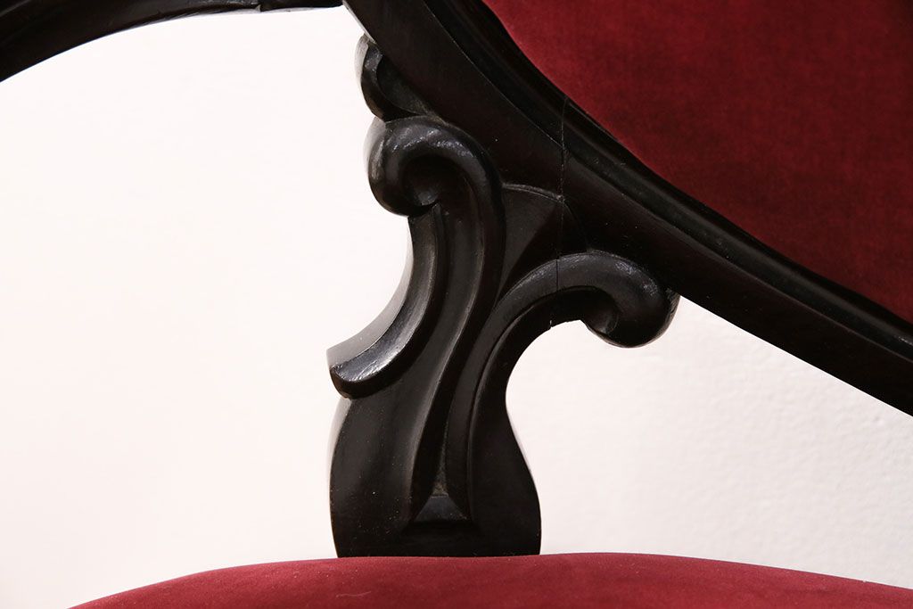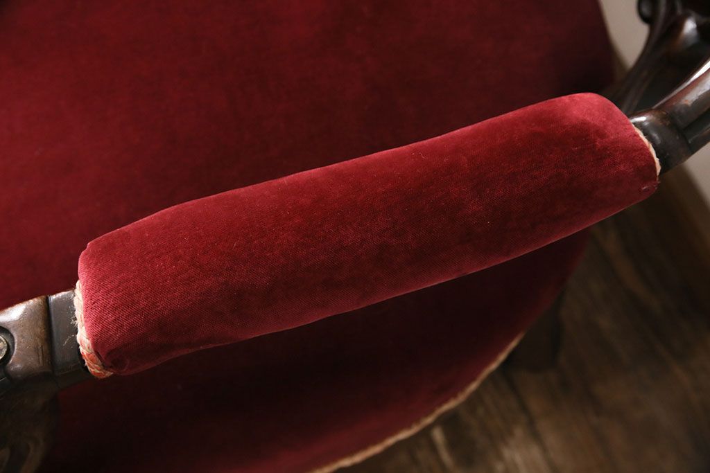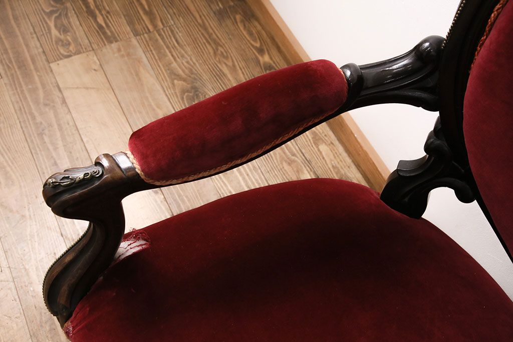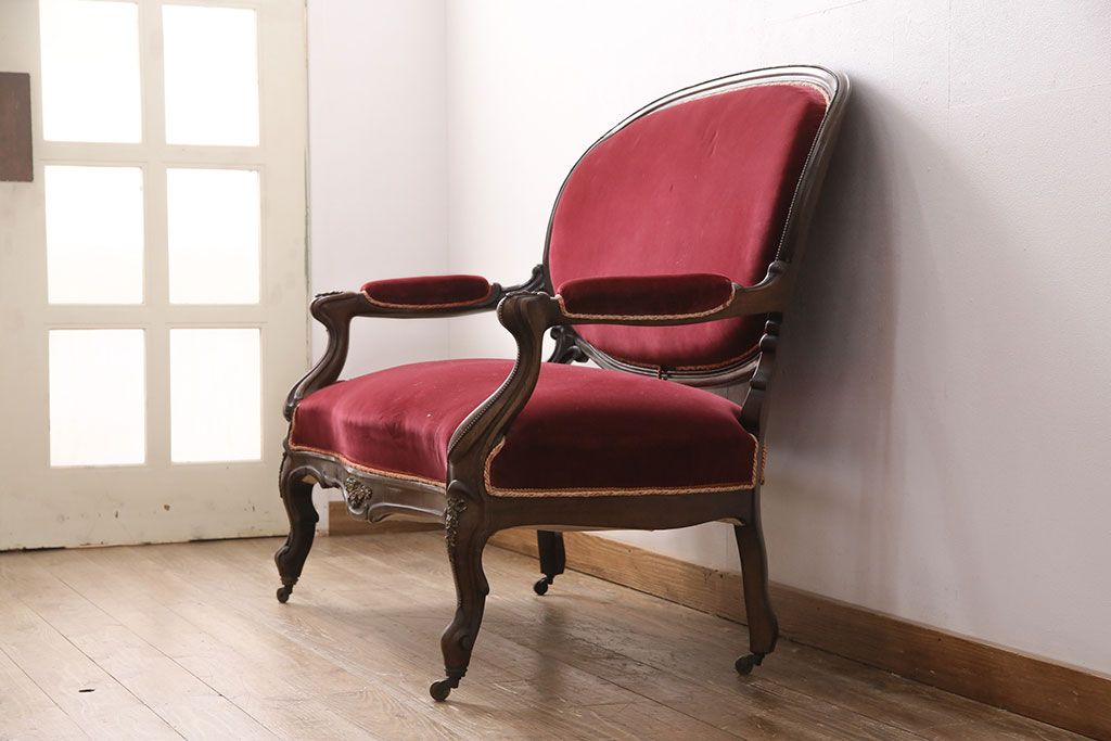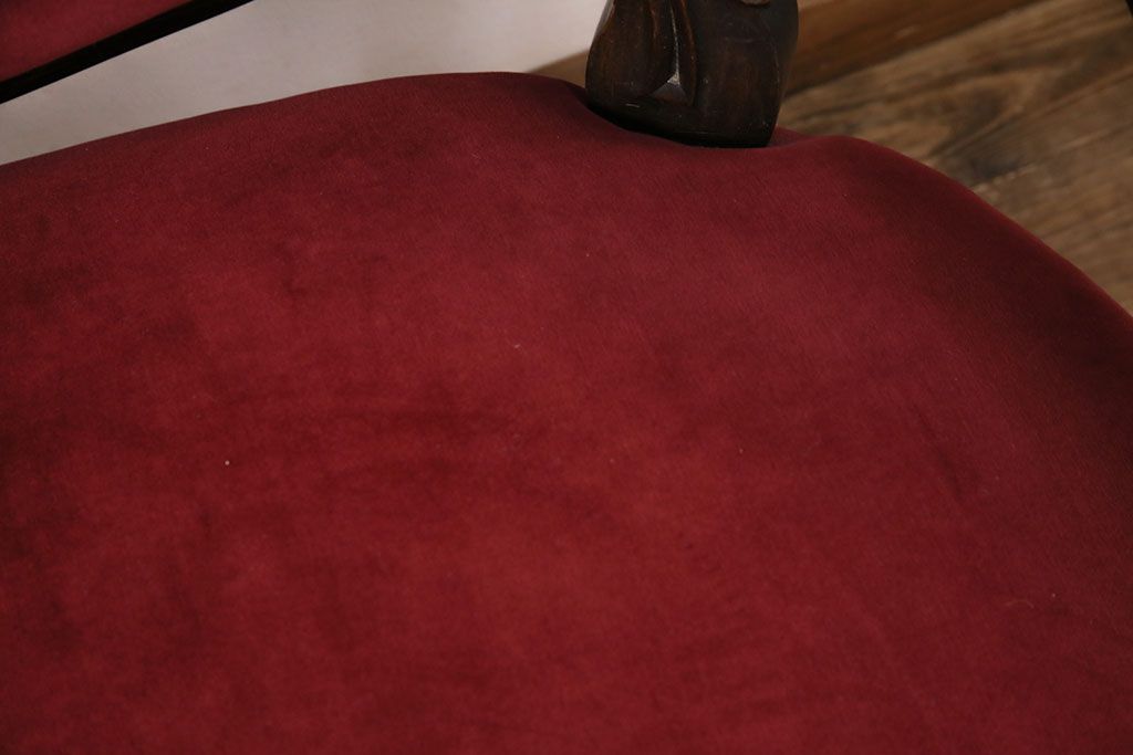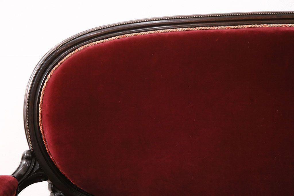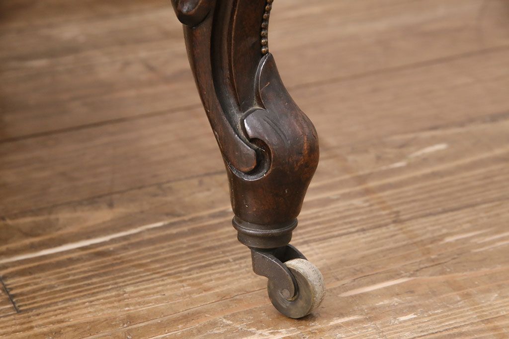フランスアンティーク マホガニー材 キャスター付き 真鍮飾りが美しい!優雅なひとときを演出する高級品の2人掛けソファ(2P、アームソファ)(R-050680)です。