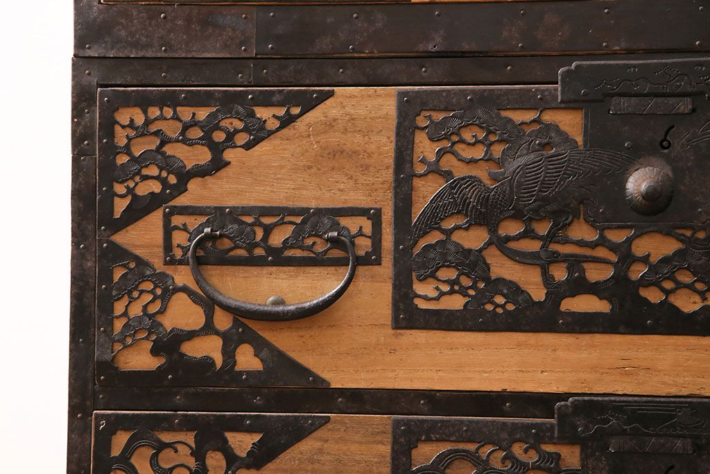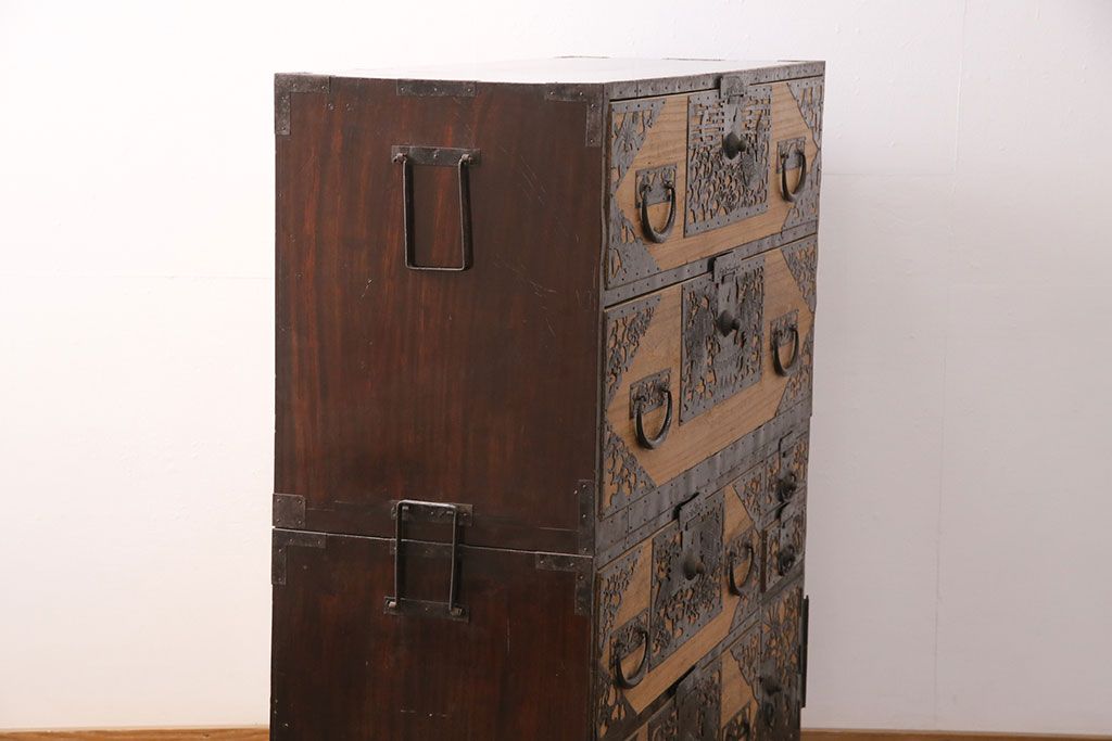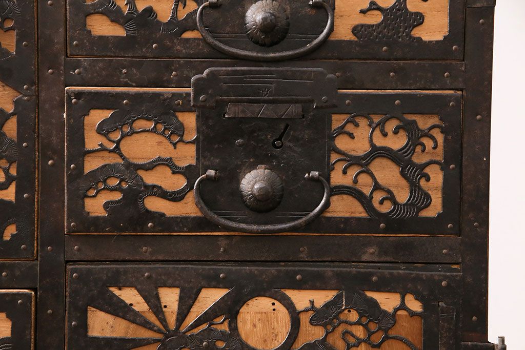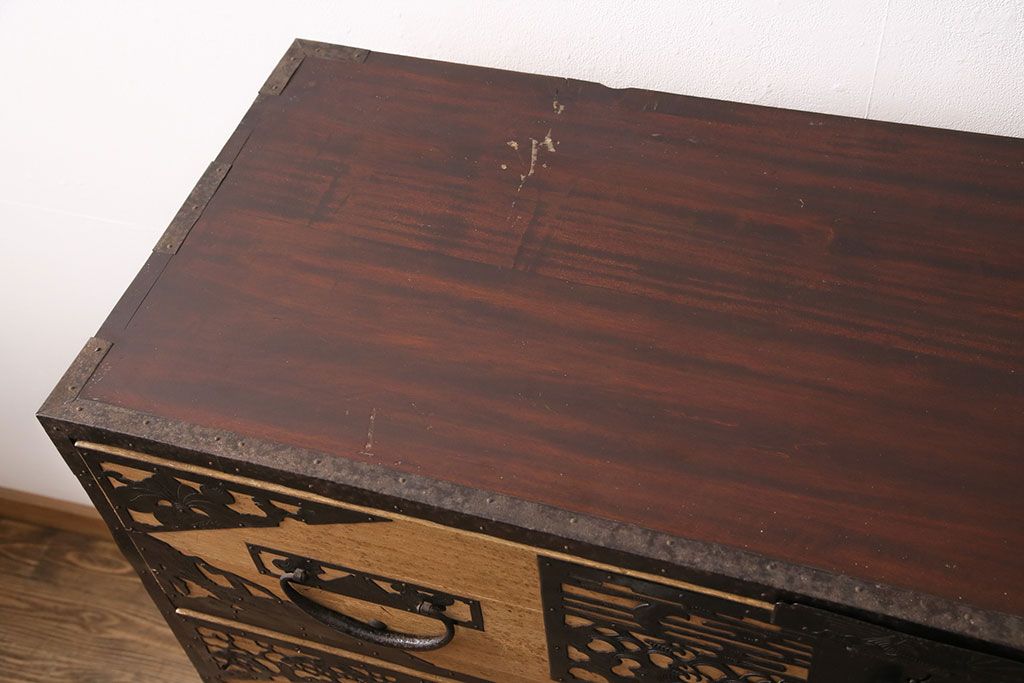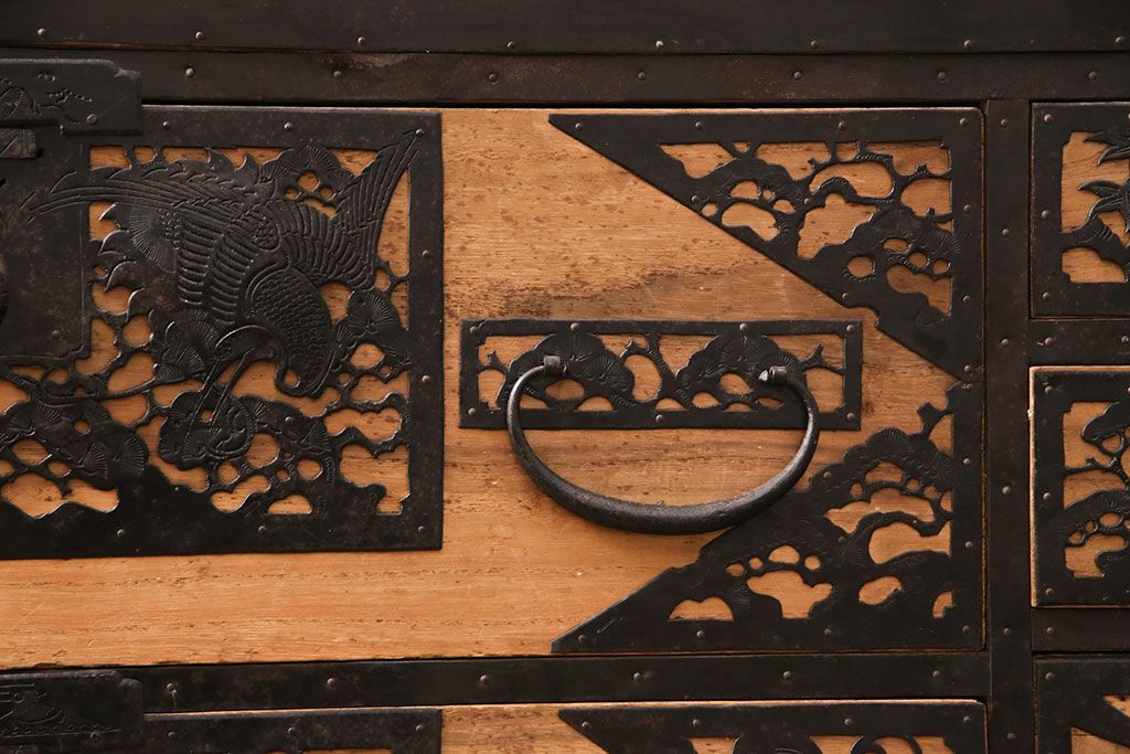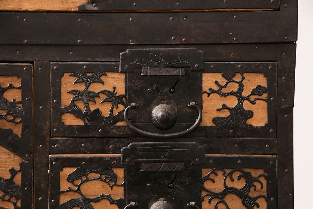 ラフジュ工房> 和箪笥 > 和製アンティーク 総桐材製 繊細で美しい透かし金具が目を引く佐渡箪笥(八幡箪笥、衣装タンス、引き出し、桐箪笥、桐たんす)(R-050727)
