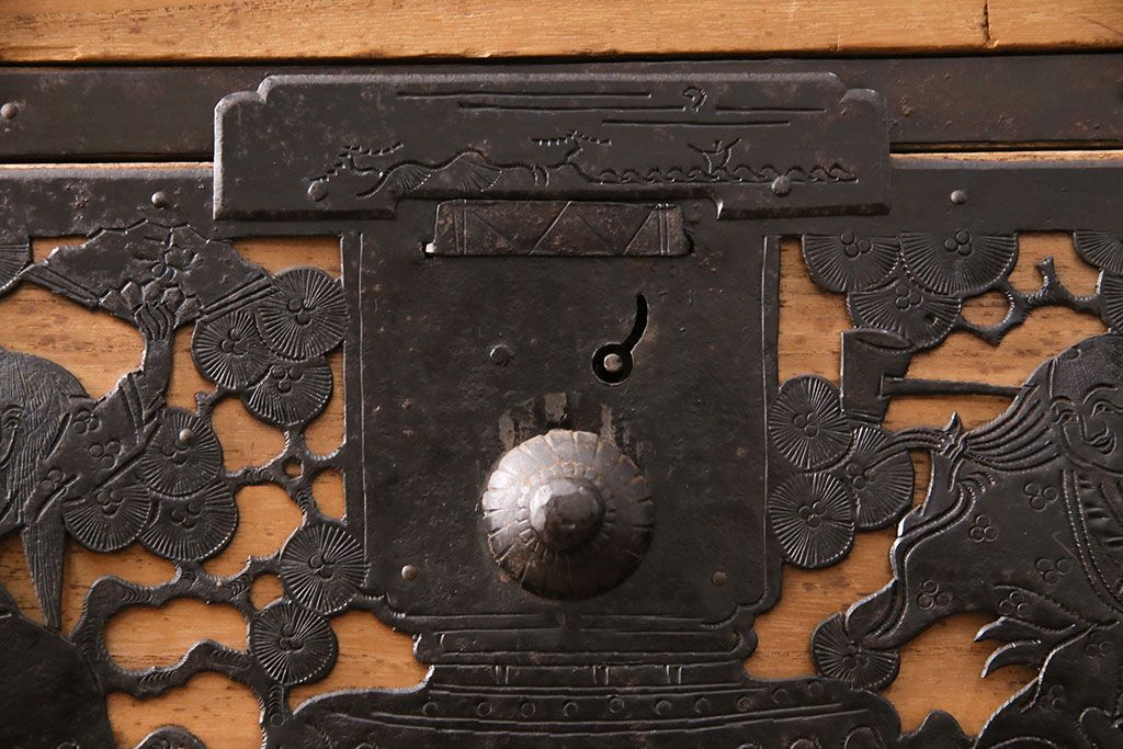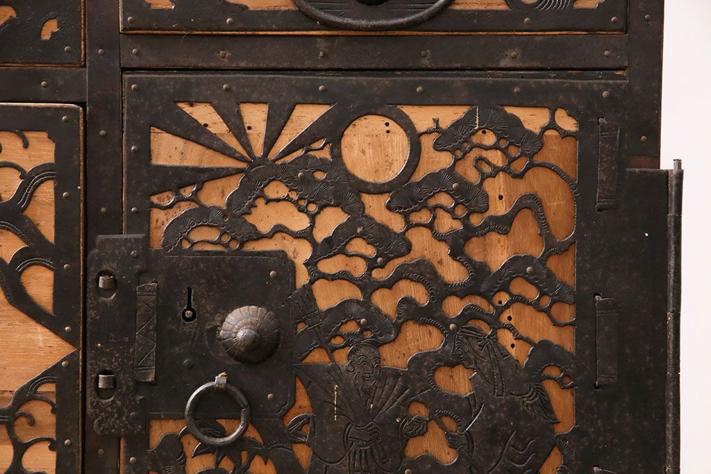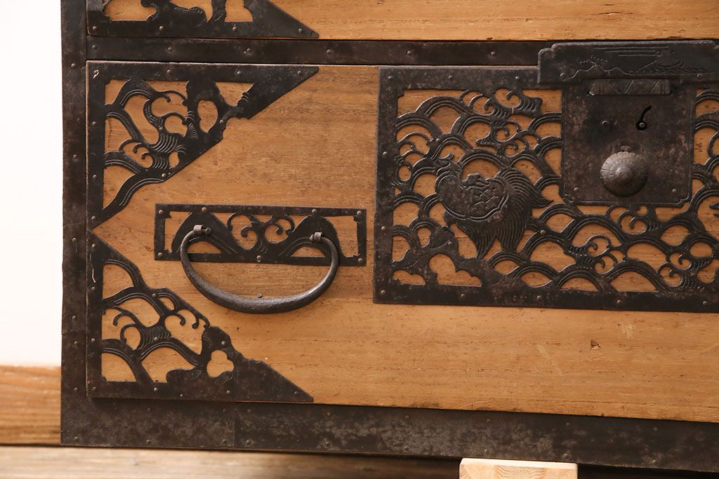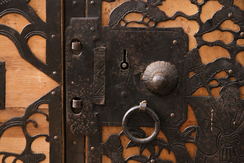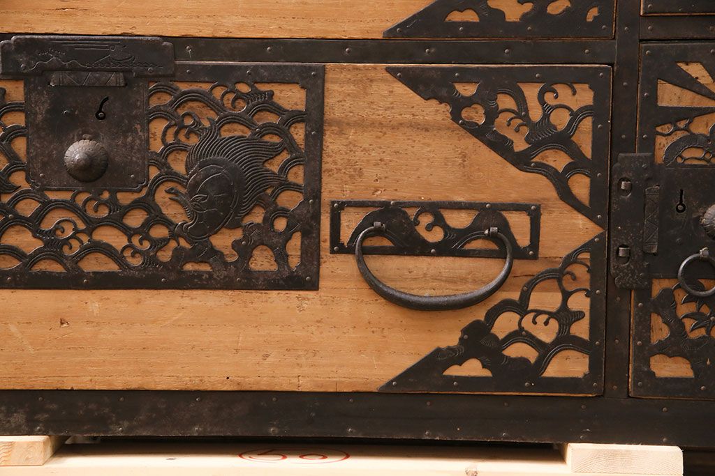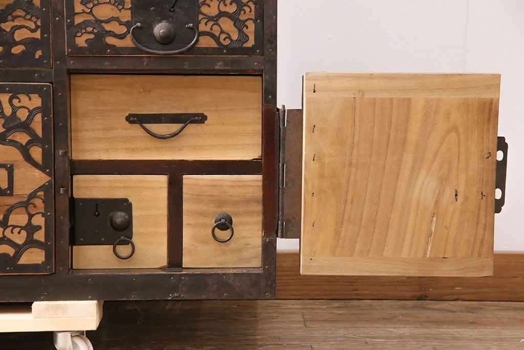 ラフジュ工房> 和箪笥 > 和製アンティーク 総桐材製 繊細で美しい透かし金具が目を引く佐渡箪笥(八幡箪笥、衣装タンス、引き出し、桐箪笥、桐たんす)(R-050727)