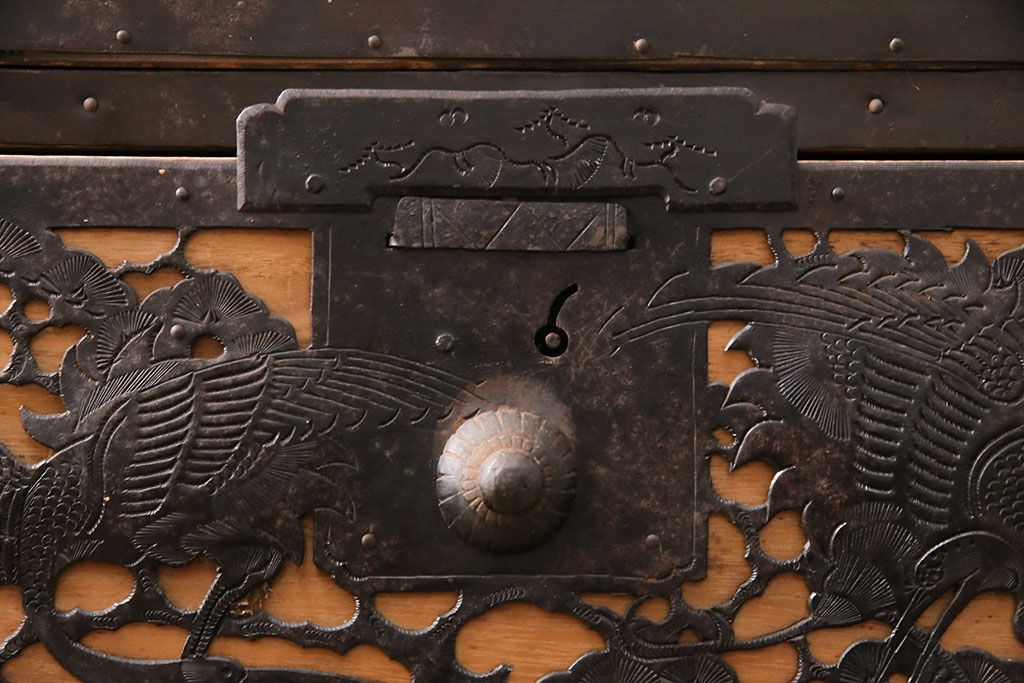 ラフジュ工房> 和箪笥> 衣装箪笥 > 和製アンティーク 総桐材製 繊細で美しい透かし金具が目を引く佐渡箪笥(八幡箪笥、衣装タンス、引き出し、桐箪笥、桐たんす)(R-050727)