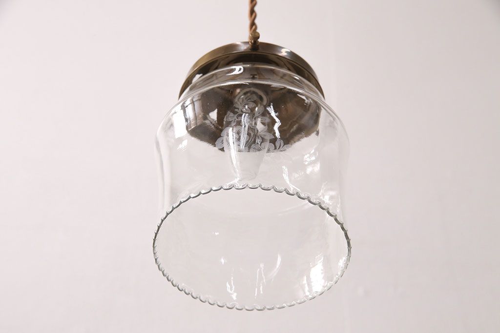 アンティーク照明 イギリスアンティーク 小さなフリルと花模様のすり加工が上品な雰囲気を高めるペンダントライト(吊り下げ照明、天井照明、シェード)(R-050799)です。