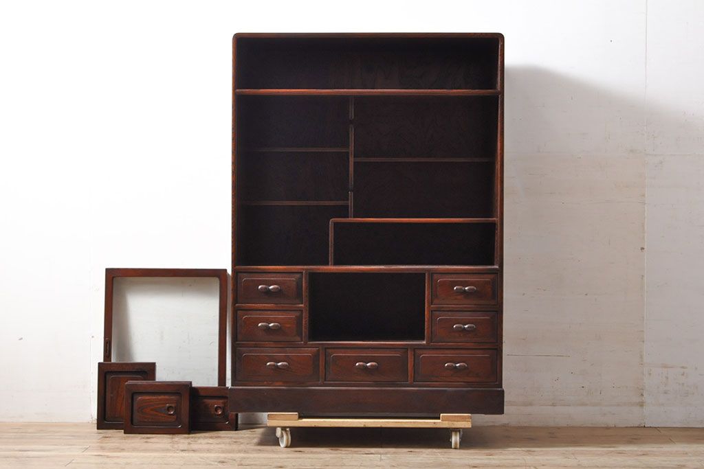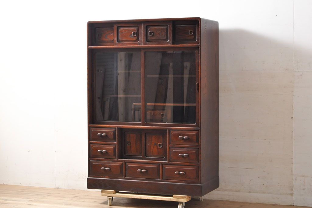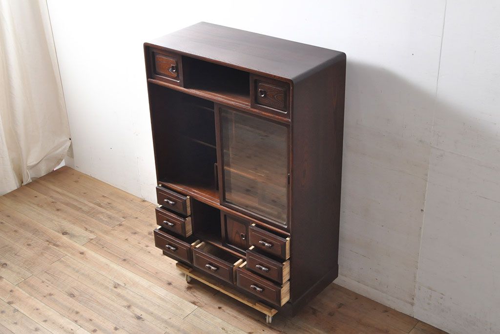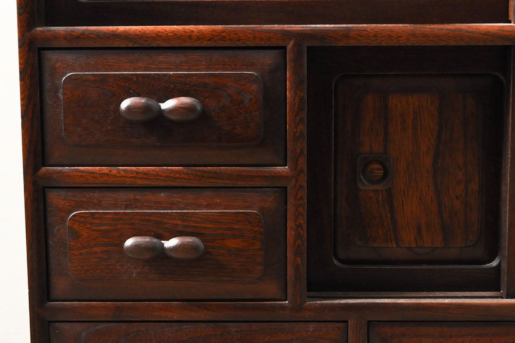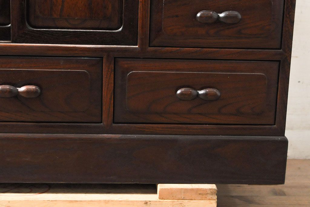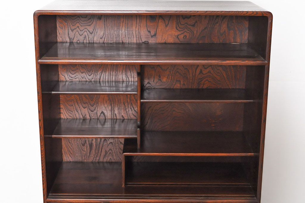 民芸家具 > 中古 美品 工芸家具 ケヤキ材 漆塗り しっとりとした佇まいの上品な茶箪笥(定価37万円)(飾り棚、収納棚)(R-050766)