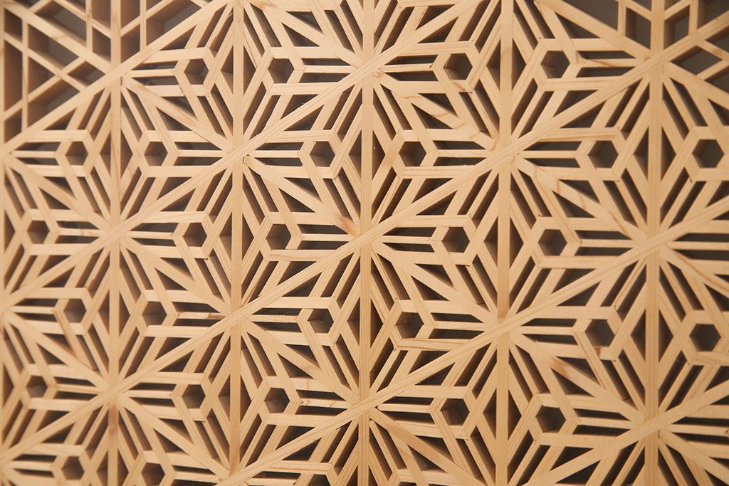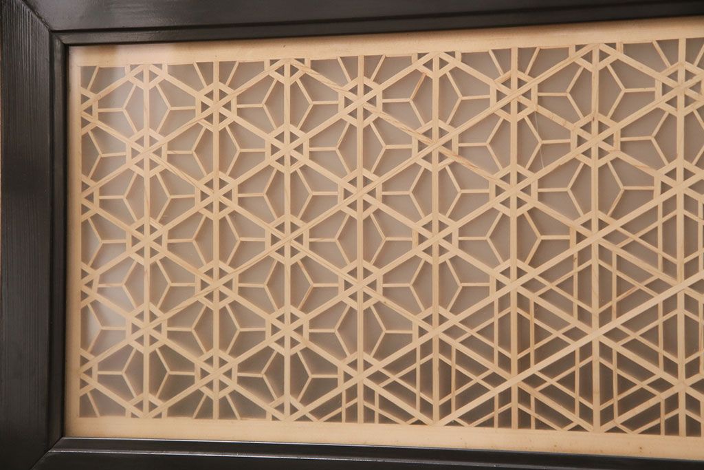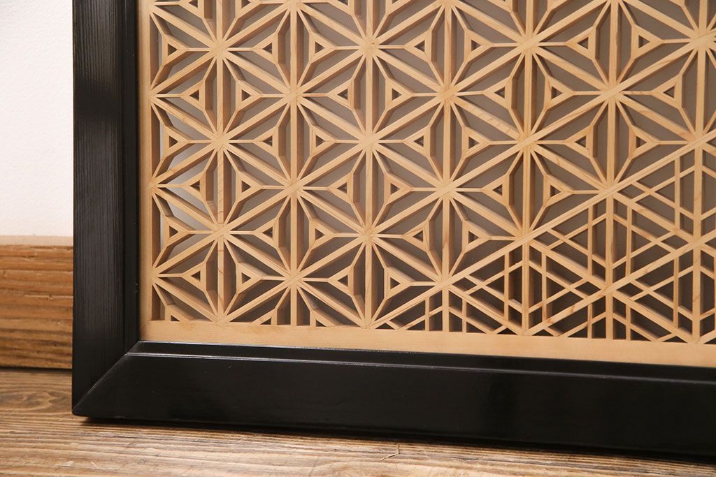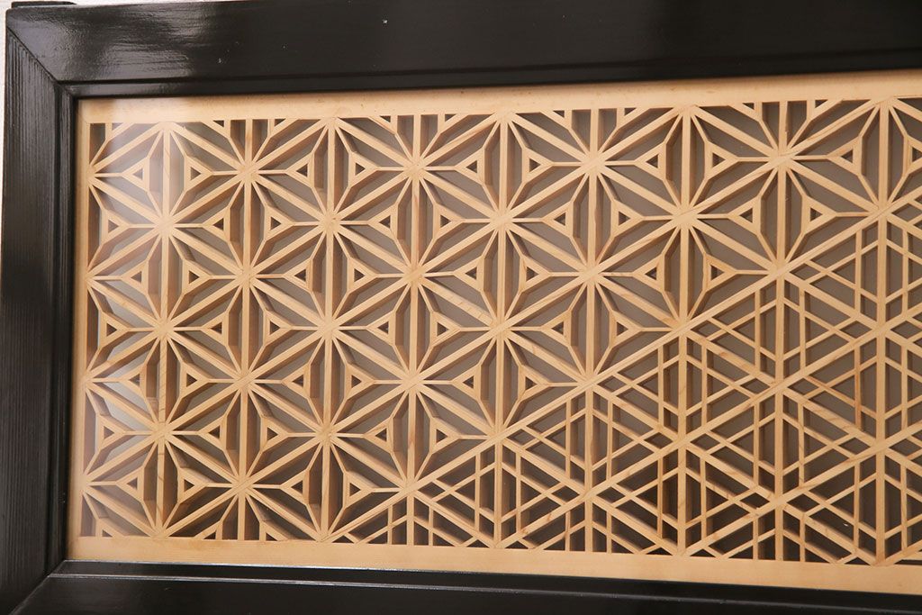 組子欄間をリペア&カスタム!表面にはクリアガラス、裏面にはすりガラスを組み入れ。(明り取り、明かり取り)