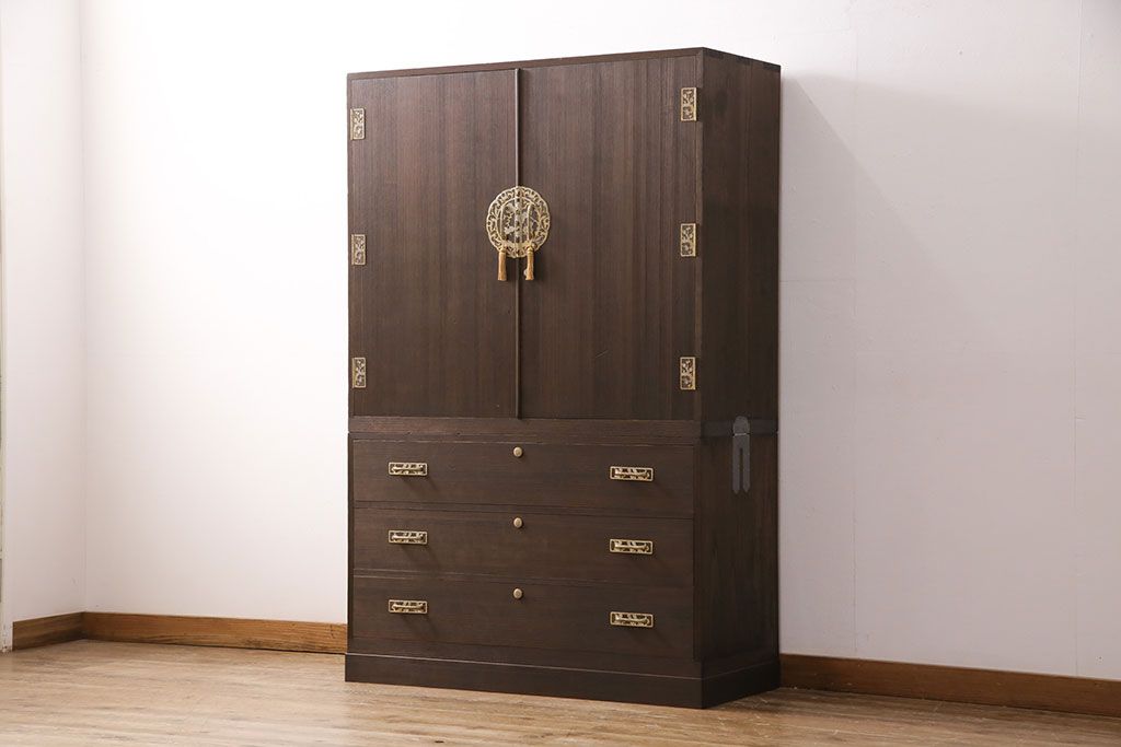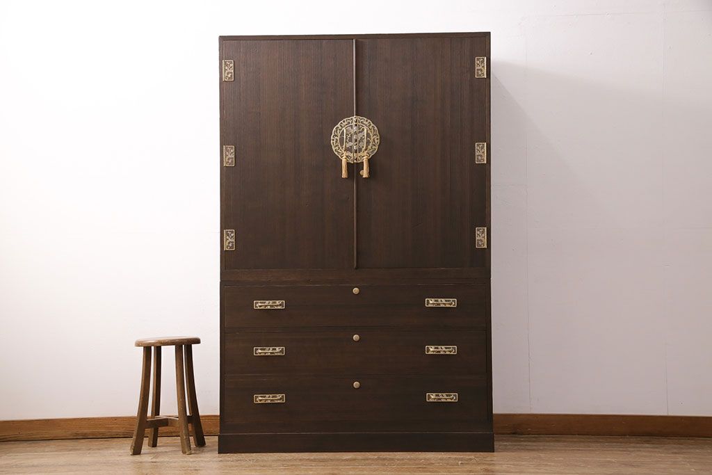 和箪笥> 衣装箪笥 > 総桐箪笥をリペア&カスタム!房を取り付け、茶色で着色し仕上げ。(和タンス、収納箪笥、衣装箪笥、着物箪笥、桐たんす)
