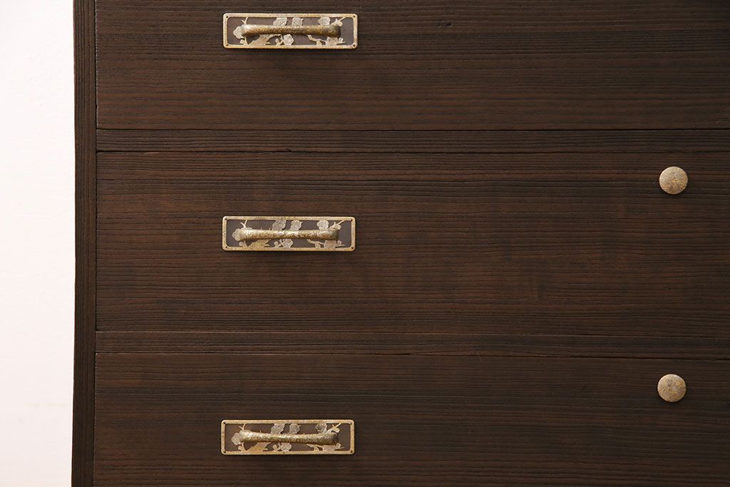 和箪笥 > 総桐箪笥をリペア&カスタム!房を取り付け、茶色で着色し仕上げ。(和タンス、収納箪笥、衣装箪笥、着物箪笥、桐たんす)