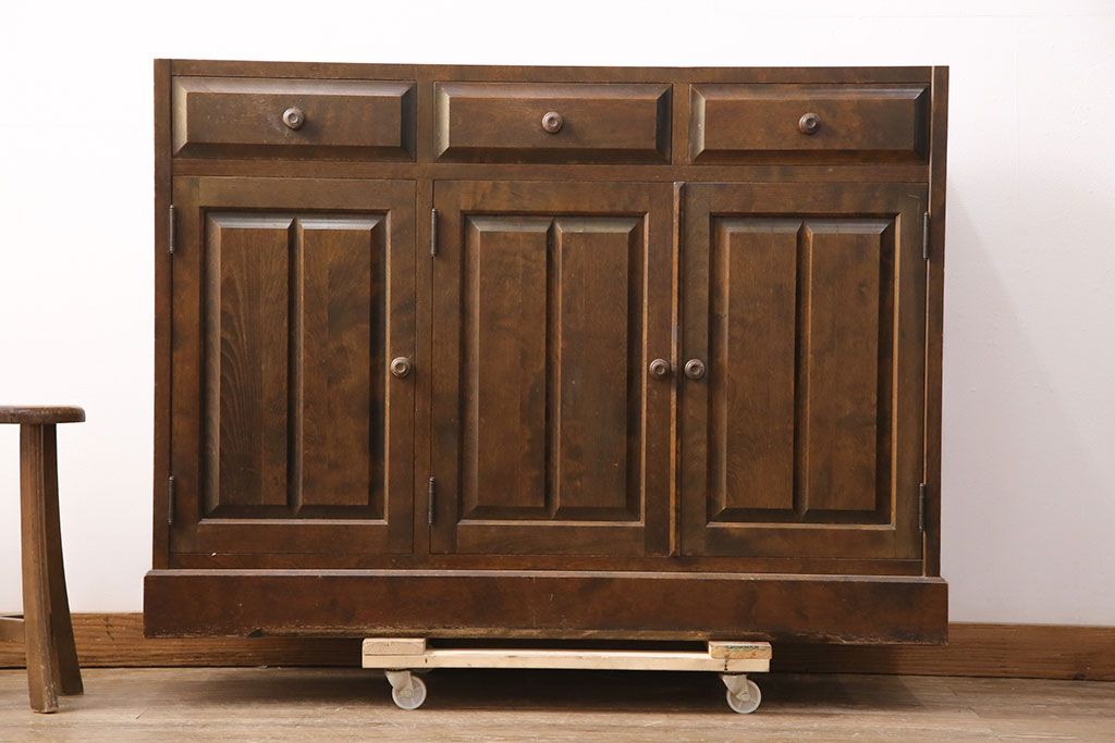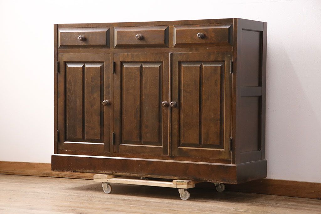 民芸家具 > 中古 北海道民芸家具 ペイント仕上げ限定 和・洋どちらの空間にも合わせやすいサイドボード(キャビネット、収納棚、戸棚)(R-050731)