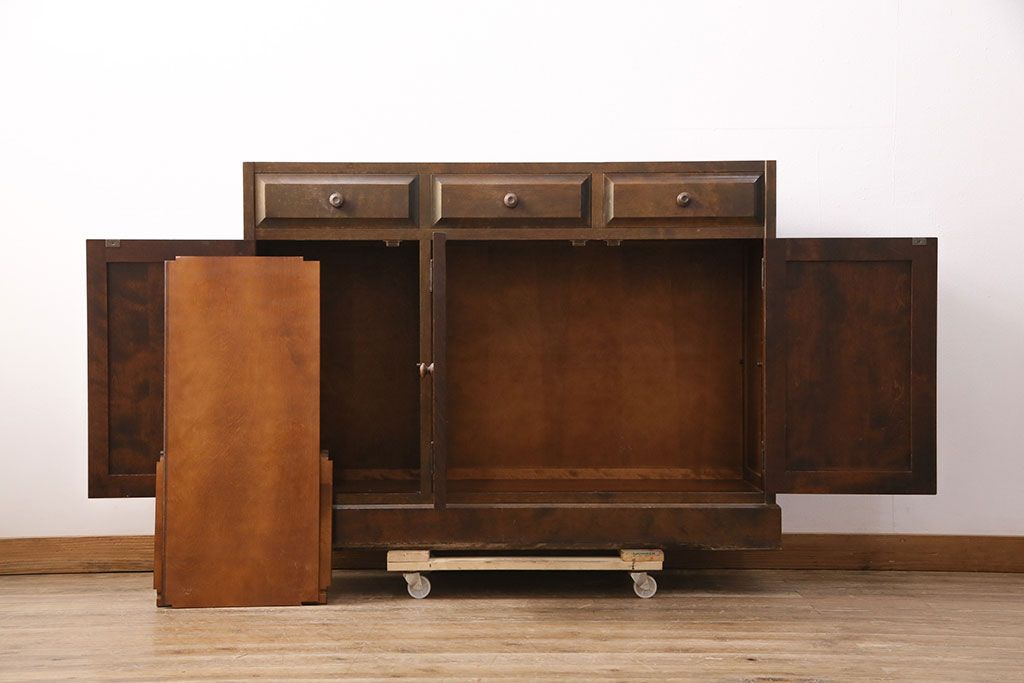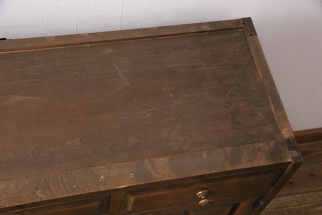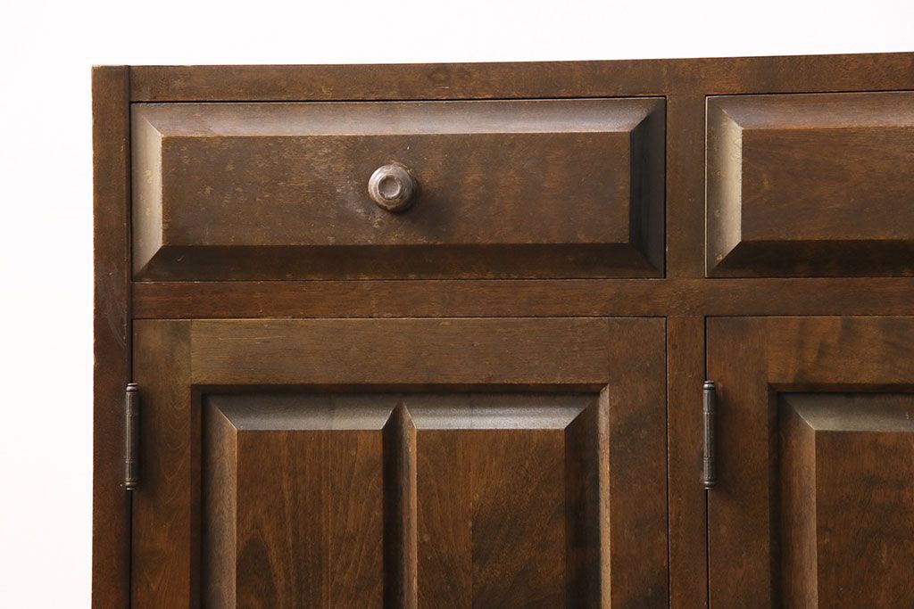中古 北海道民芸家具 ペイント仕上げ限定 和・洋どちらの空間にも合わせやすいサイドボード(キャビネット、収納棚、戸棚)(R-050731)