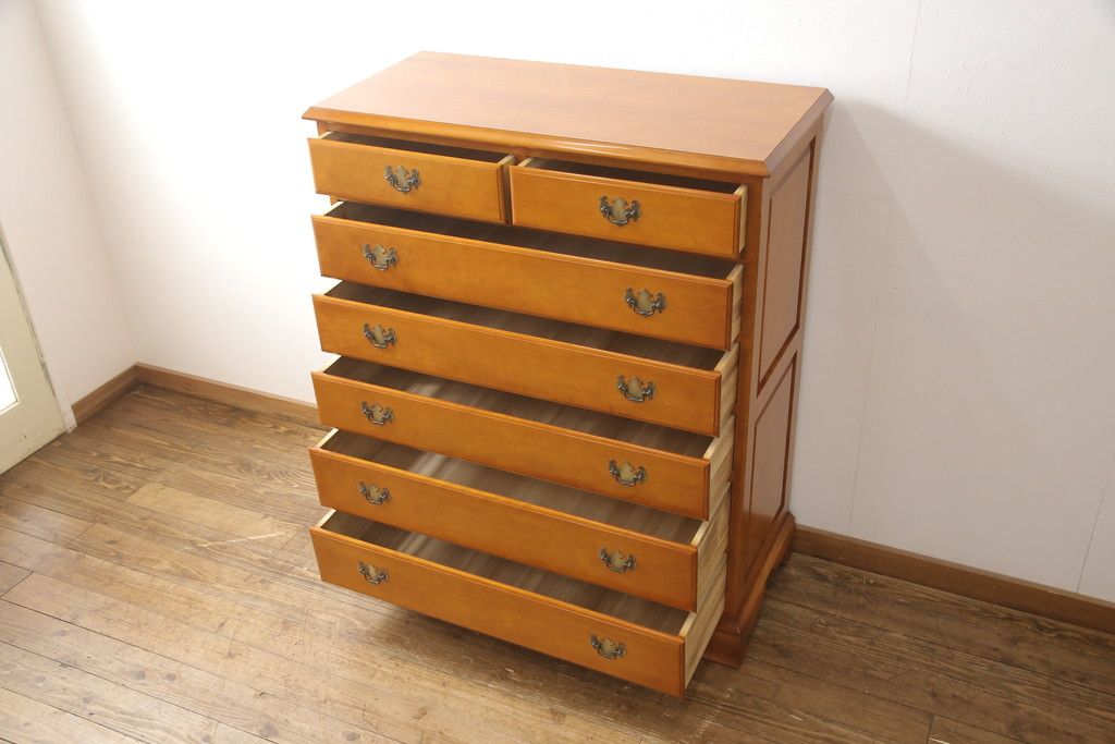 中古 美品 横浜クラシック家具 ダニエル(daniel) A-103 エレガントな意匠が素敵な整理タンス(チェスト、引き出し)(定価約60万)(R-050828)