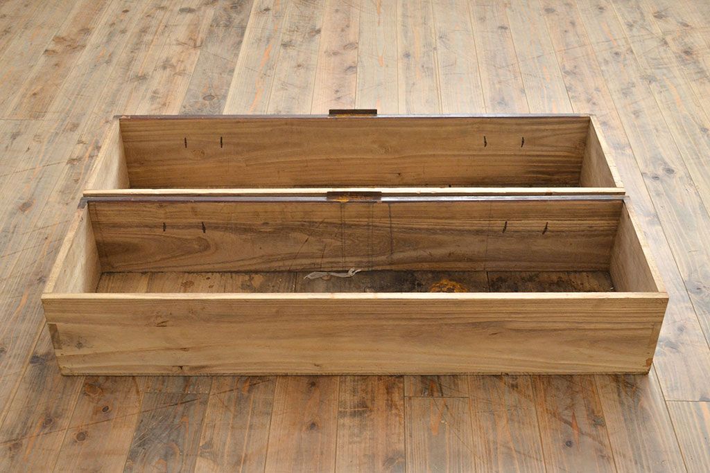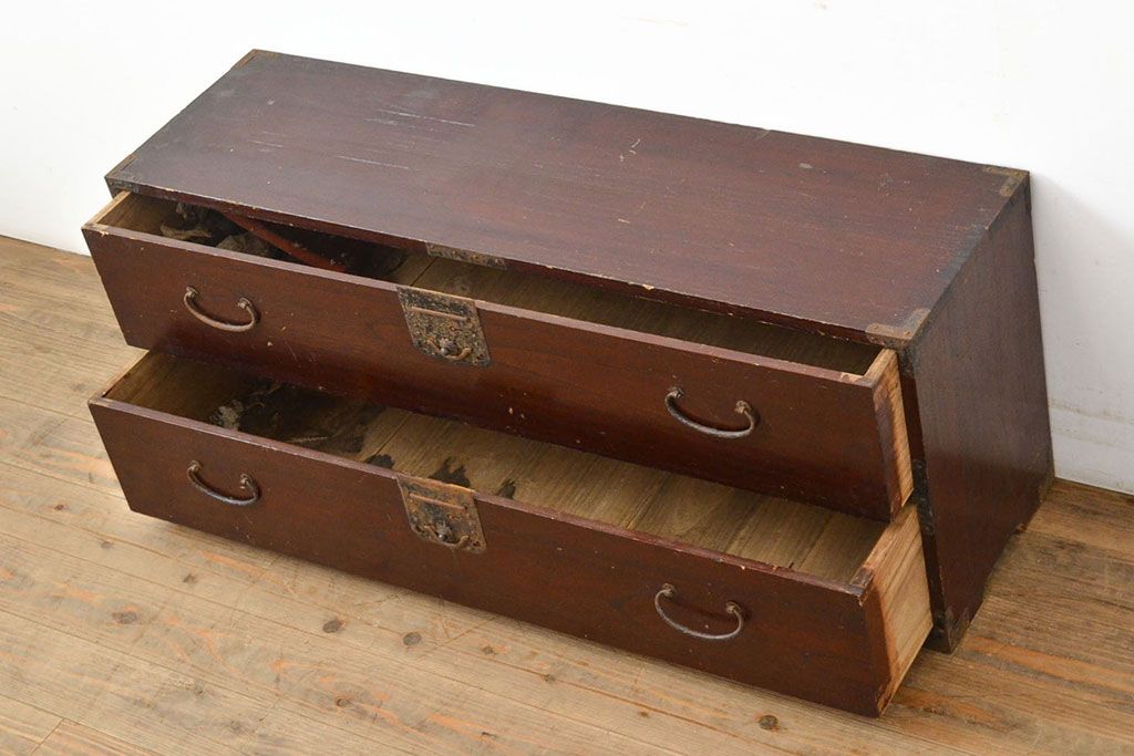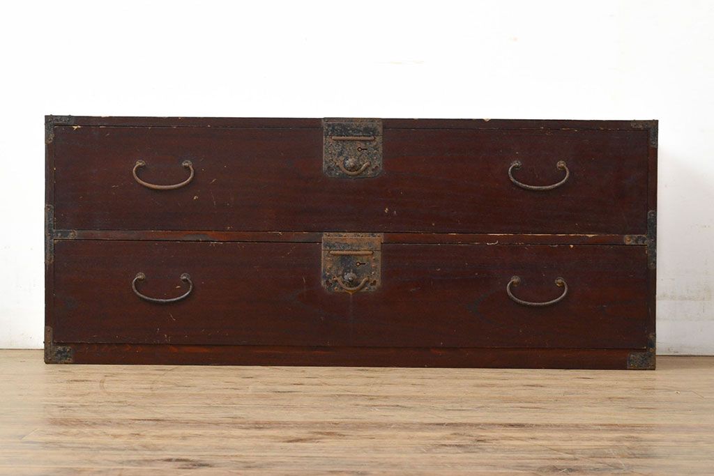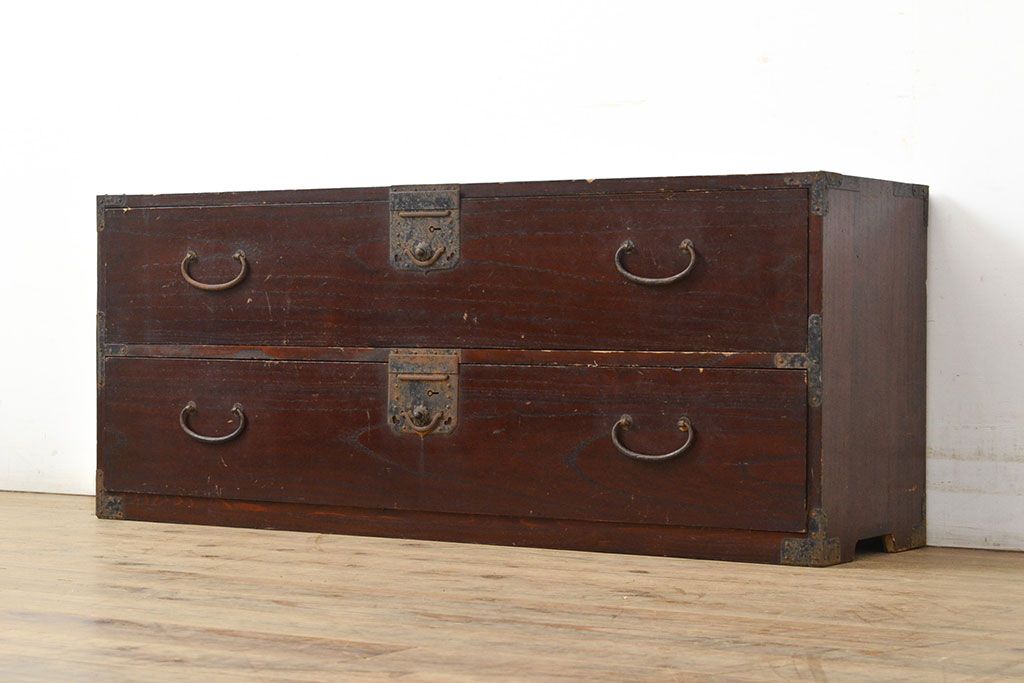 チェスト・引き出し> ローチェスト > 和製アンティーク 江戸〜明治期 総桐材 経年により深みを増した木色と古びた金具が味わい深い刀箪笥(ローボード、ローチェスト、引き出し、桐箪笥、桐たんす)(R-050819)
