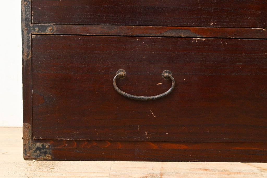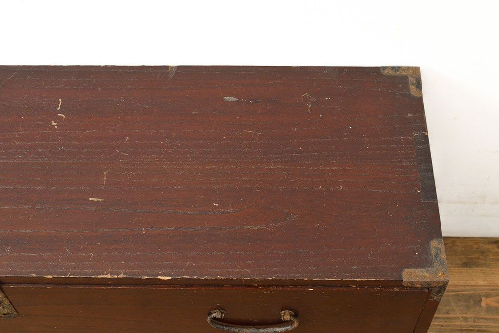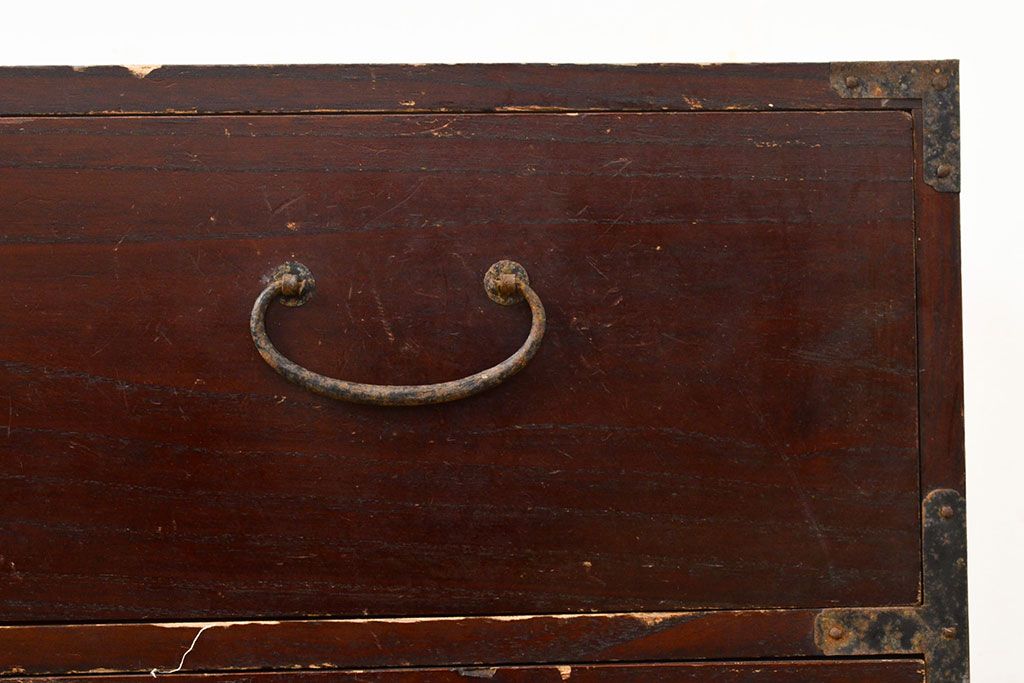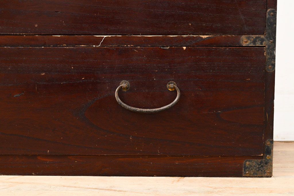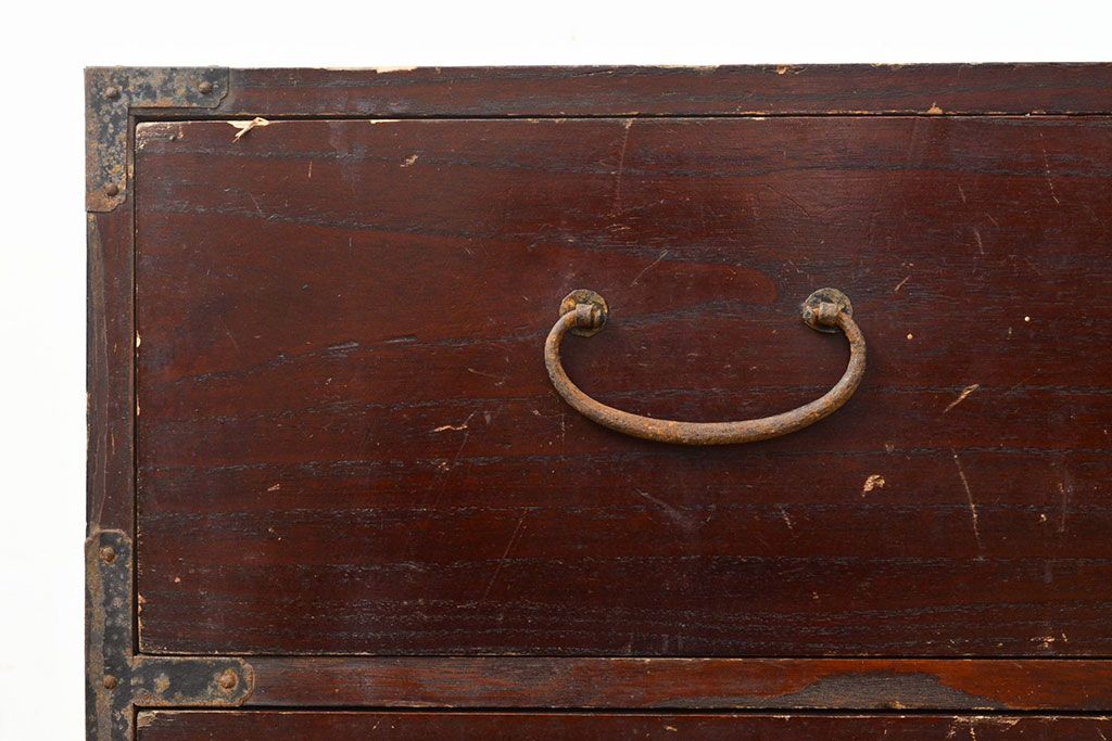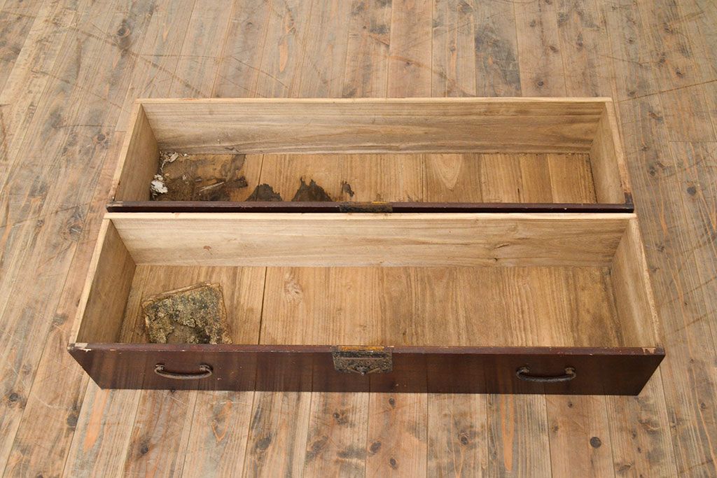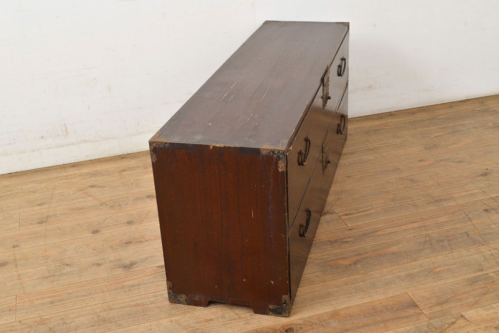 和箪笥 > 和製アンティーク 江戸〜明治期 総桐材 経年により深みを増した木色と古びた金具が味わい深い刀箪笥(ローボード、ローチェスト、引き出し、桐箪笥、桐たんす)(R-050819)