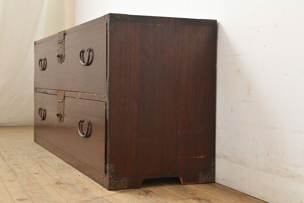 キャビネット・戸棚> テレビ台・ローボード > 和製アンティーク 江戸〜明治期 総桐材 経年により深みを増した木色と古びた金具が味わい深い刀箪笥(ローボード、ローチェスト、引き出し、桐箪笥、桐たんす)(R-050819)