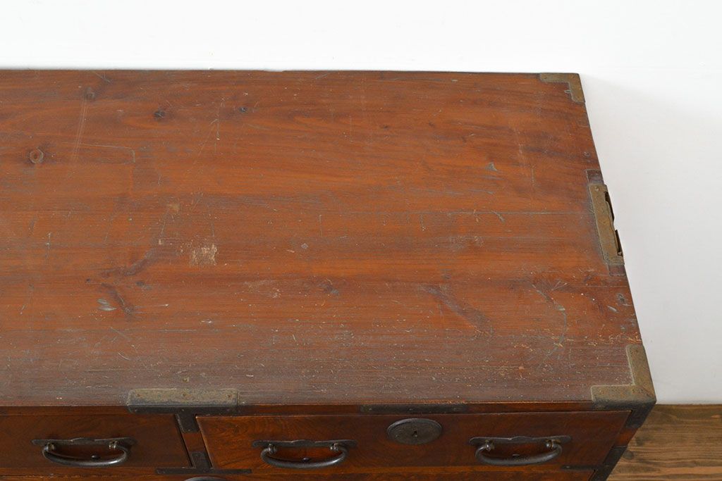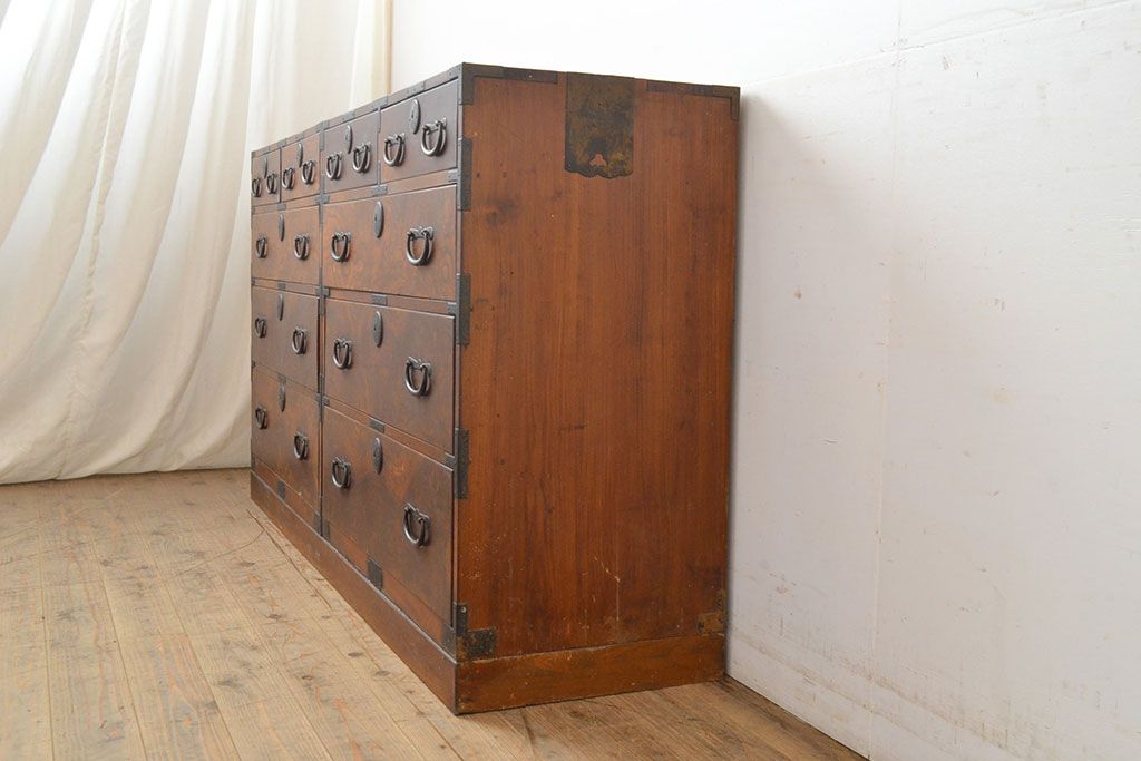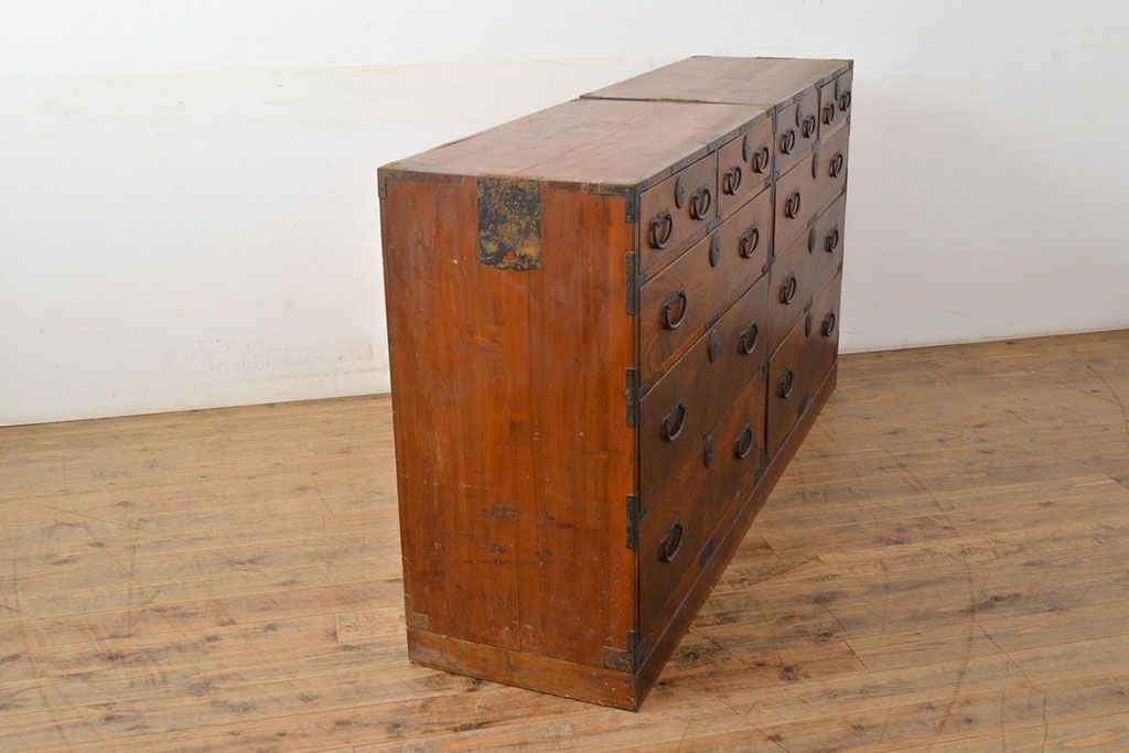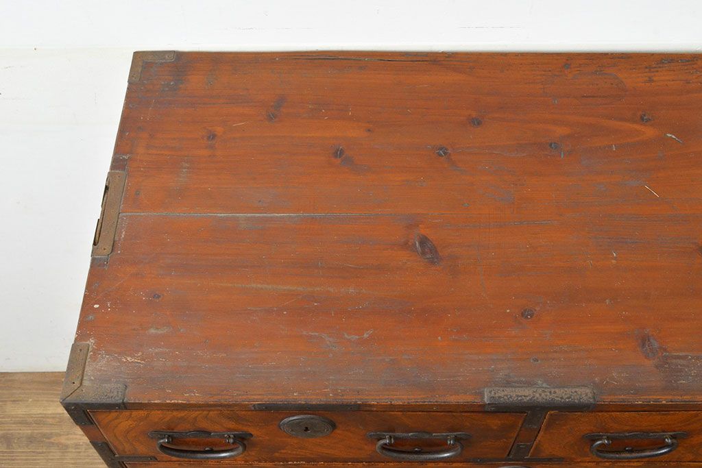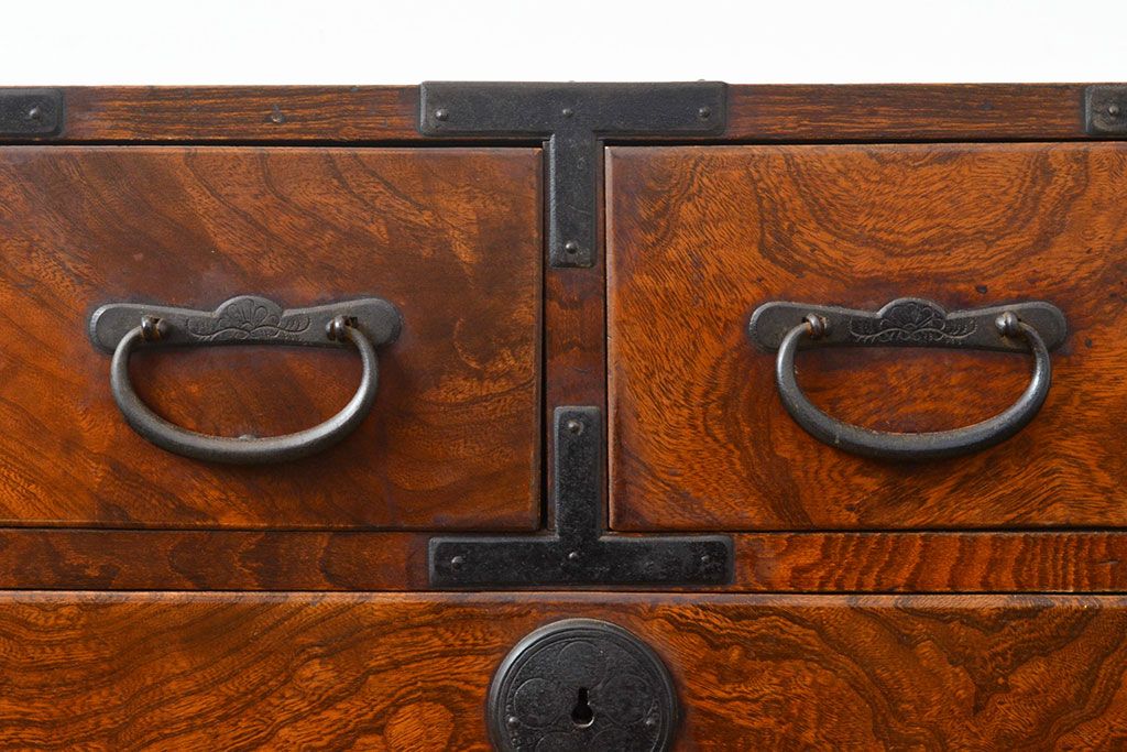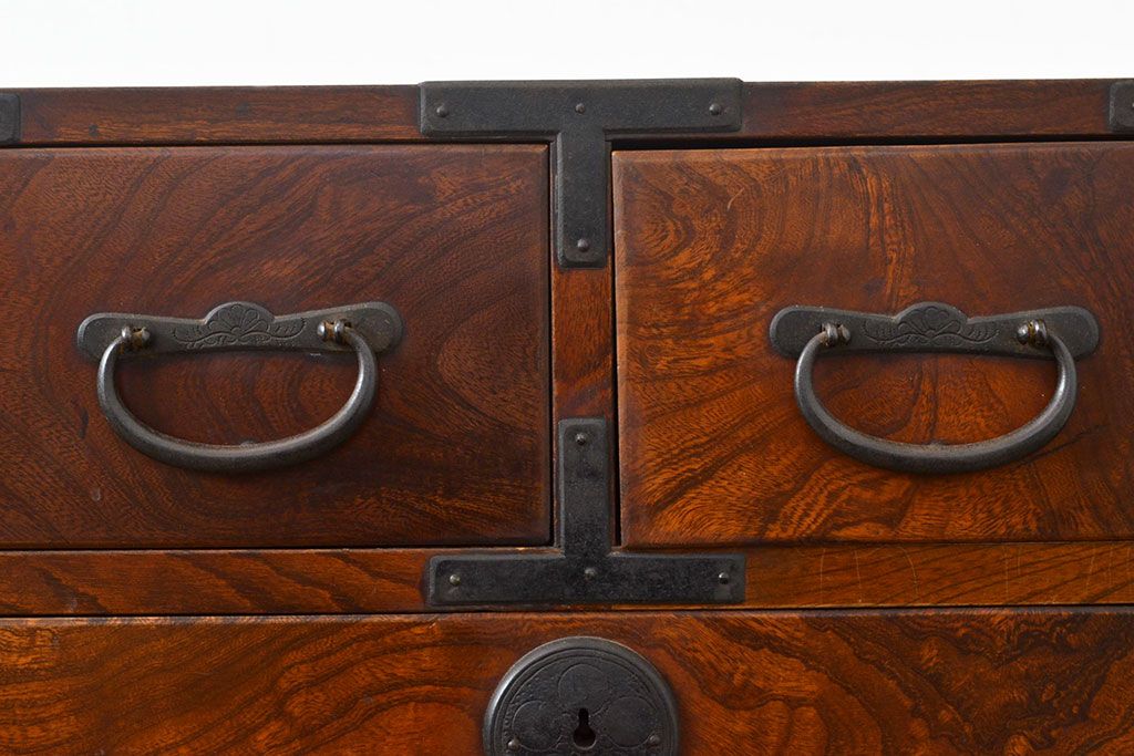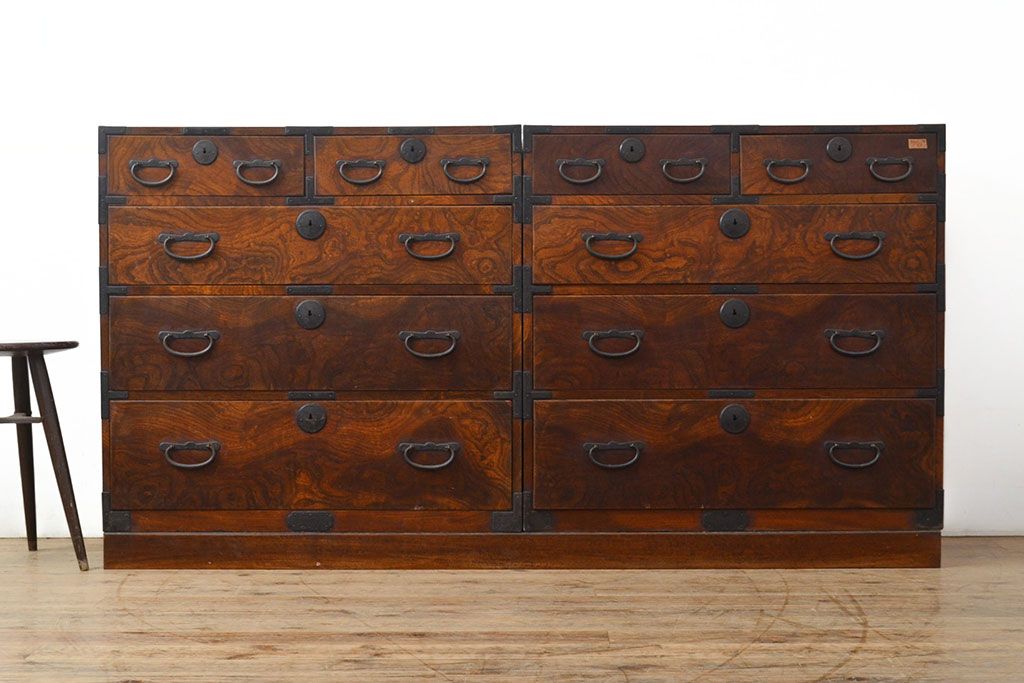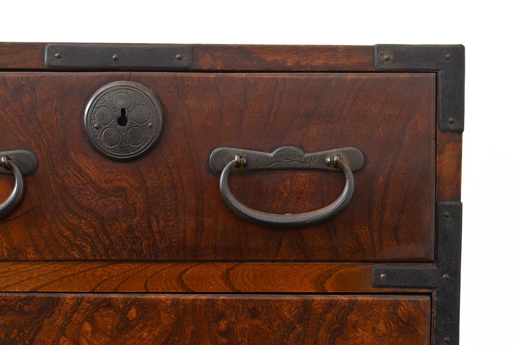 民芸家具 > 前面ケヤキ材 上品な金具が玉杢を引き立てる合わせ一間仙台箪笥(夫婦箪笥、衣装タンス、引き出し、チェスト)(R-050818)