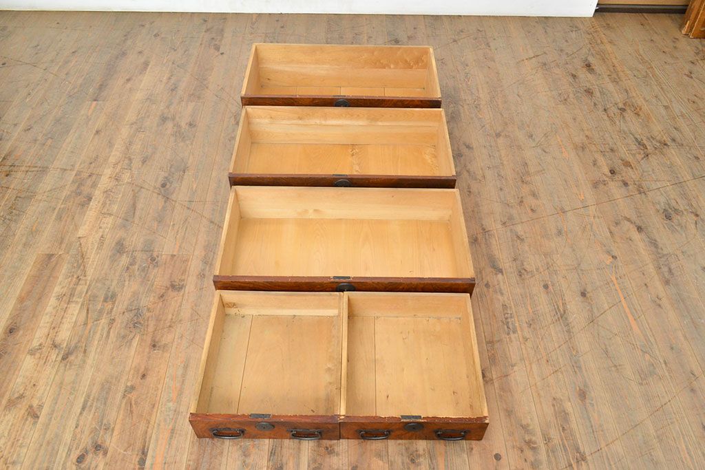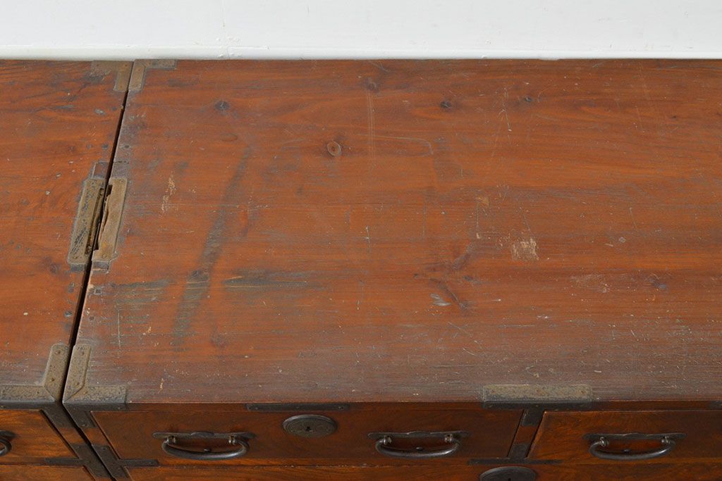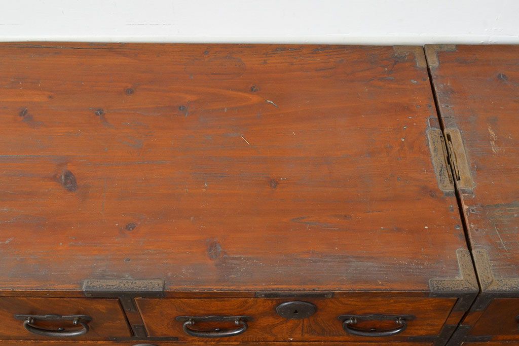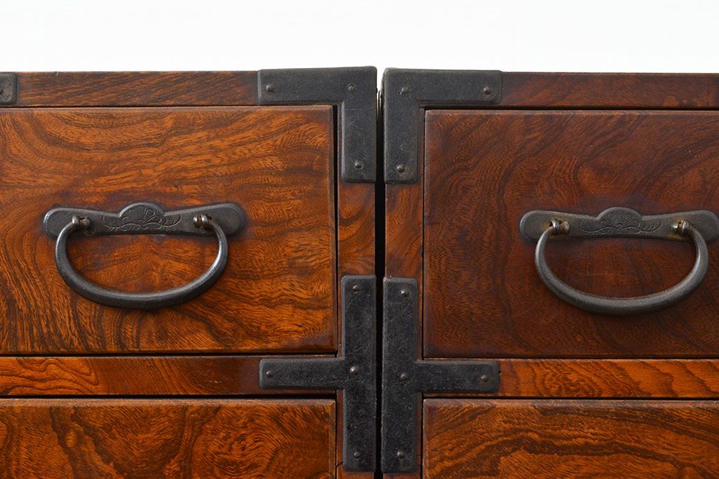 和箪笥 > 前面ケヤキ材 上品な金具が玉杢を引き立てる合わせ一間仙台箪笥(夫婦箪笥、衣装タンス、引き出し、チェスト)(R-050818)