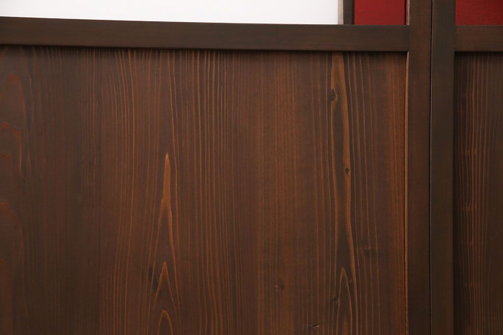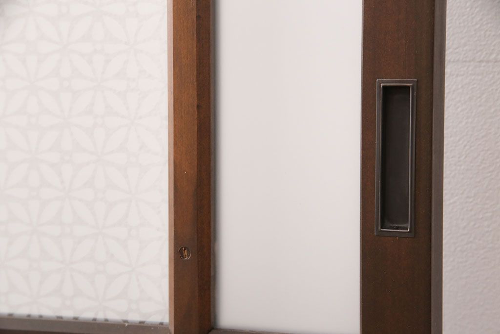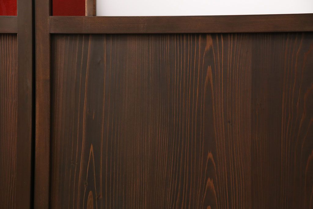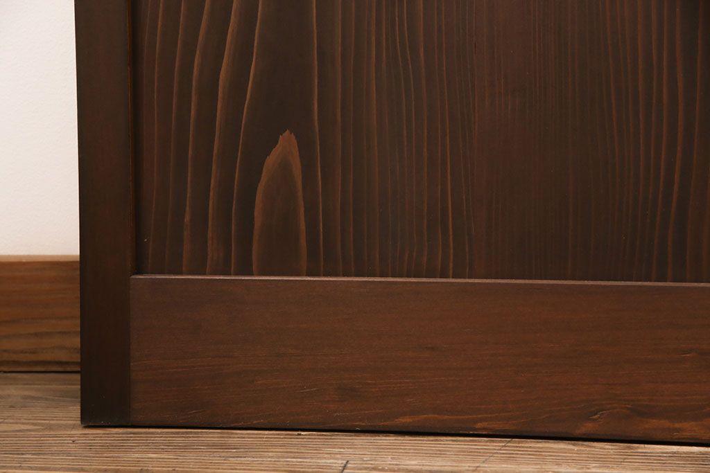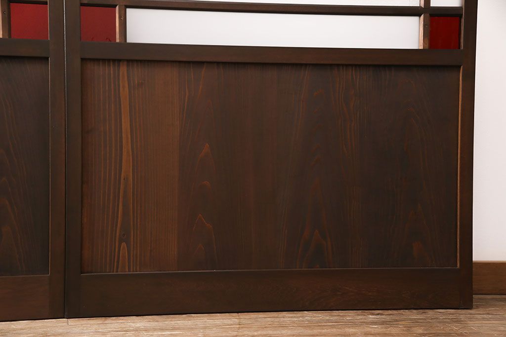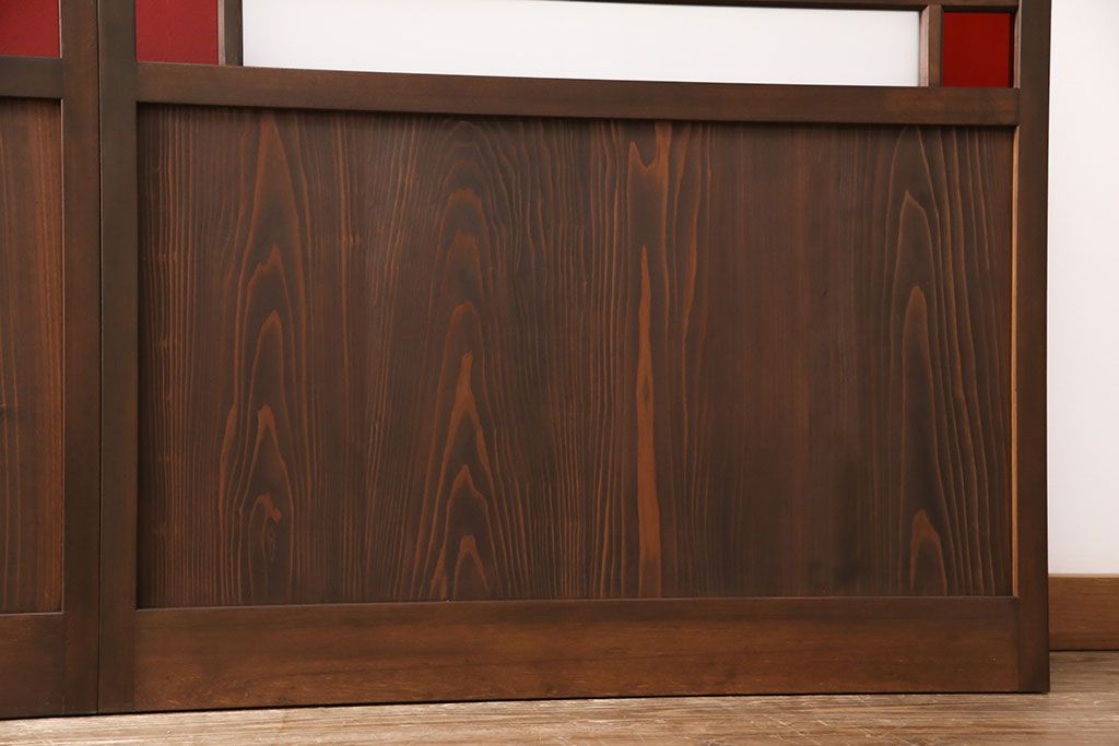 大正ロマンなガラス戸3枚を新規製作!色ガラス・花菱ガラス、すりガラスを組み入れ、吊り金具用の加工。引き手の取り付け。濃い茶色で着色し仕上げ。(引き戸、建具)