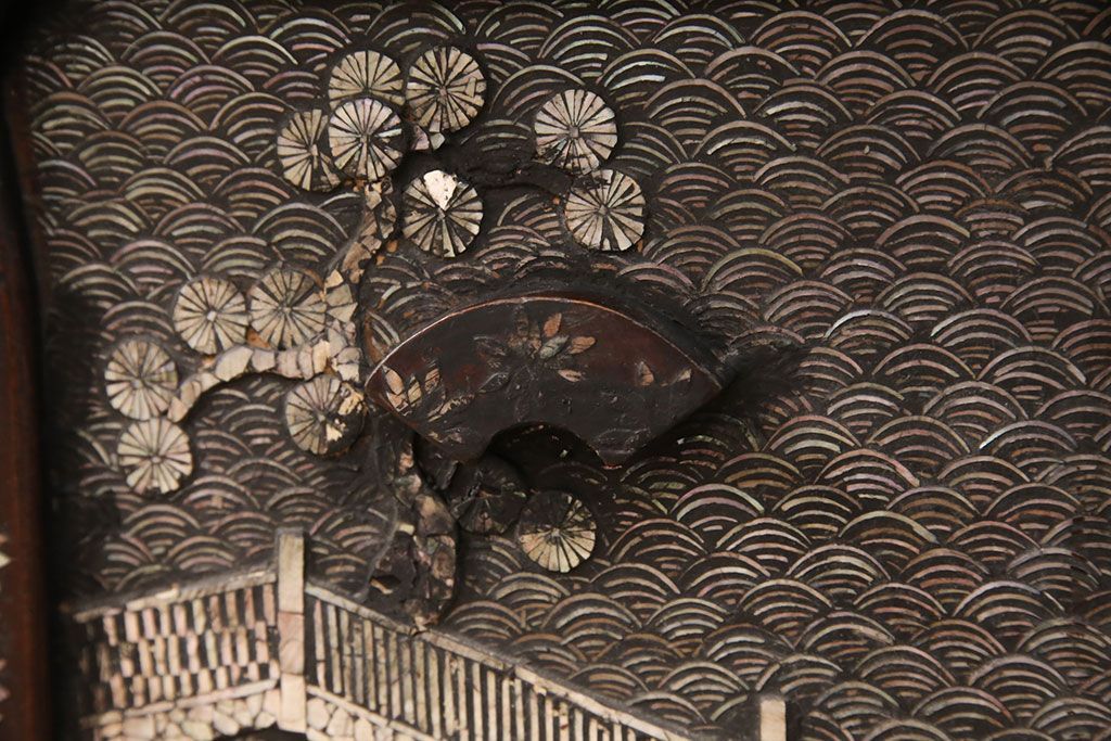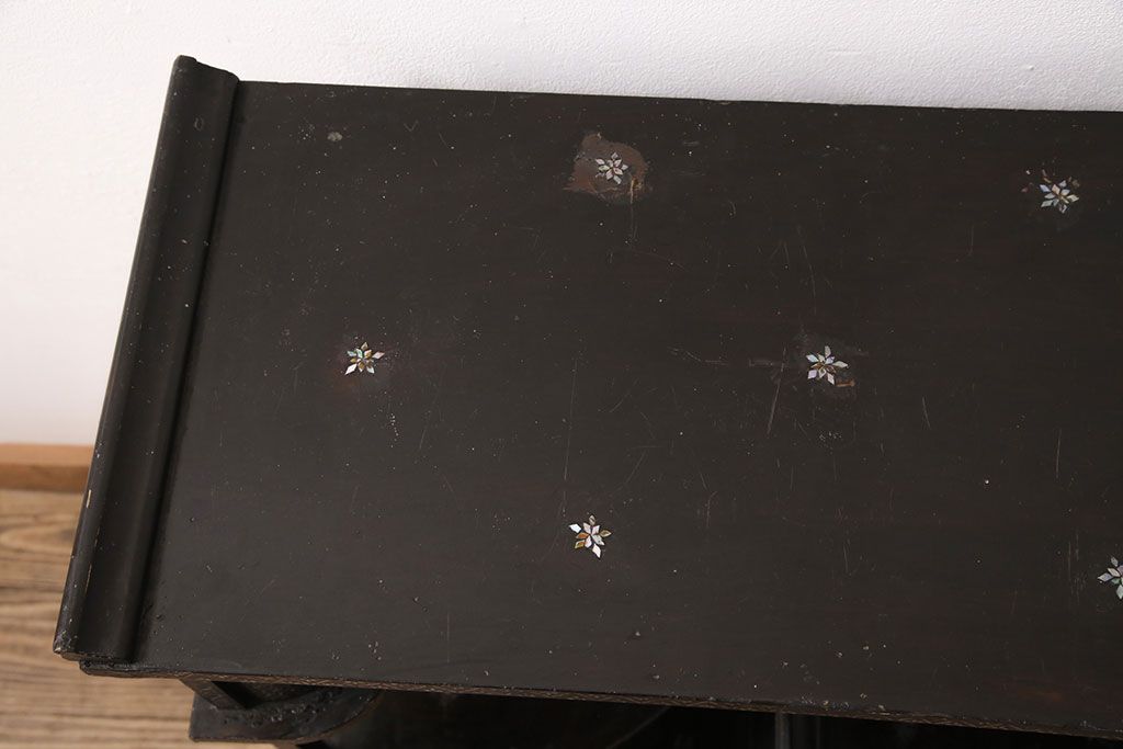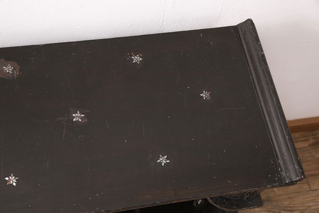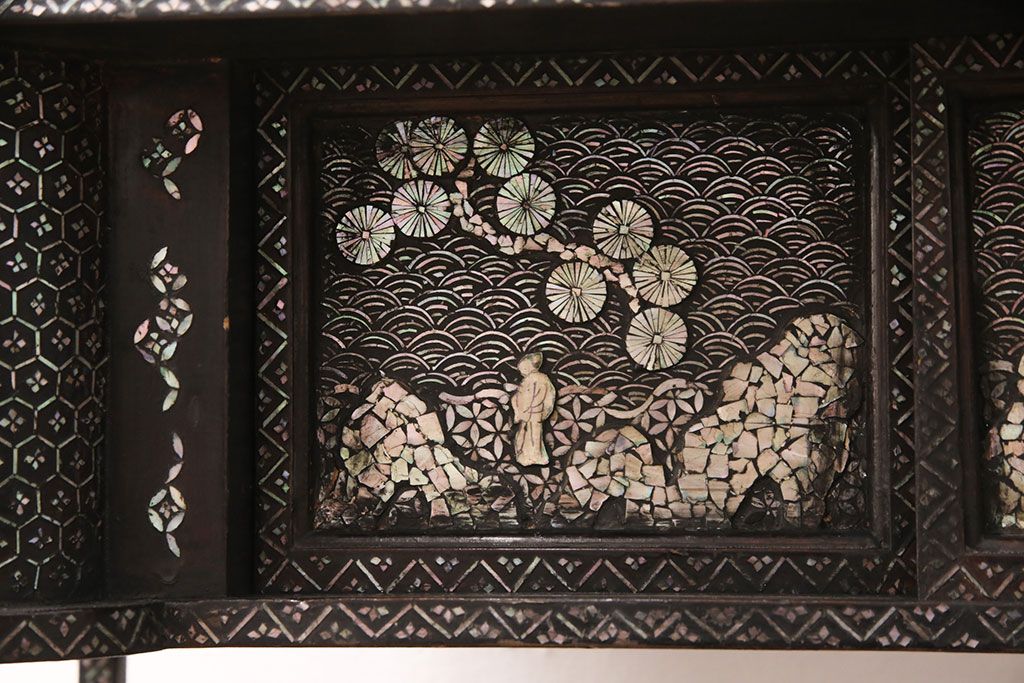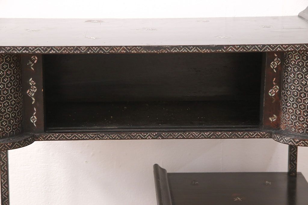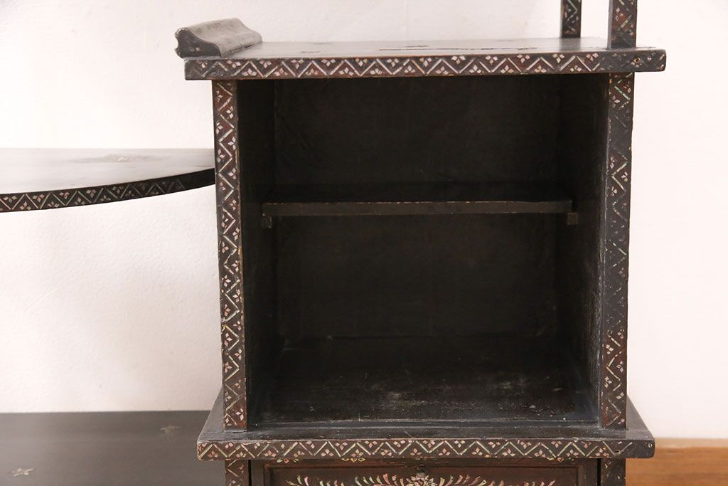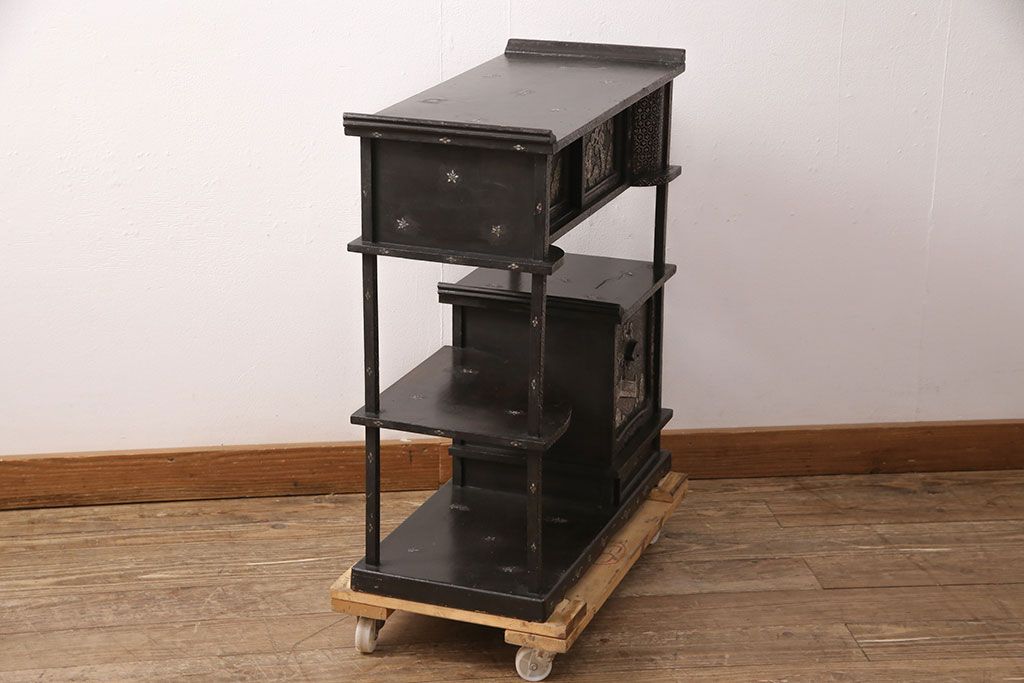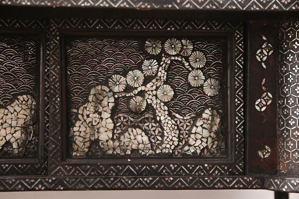 和箪笥> 茶箪笥・茶棚 > 【簡易リペア限定品】和製アンティーク 時代物 螺鈿細工で描かれた細かな絵柄が美しい飾り棚(茶棚、収納棚、戸棚)(R-050893)