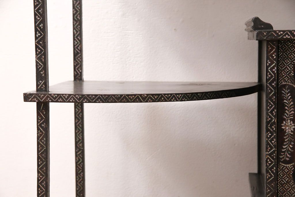 【簡易リペア限定品】和製アンティーク 時代物 螺鈿細工で描かれた細かな絵柄が美しい飾り棚(茶棚、収納棚、戸棚)(R-050893)