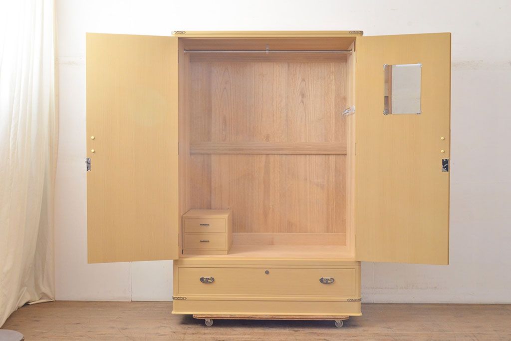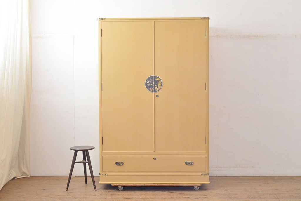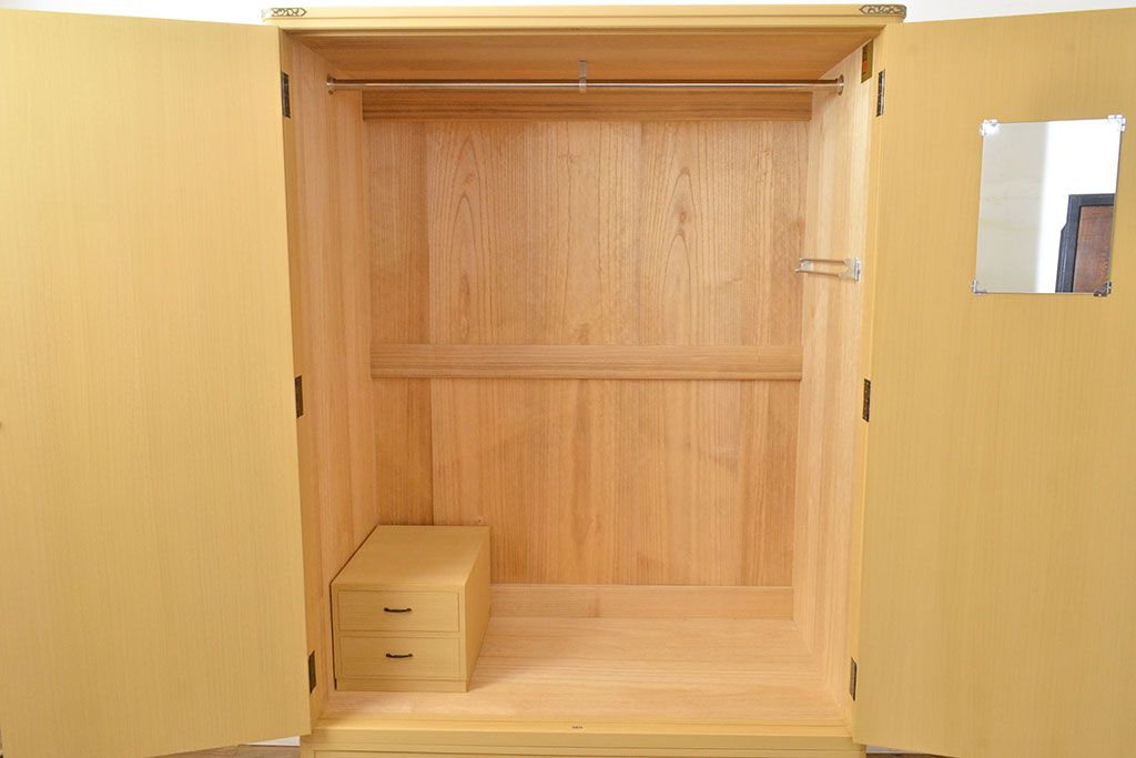 和箪笥 > 中古 美品 上品な意匠の金具が気品を漂わせる春日部総桐箪笥(胴丸、ワードローブ、洋服タンス、桐たんす)(定価約120万円)(R-050832)