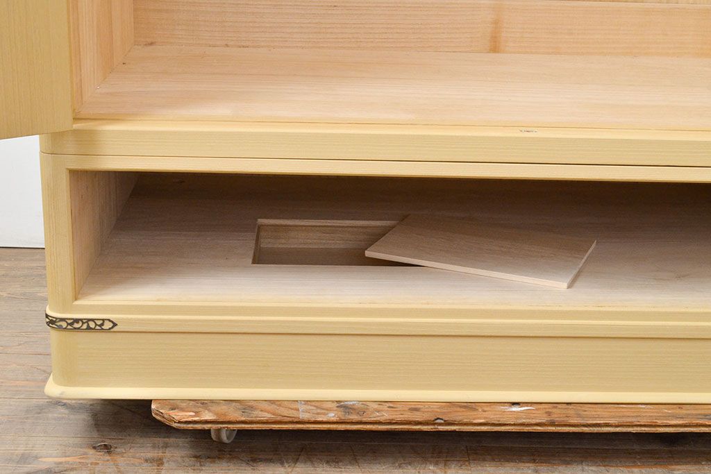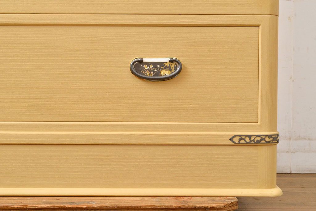 民芸家具 > 中古 美品 上品な意匠の金具が気品を漂わせる春日部総桐箪笥(胴丸、ワードローブ、洋服タンス、桐たんす)(定価約120万円)(R-050832)