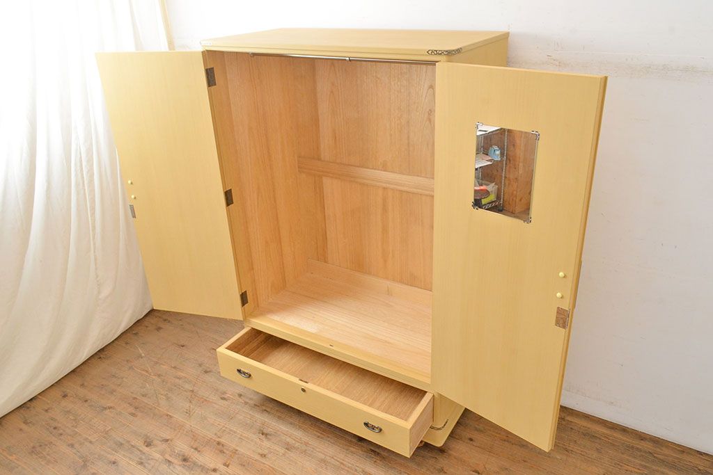 中古 美品 上品な意匠の金具が気品を漂わせる春日部総桐箪笥(胴丸、ワードローブ、洋服タンス)(定価約120万円)(R-050832)です。