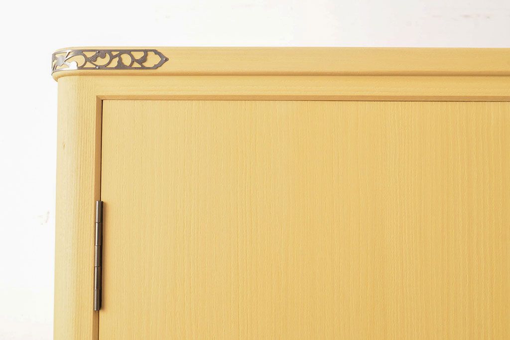 明るい色合いの木肌に、上品な前飾りの金具が映えます。