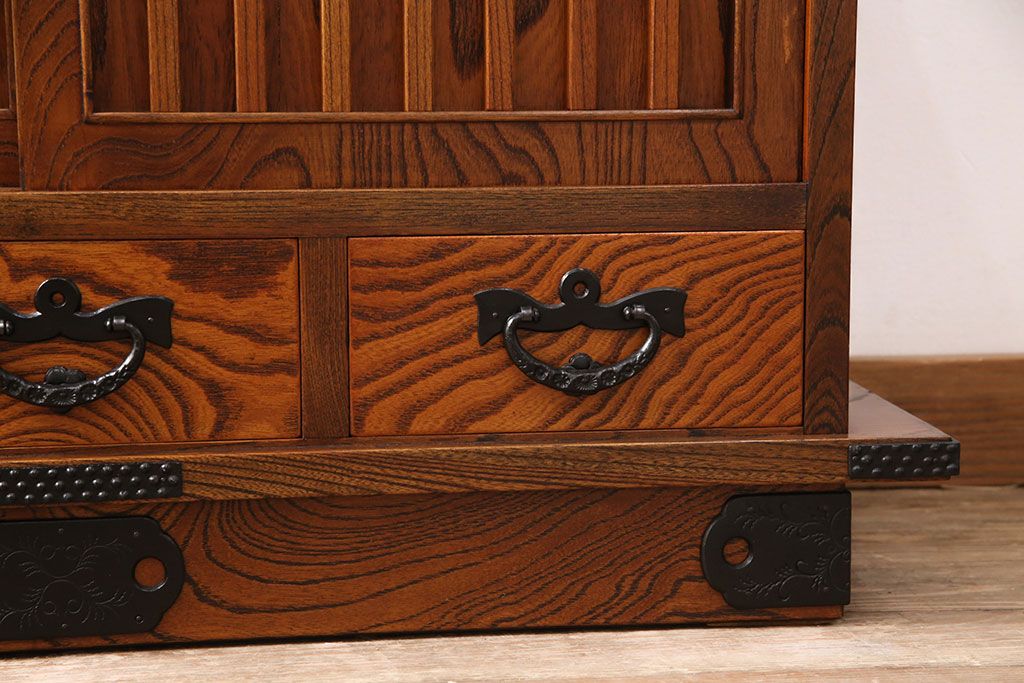 民芸家具 > 中古 美品 岩谷堂箪笥 美しい杢目と黒い金具が上質な和の雰囲気を演出する飾り棚(収納棚、戸棚、茶棚)(R-050924)