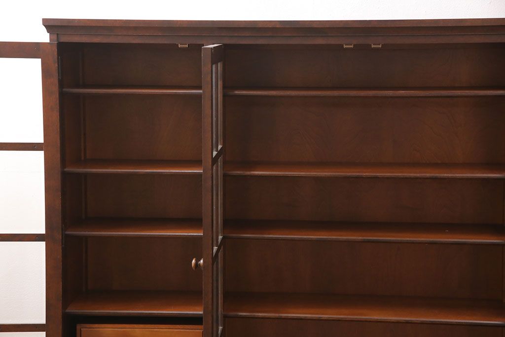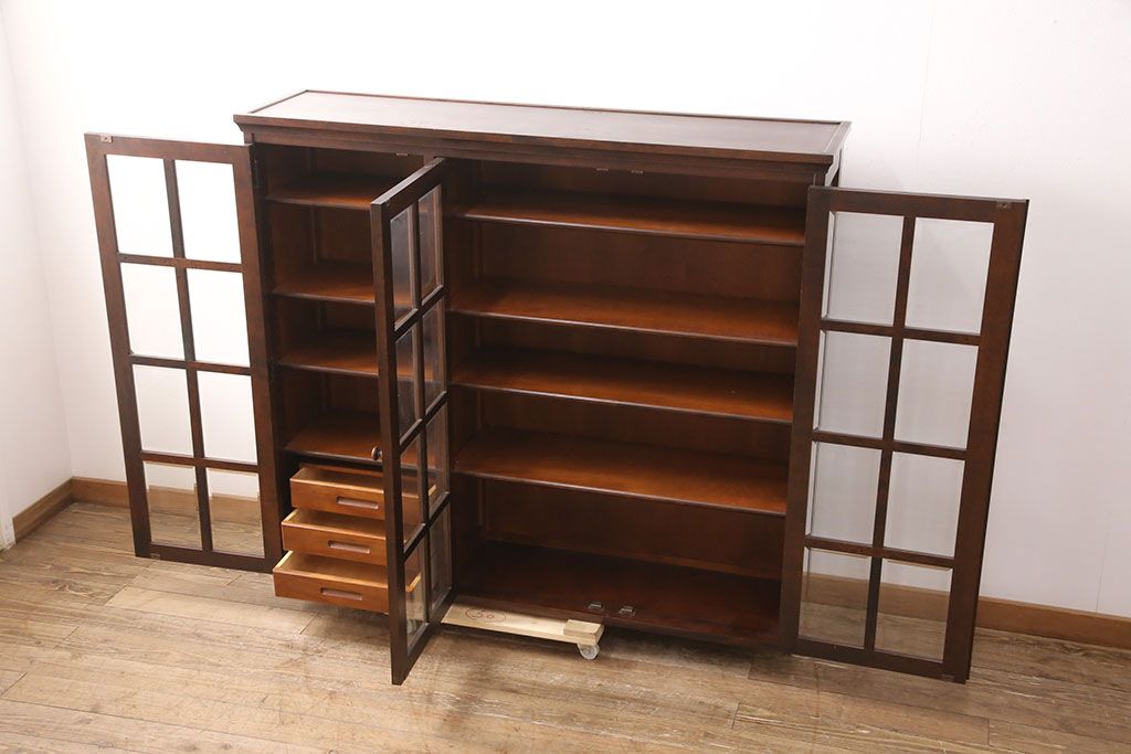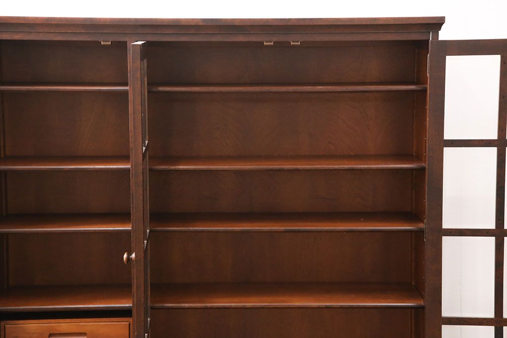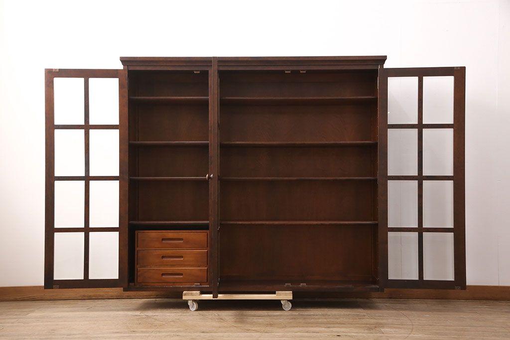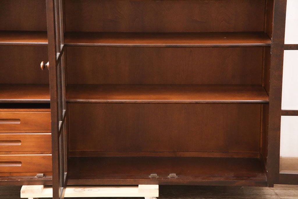 中古 北海道民芸家具 脚または台輪を付けてリメイク!様々な使い方ができるサイドボード(キャビネット、ブックケース、本箱、収納棚、食器棚)(R-050863)