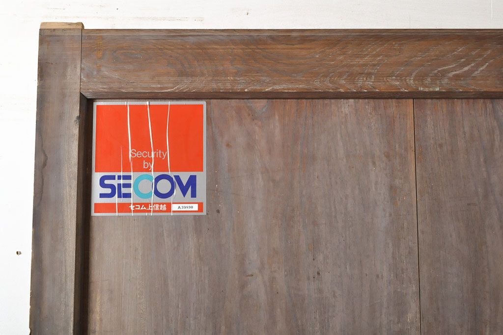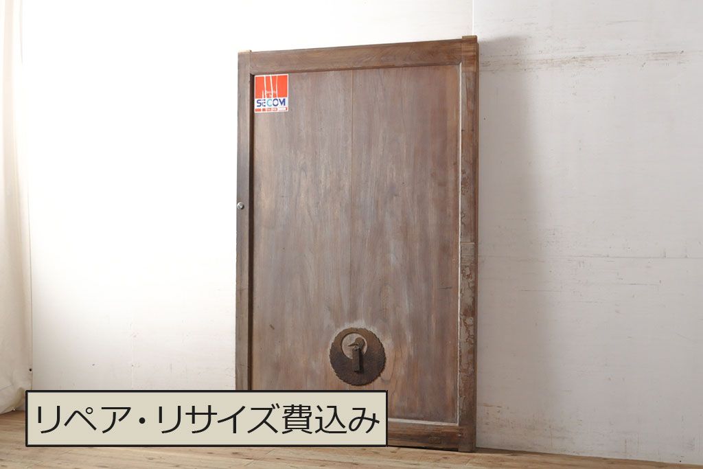 アンティーク建具 総ケヤキ材 鶴丸紋が目を惹く、渋い風合いの蔵戸(引き戸、玄関戸)(R-050774)