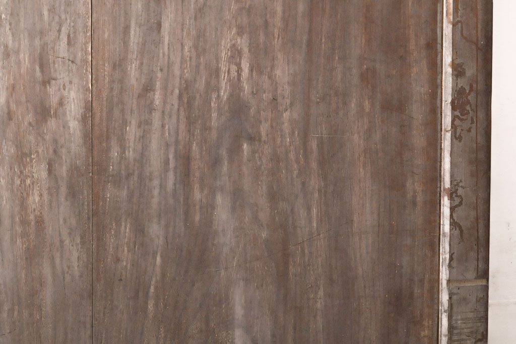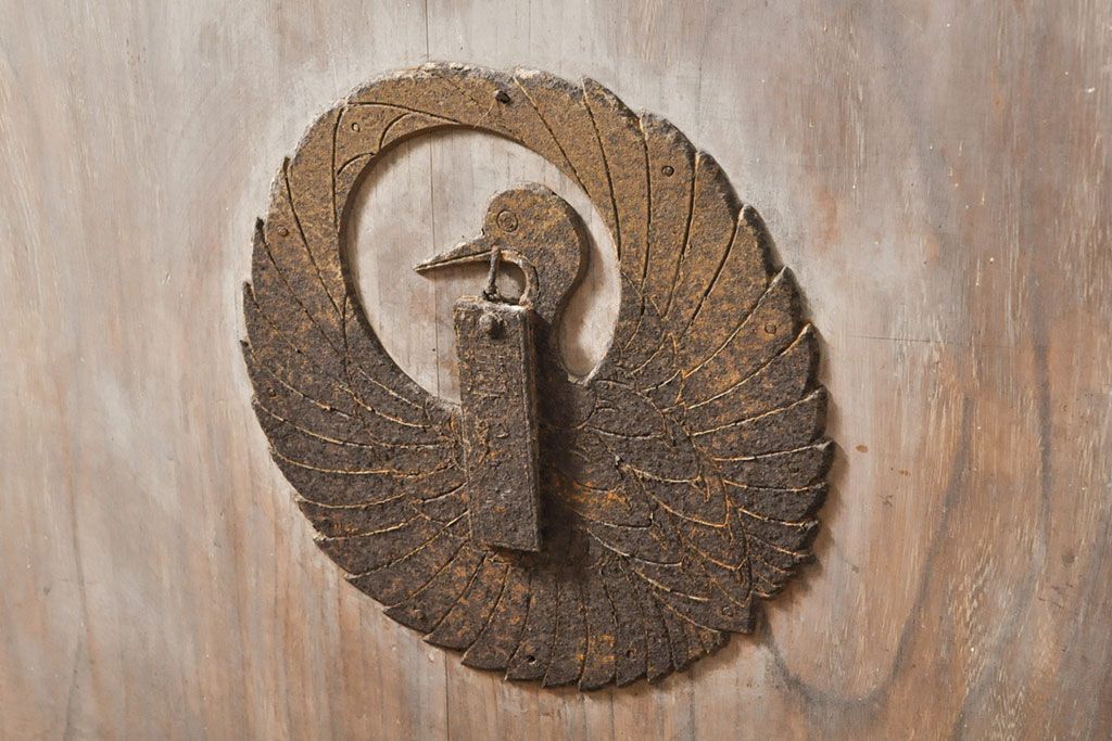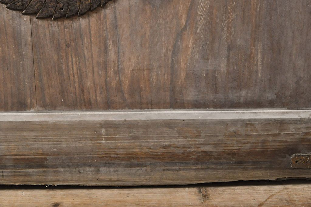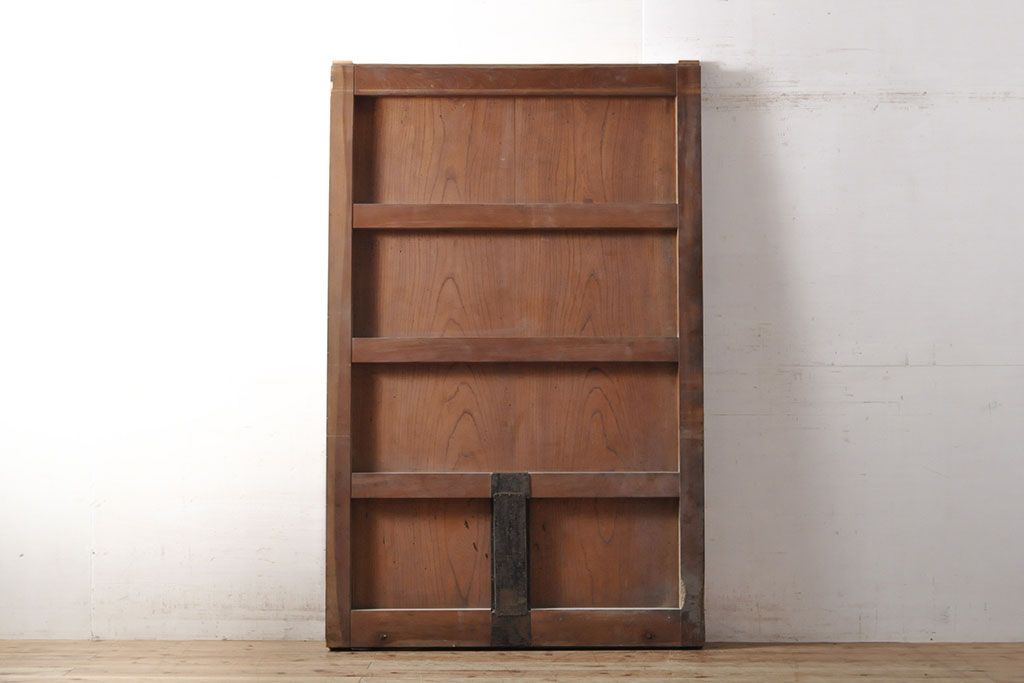 ラフジュ工房> ドア・建具> 玄関ドア・玄関戸 > アンティーク建具 総ケヤキ材 鶴丸紋が目を惹く、渋い風合いの蔵戸(引き戸、玄関戸)(R-050774)