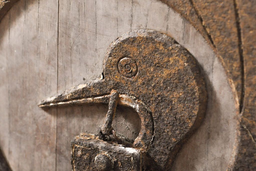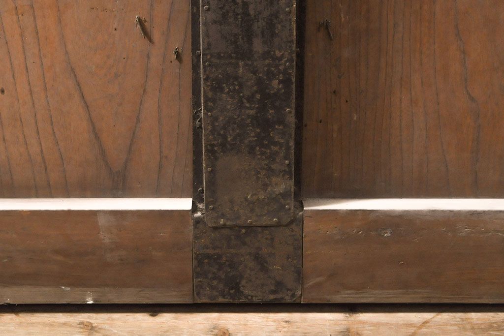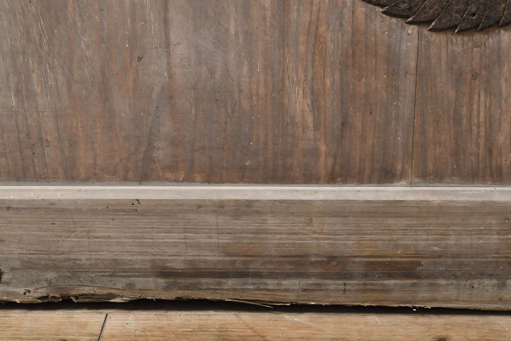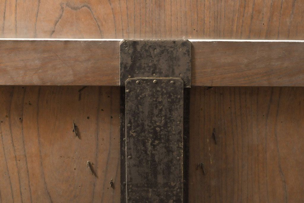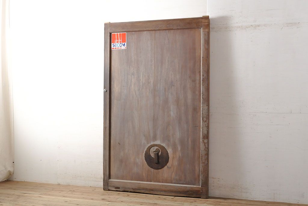 ラフジュ工房> ドア・建具> 玄関ドア・玄関戸 > アンティーク建具 総ケヤキ材 鶴丸紋が目を惹く、渋い風合いの蔵戸(引き戸、玄関戸)(R-050774)