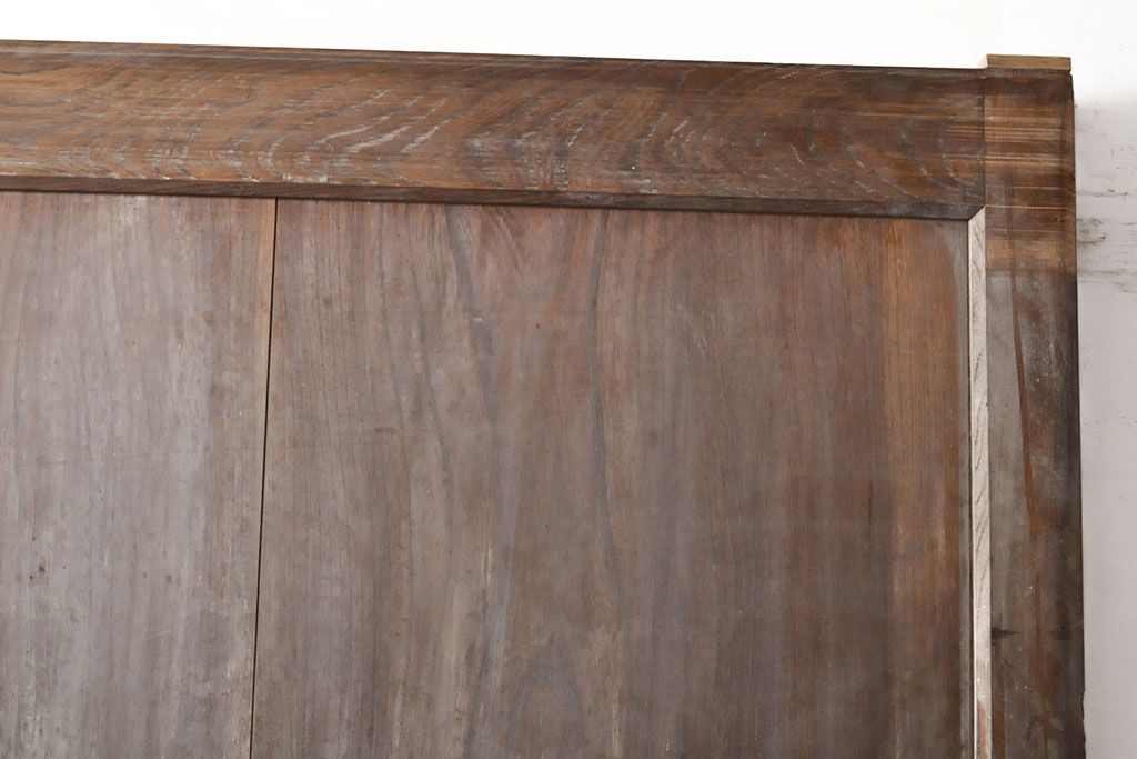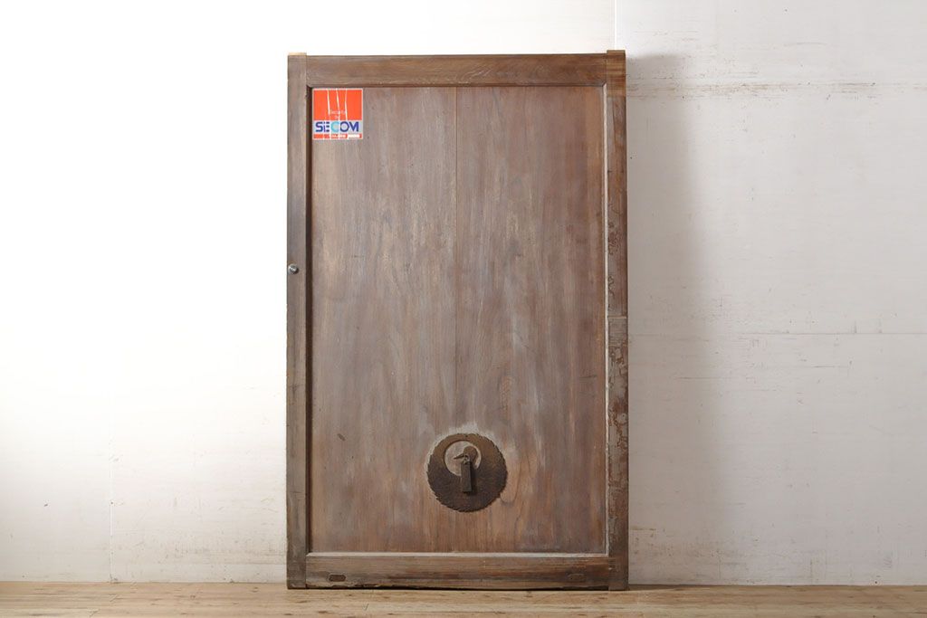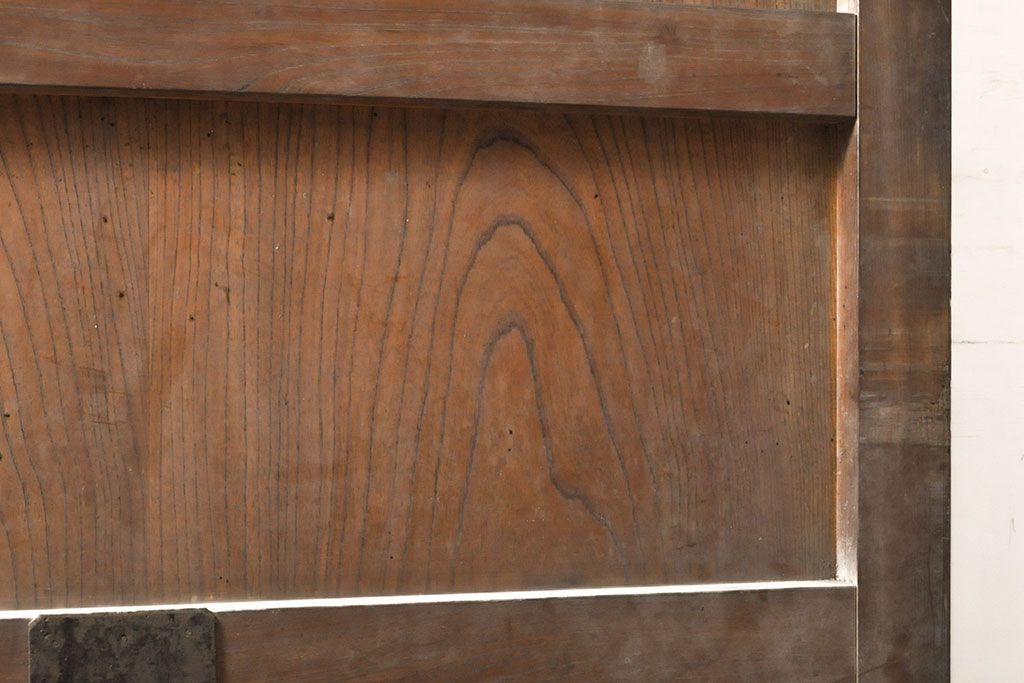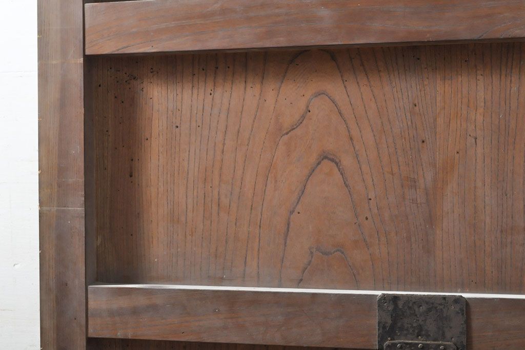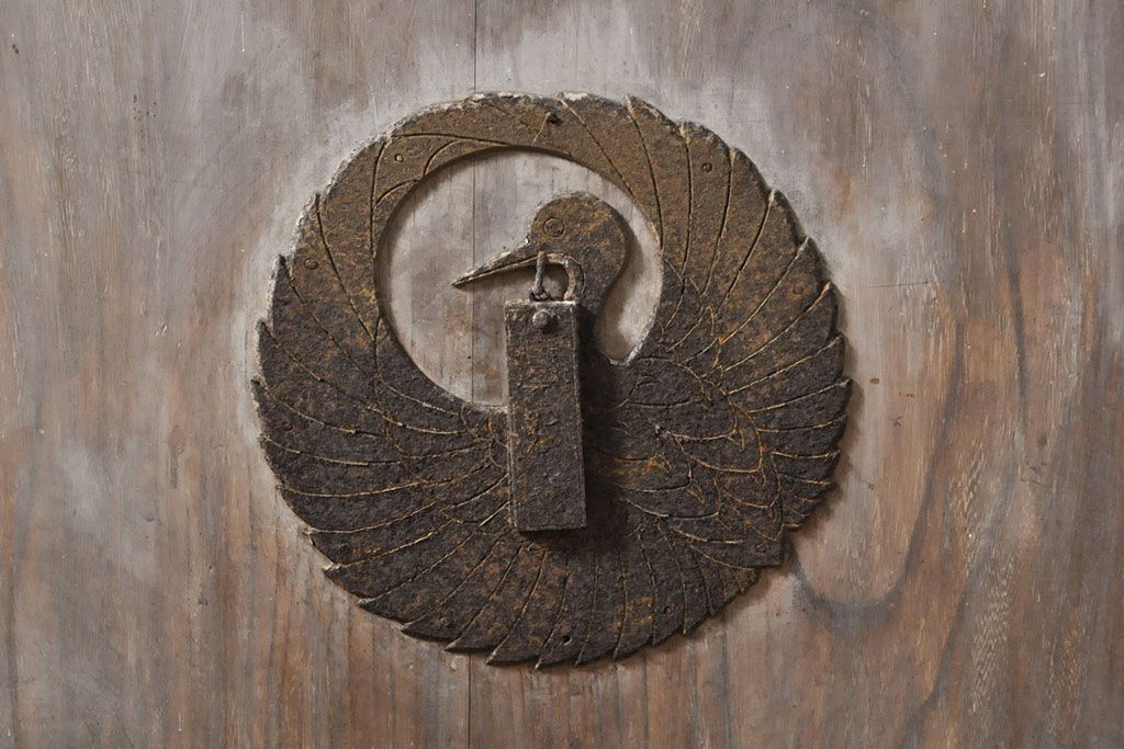 ラフジュ工房> ドア・建具> 蔵戸 > アンティーク建具 総ケヤキ材 鶴丸紋が目を惹く、渋い風合いの蔵戸(引き戸、玄関戸)(R-050774)