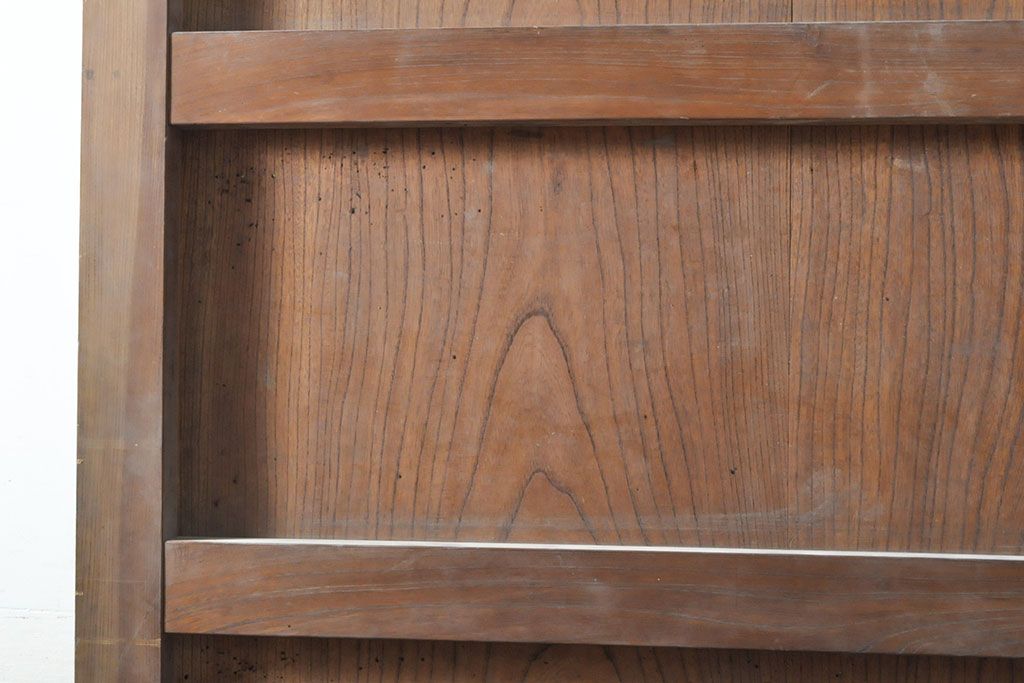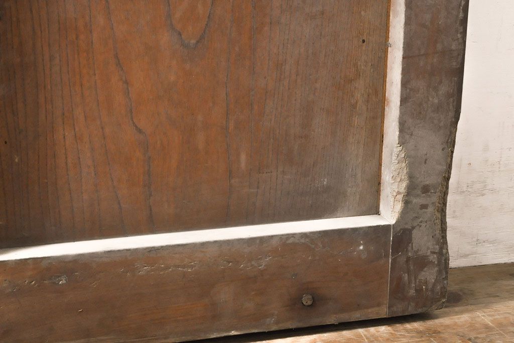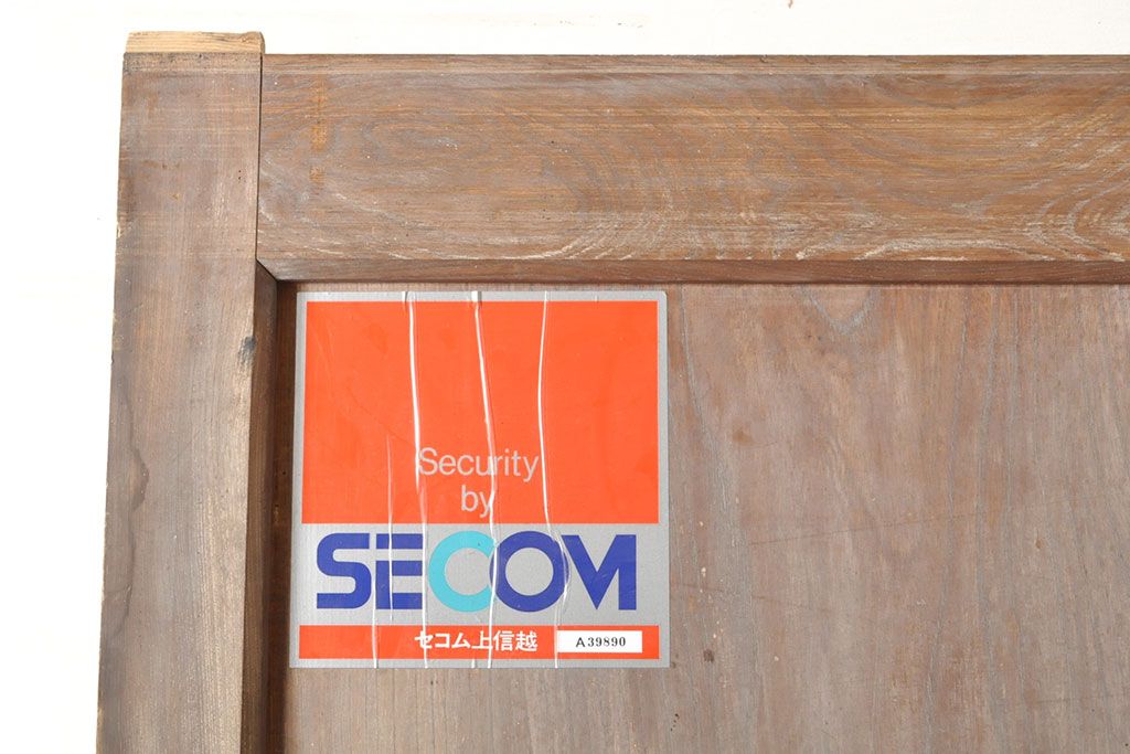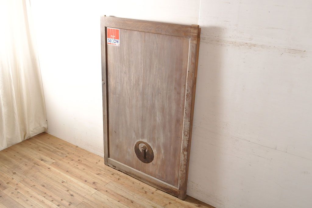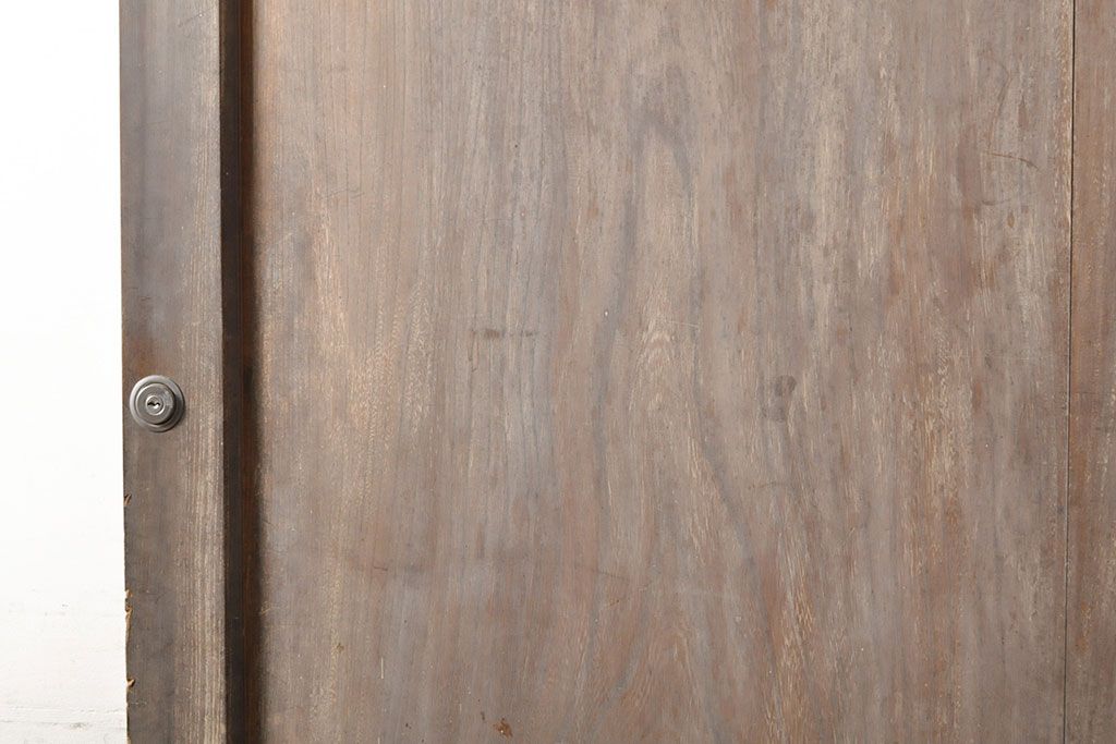 ラフジュ工房> ドア・建具> 蔵戸 > アンティーク建具 総ケヤキ材 鶴丸紋が目を惹く、渋い風合いの蔵戸(引き戸、玄関戸)(R-050774)