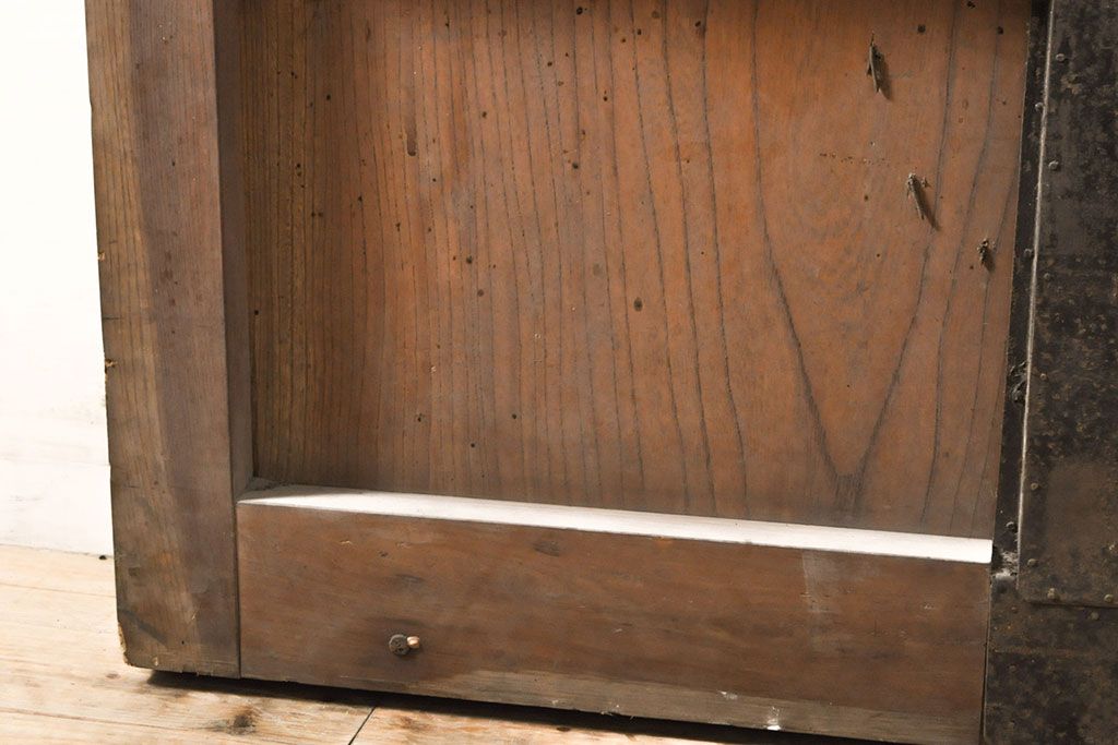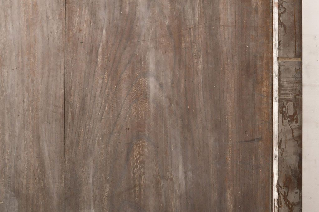 ラフジュ工房> ドア・建具> 引き戸 > アンティーク建具 総ケヤキ材 鶴丸紋が目を惹く、渋い風合いの蔵戸(引き戸、玄関戸)(R-050774)