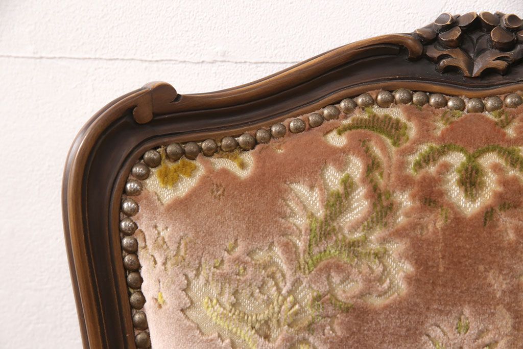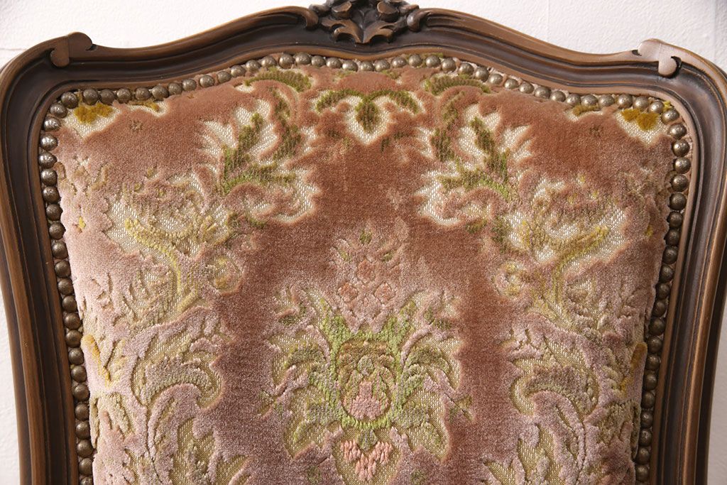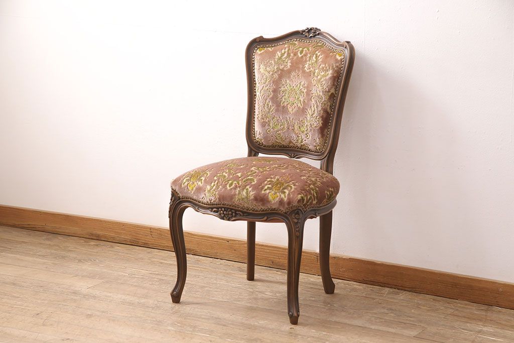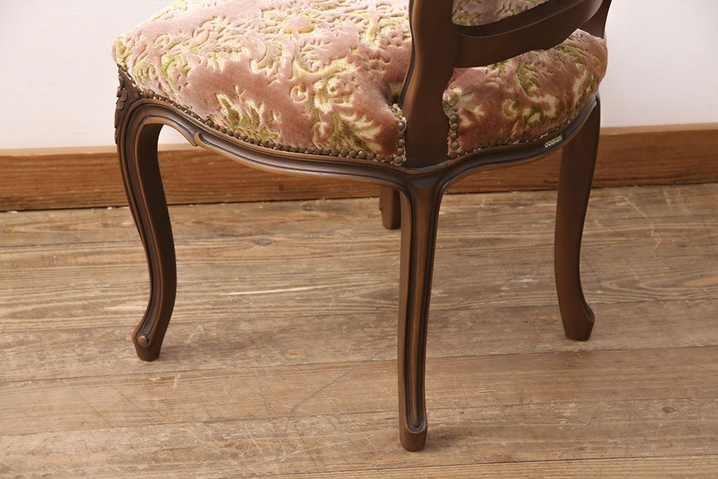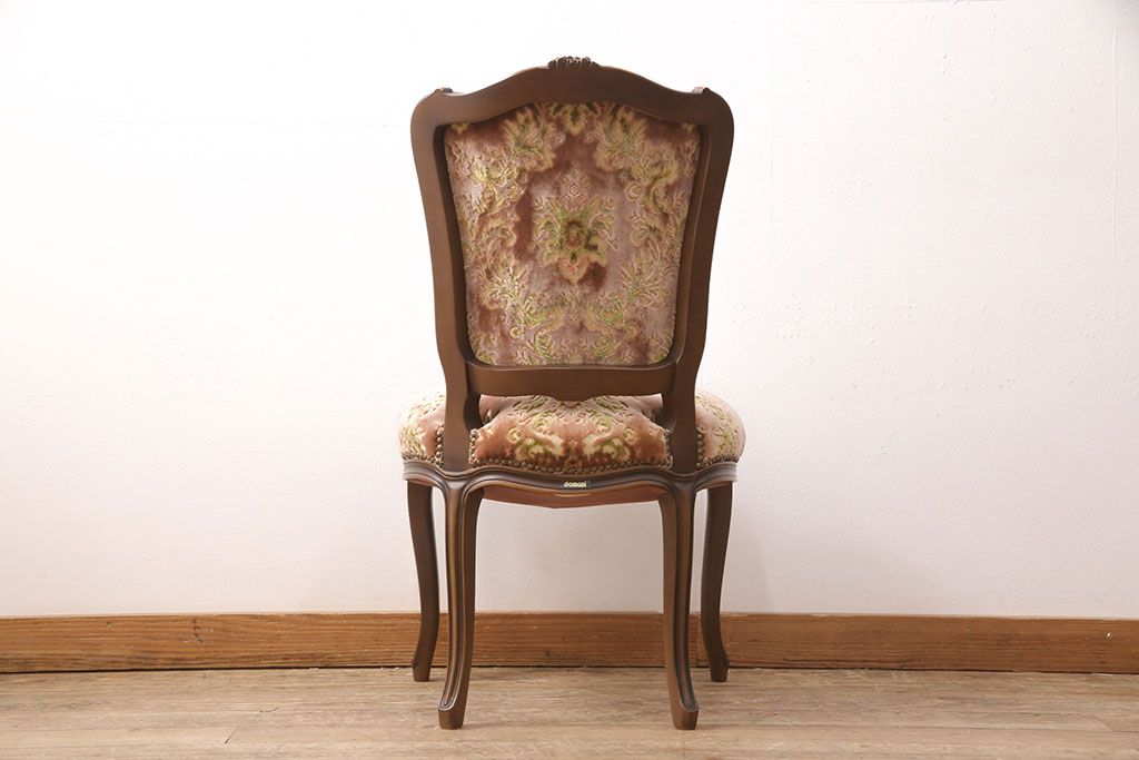 中古 美品 カリモク家具(karimoku) domani(ドマーニ) LouisXV(ルイXV)シリーズ 金華山張りのファブリックが高級感をエレガントな雰囲気を高めるダイニングチェア(定価約20万円)(R-050929)