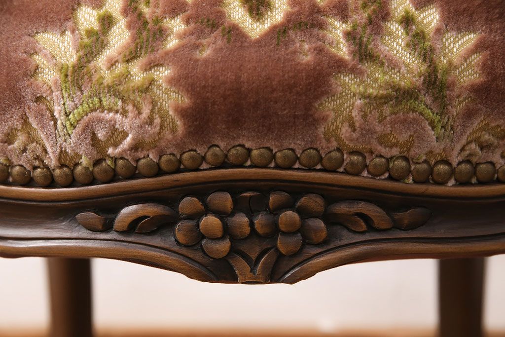 椅子・ベンチ> ダイニングチェア > 中古 美品 カリモク家具(karimoku) domani(ドマーニ) LouisXV(ルイXV)シリーズ 金華山張りのファブリックが高級感をエレガントな雰囲気を高めるダイニングチェア(定価約20万円)(R-050929)