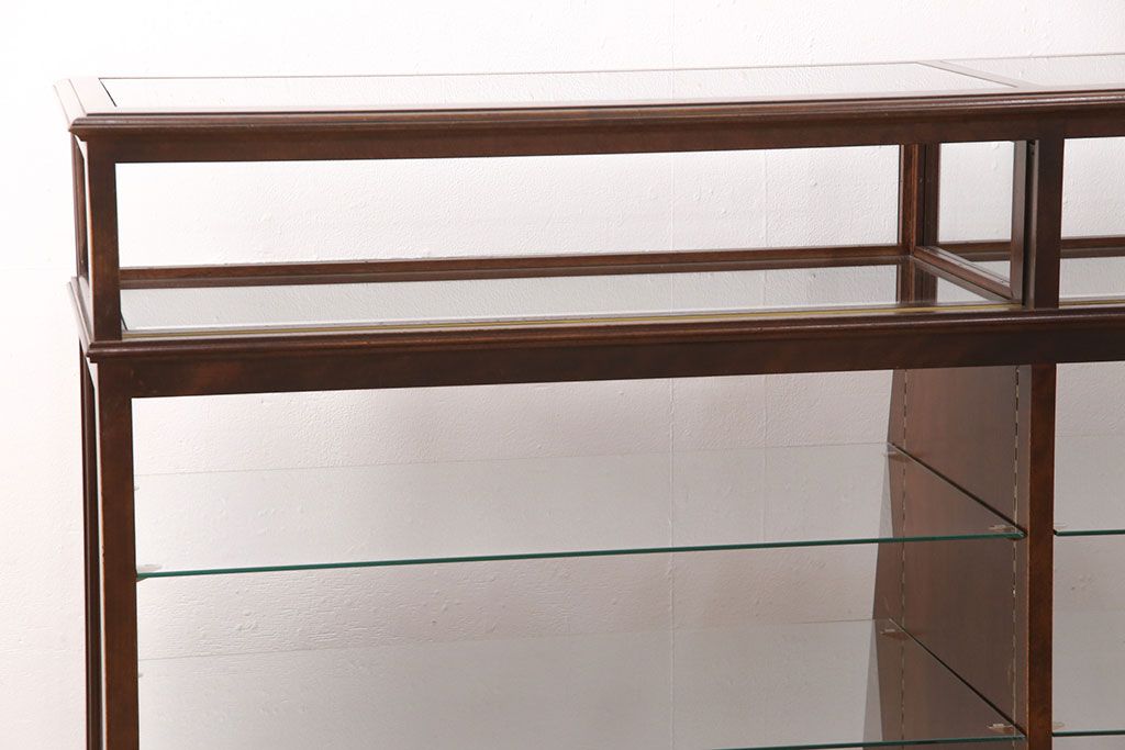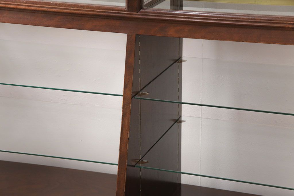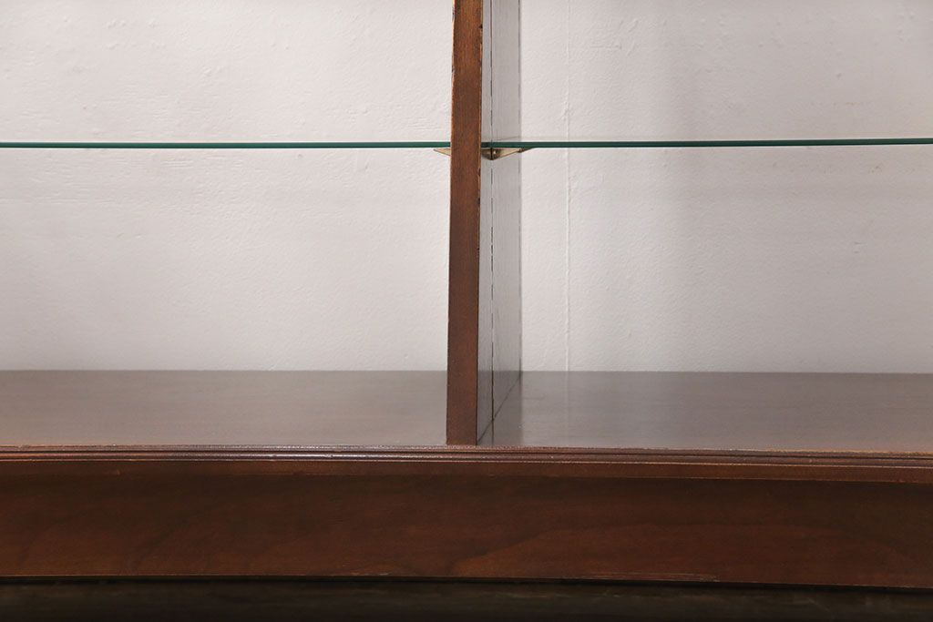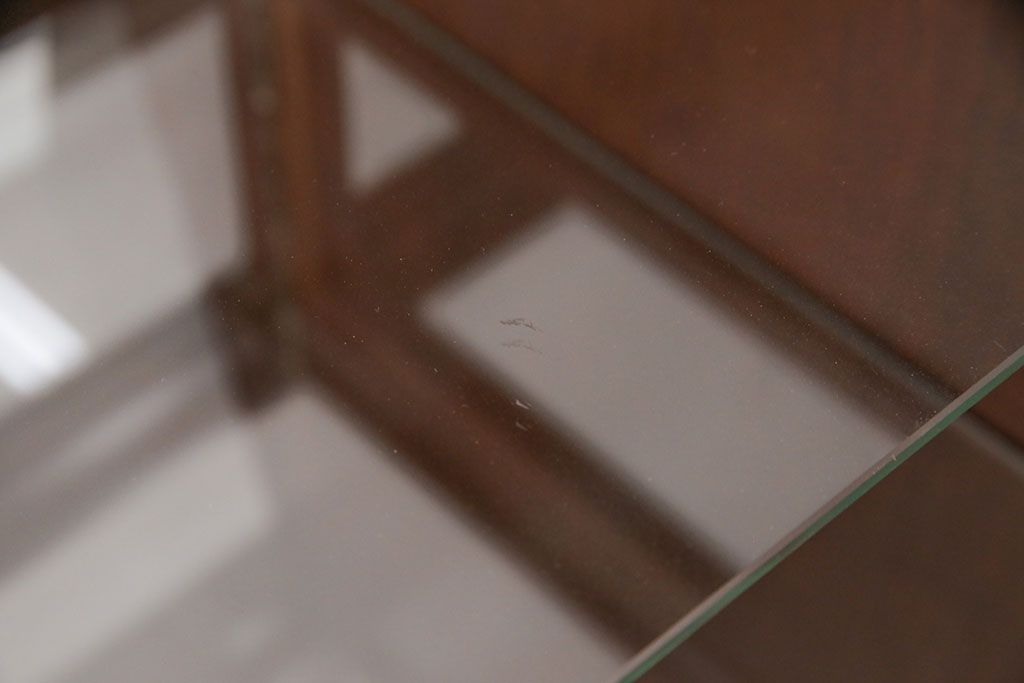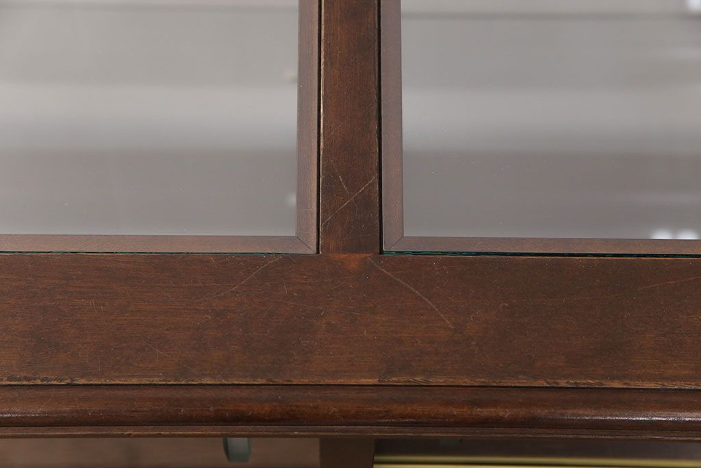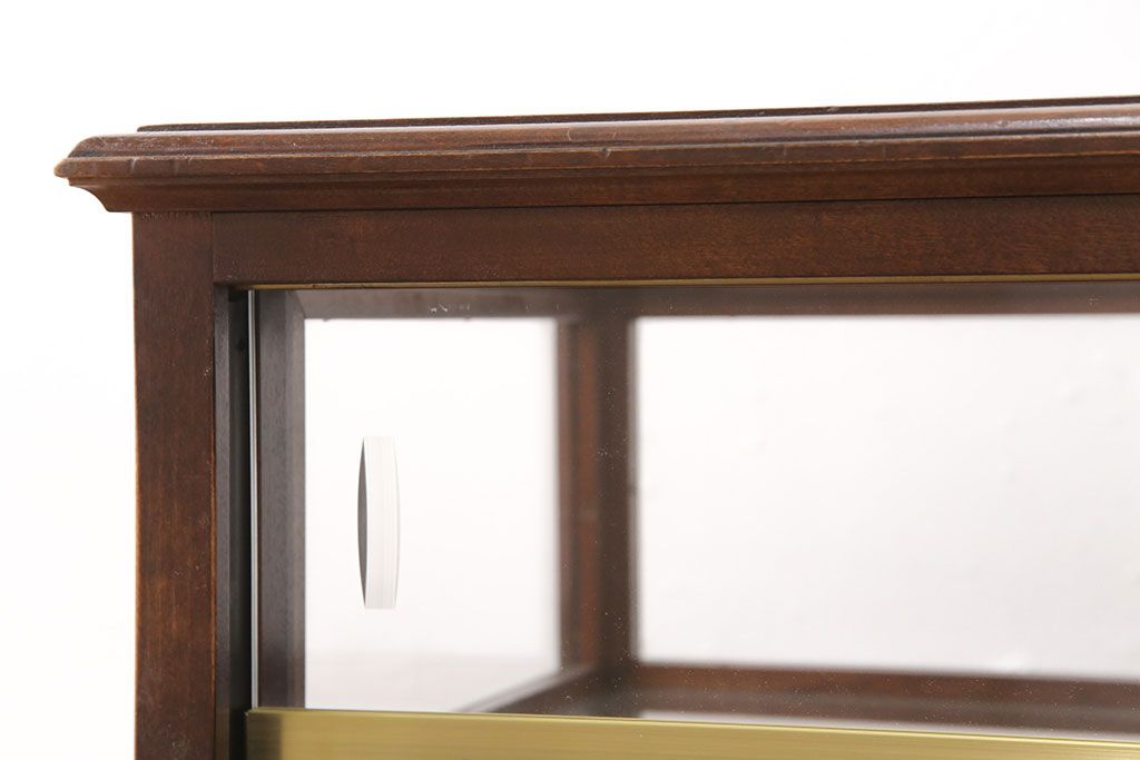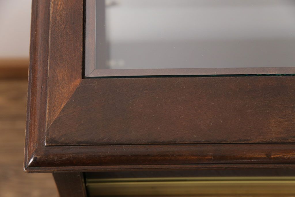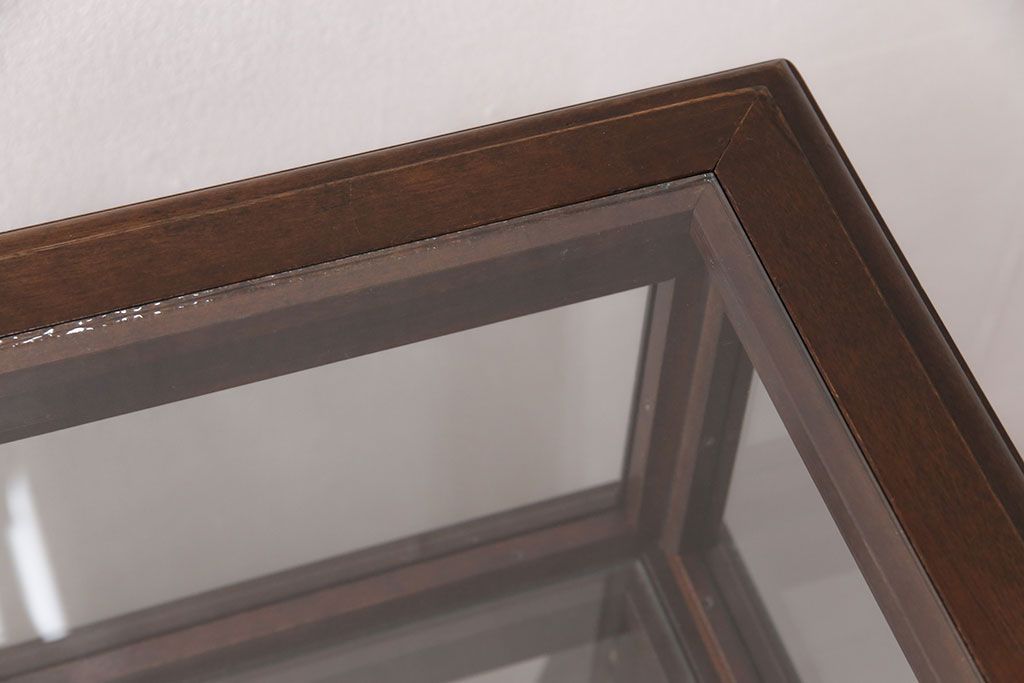木製ガラスケースの見た目を変えずに綺麗にリペア!傷の補修を行い、ワックス仕上げ。(ショーケース、陳列棚)