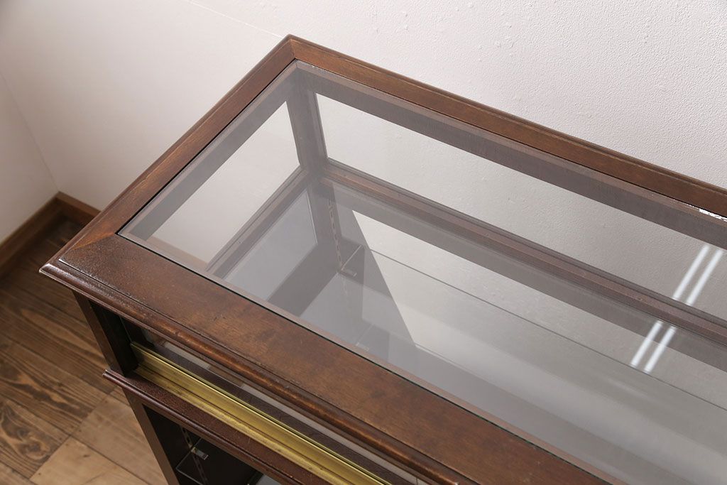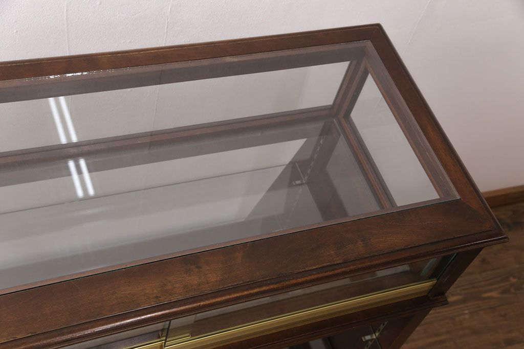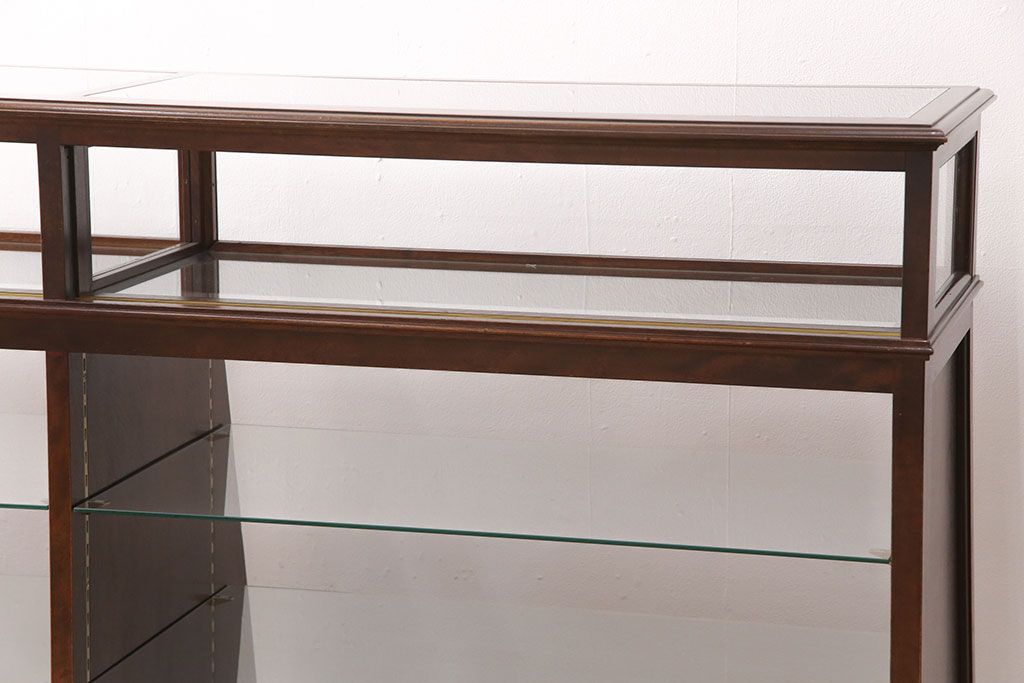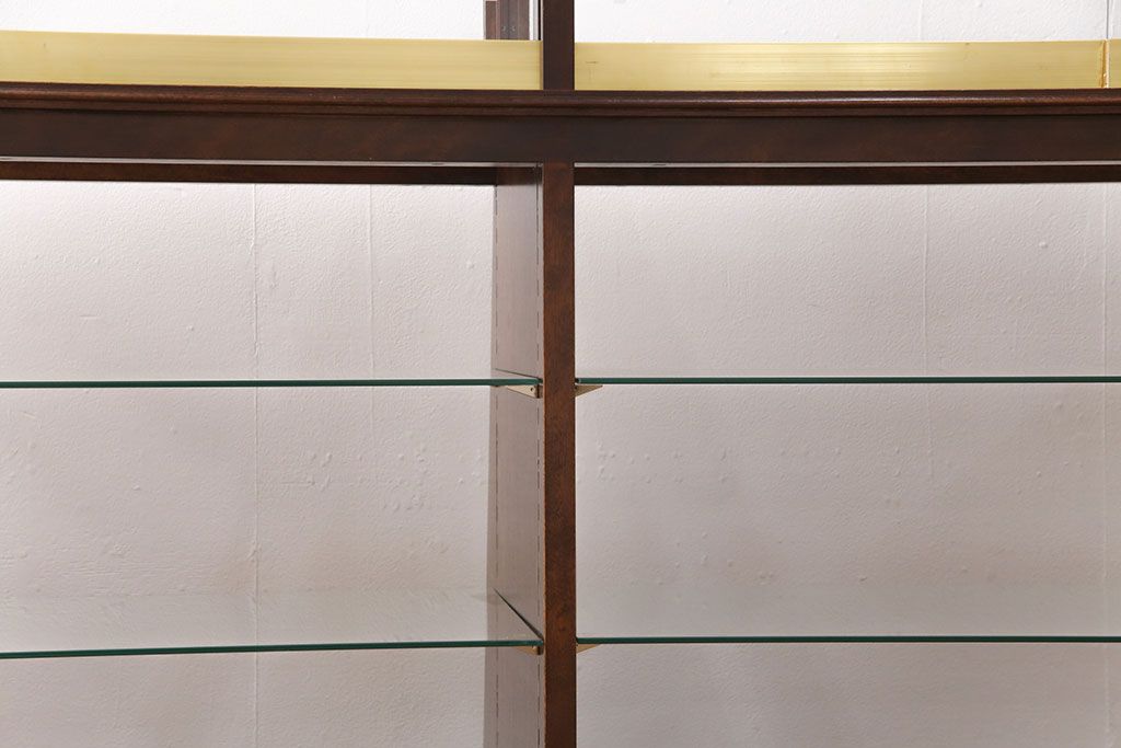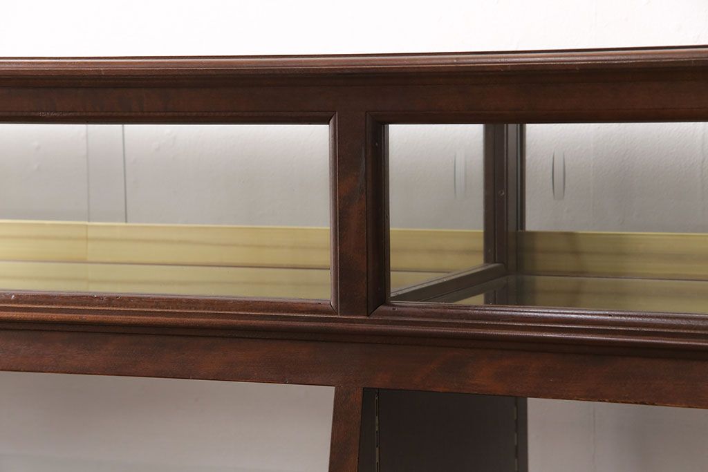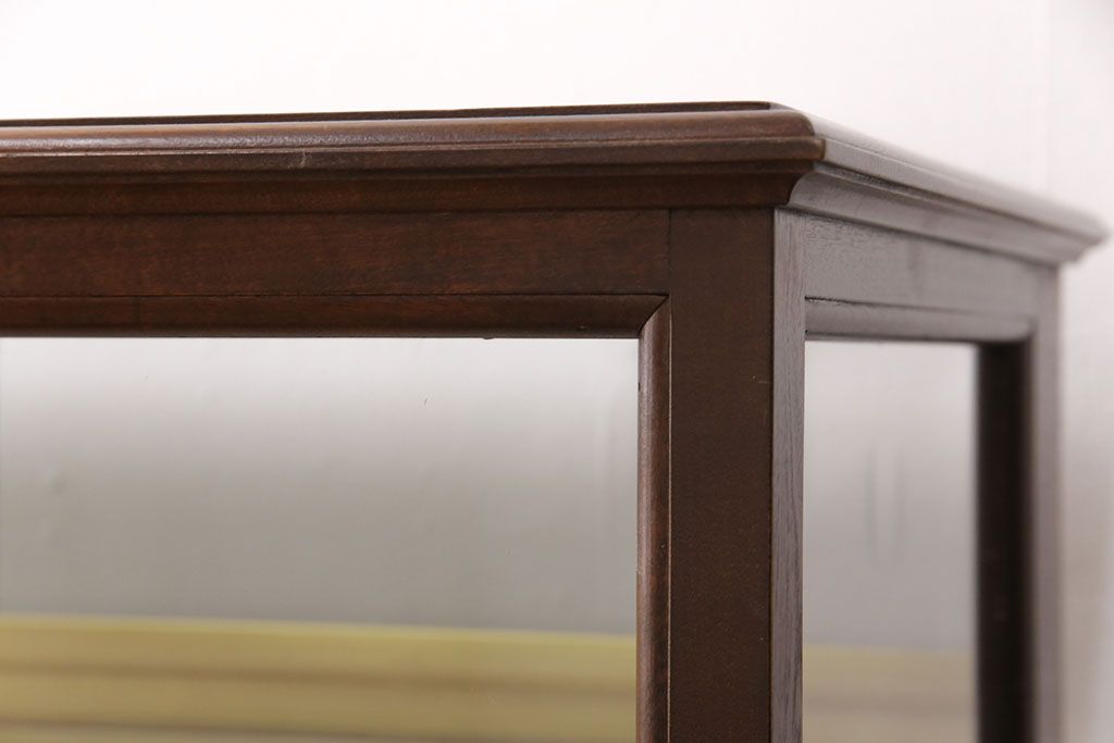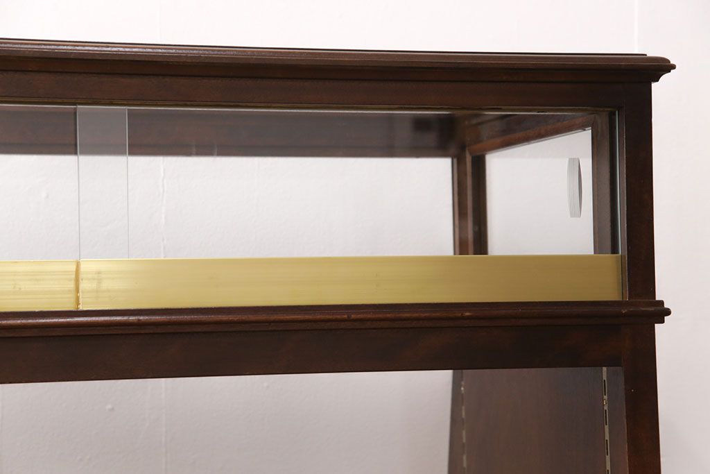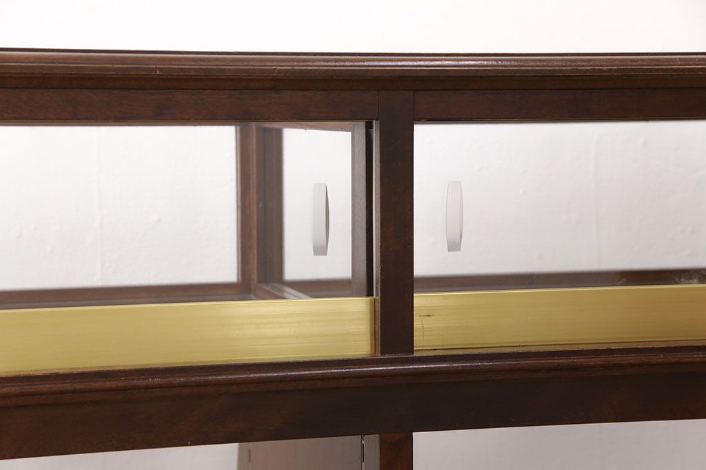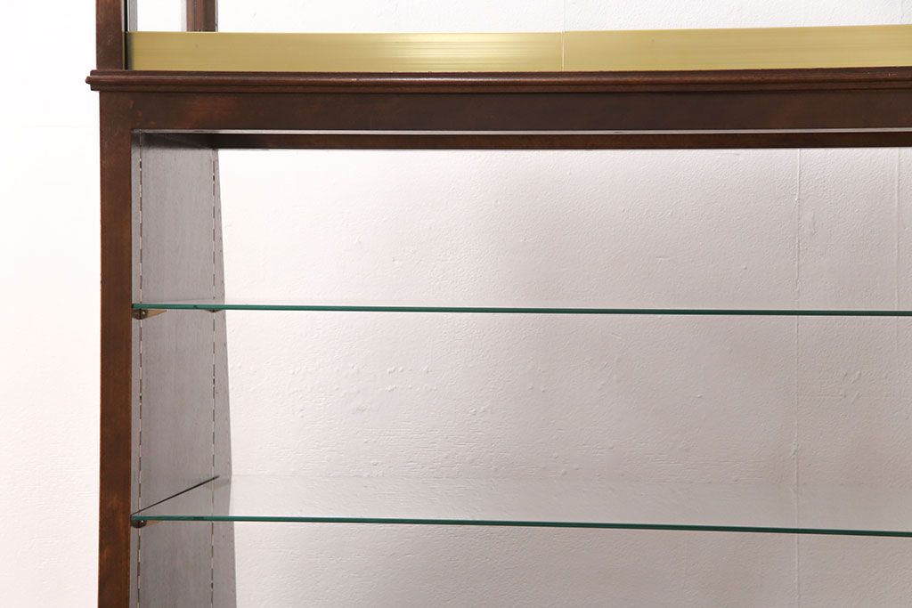 木製ガラスケースの見た目を変えずに綺麗にリペア!傷の補修を行い、ワックス仕上げ。(ショーケース、陳列棚)