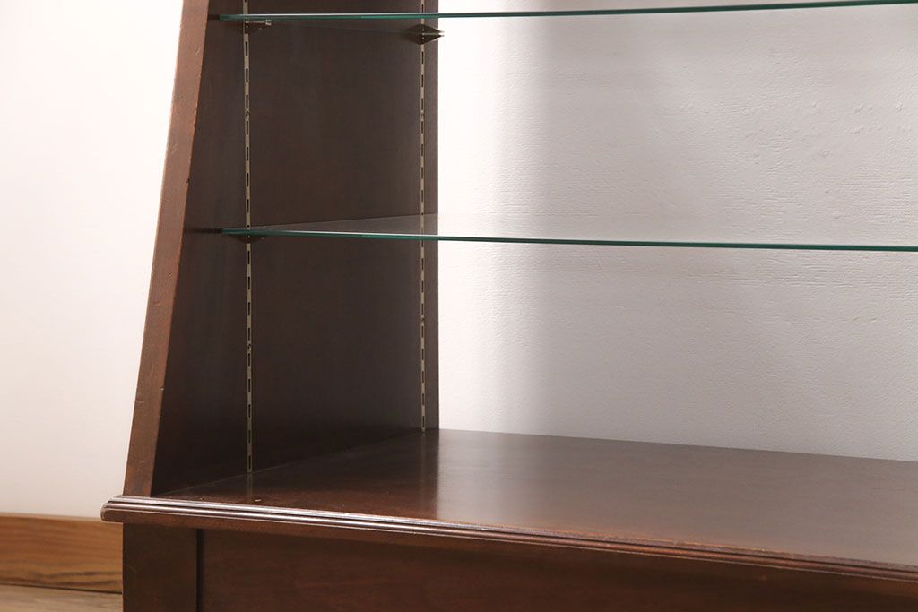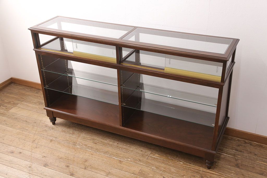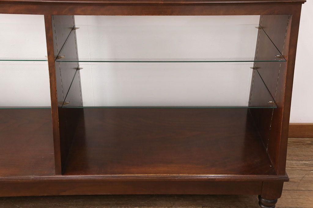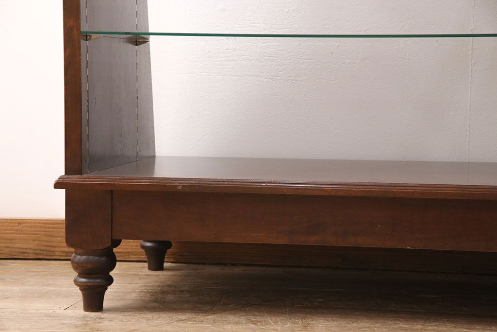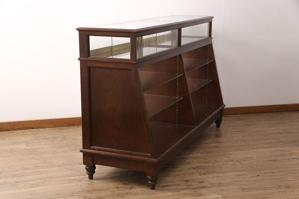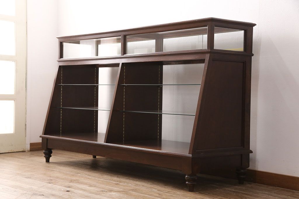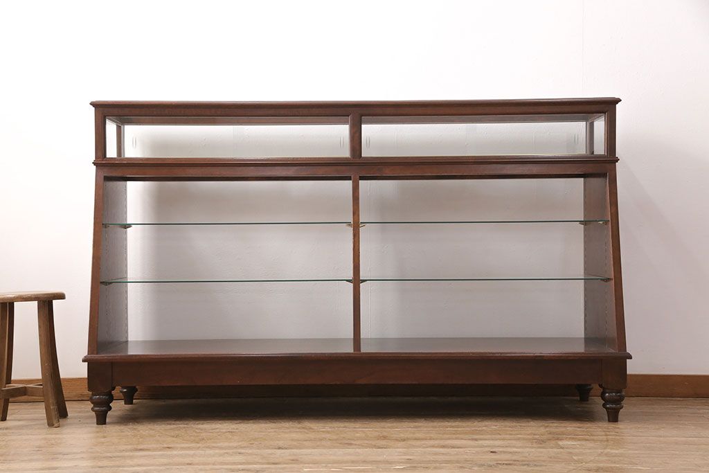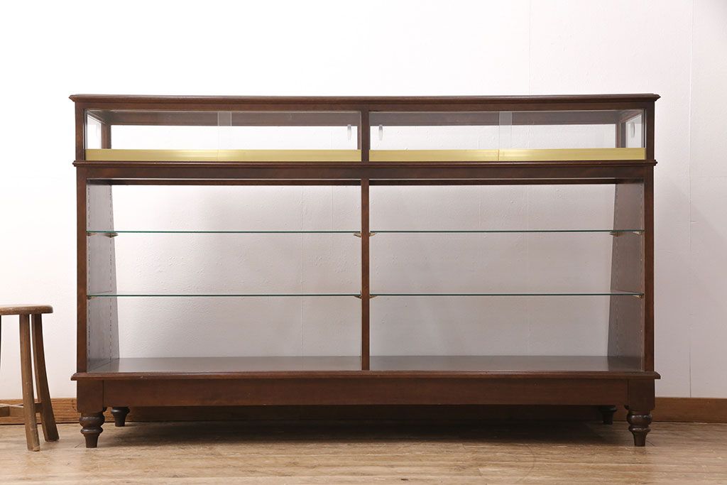 木製ガラスケースの見た目を変えずに綺麗にリペア!傷の補修を行い、ワックス仕上げ。(ショーケース、陳列棚)