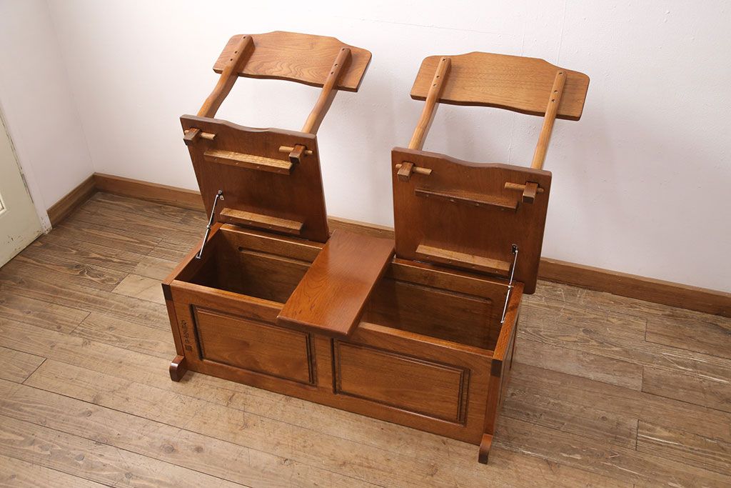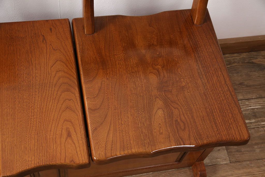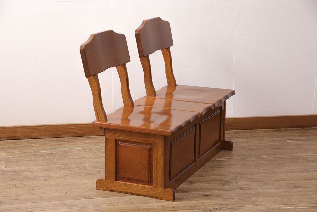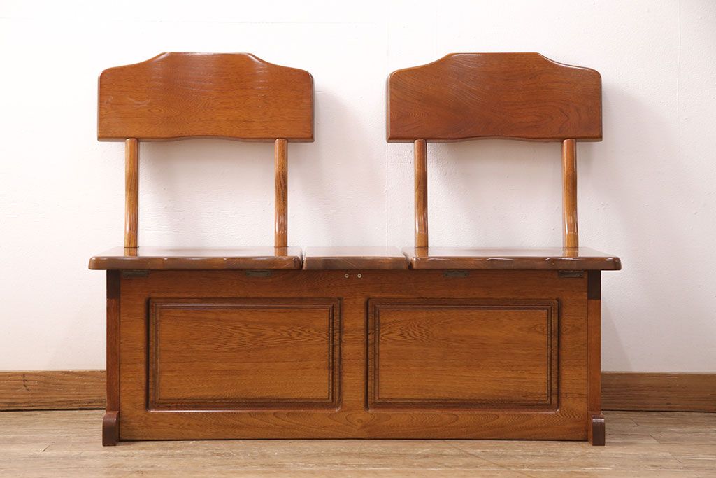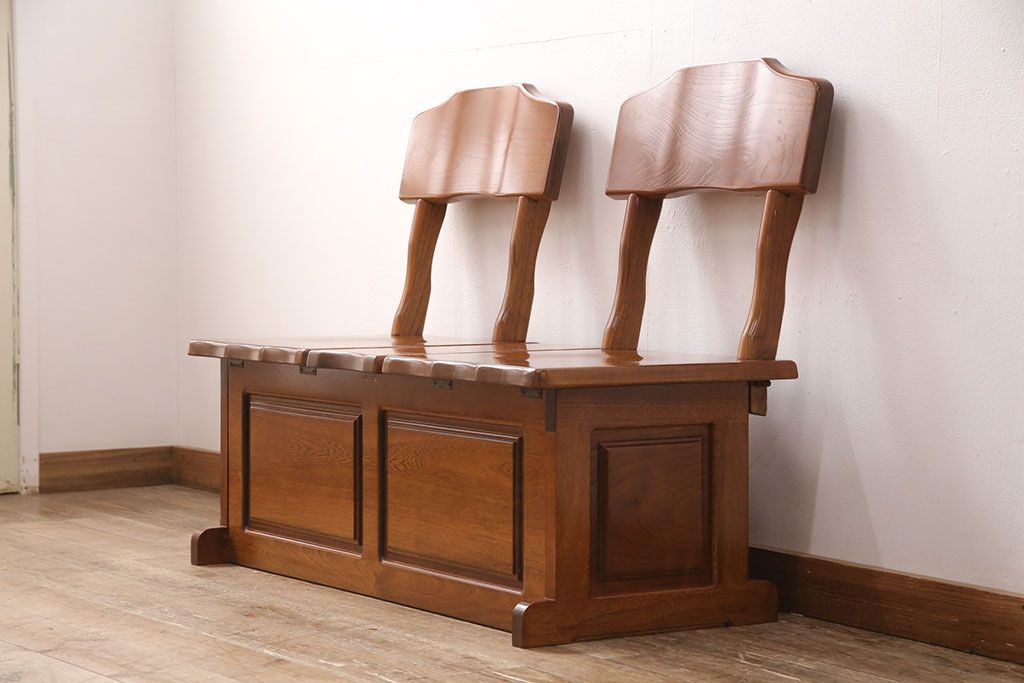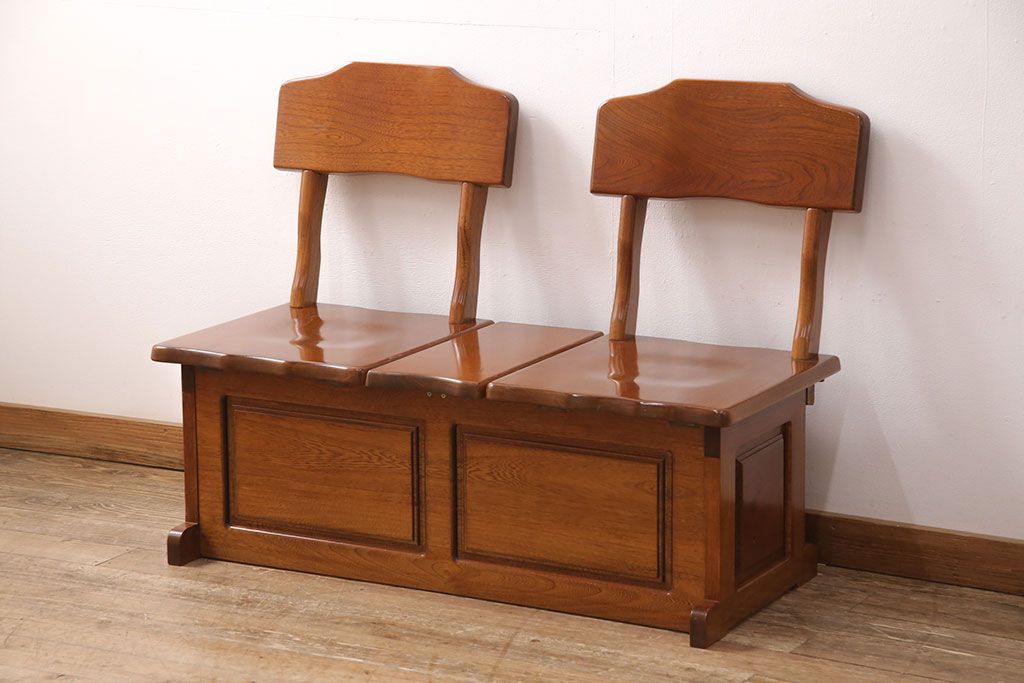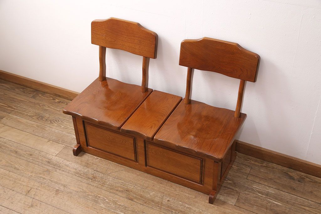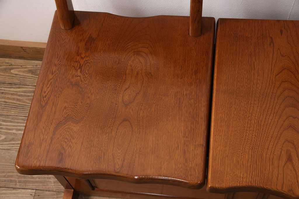 椅子・ベンチ> ダイニングチェア > 中古 伝統木芸士 石橋武士作 ケヤキ材 上質な和の空間づくりに活躍する2人掛けベンチ(チェア・椅子)(定価16万5千円)(R-050972)