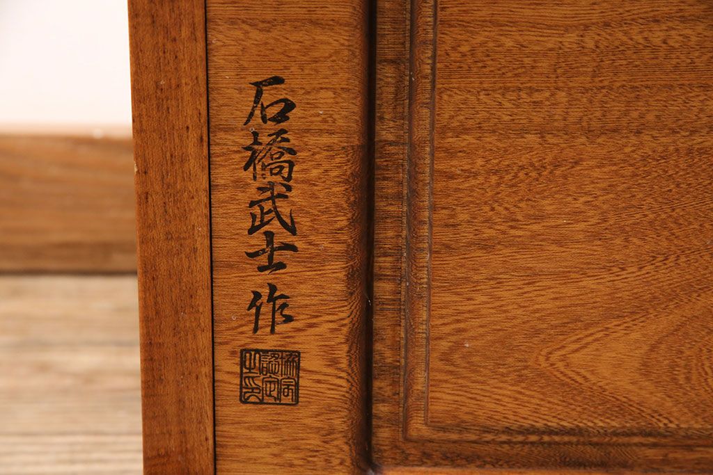 中古 伝統木芸士 石橋武士作 ケヤキ材 上質な和の空間づくりに活躍する2人掛けベンチ(チェア・椅子)(定価16万5千円)(R-050972)です。