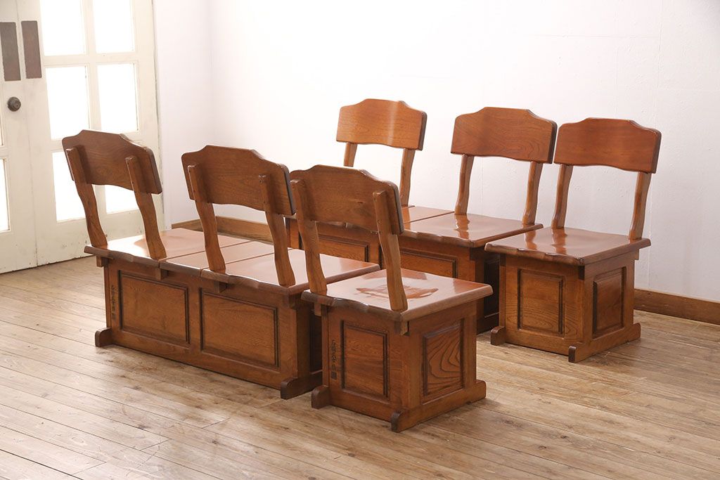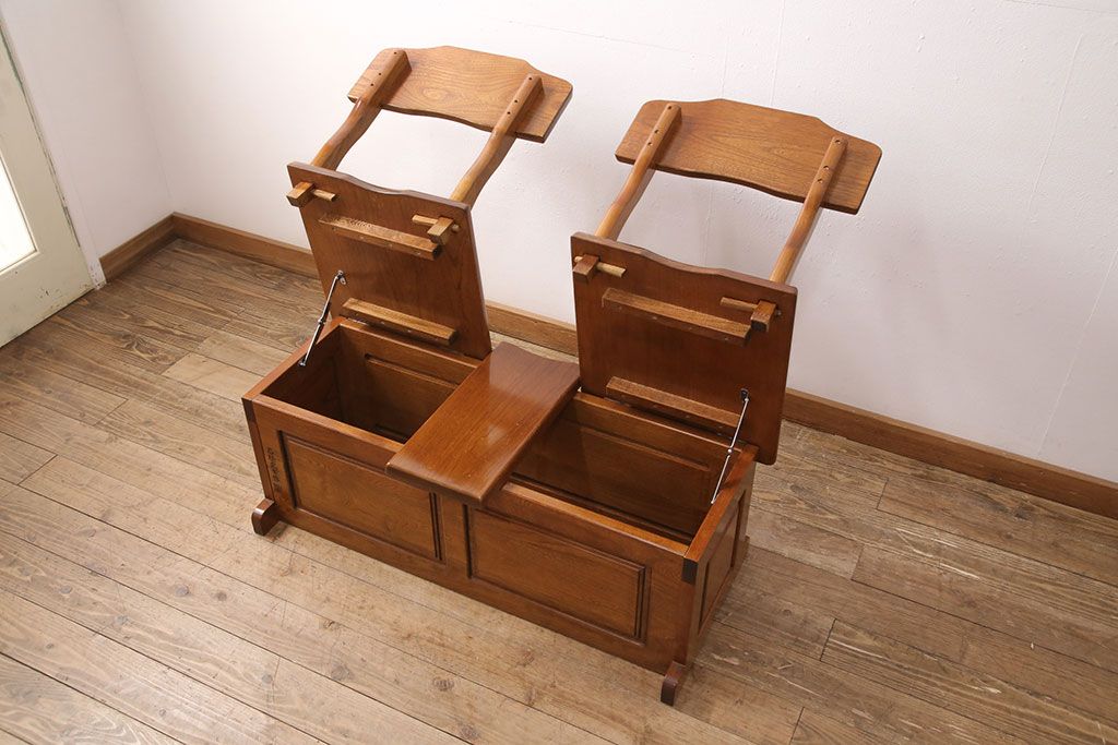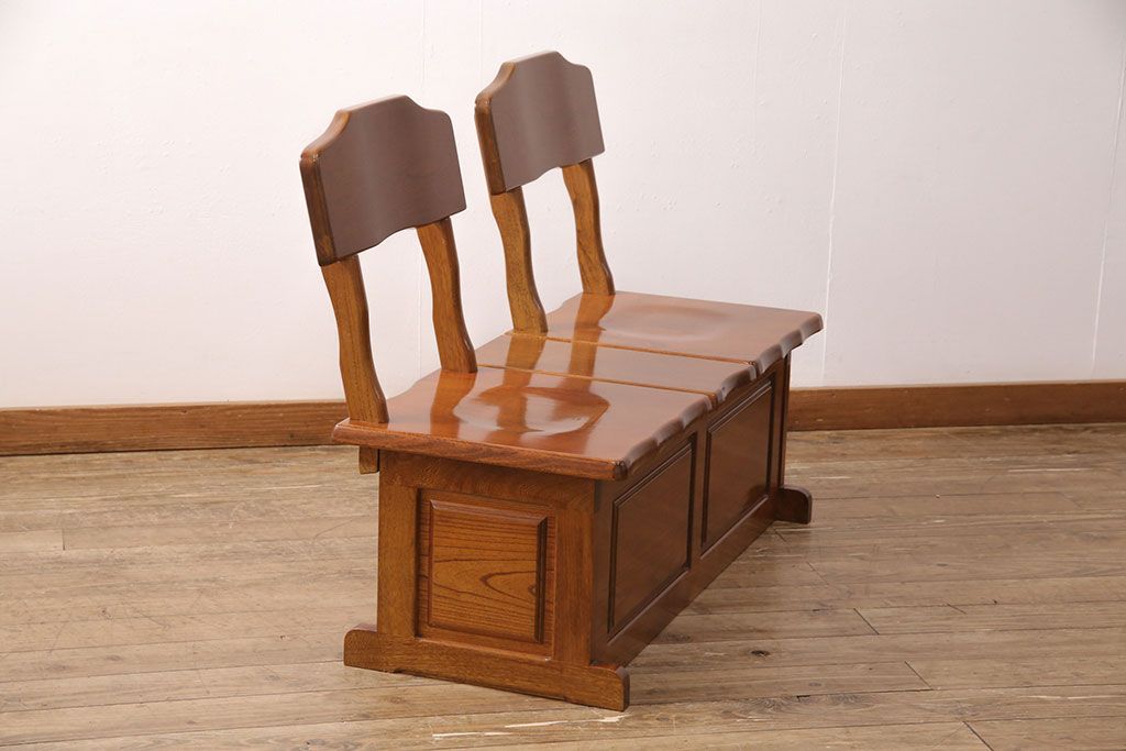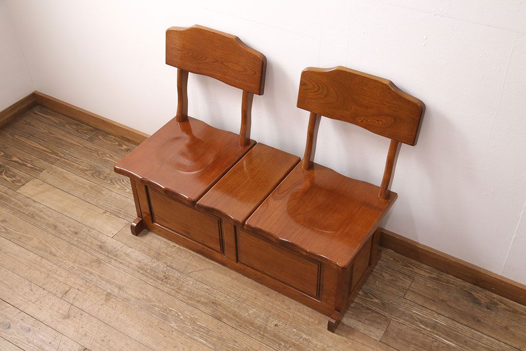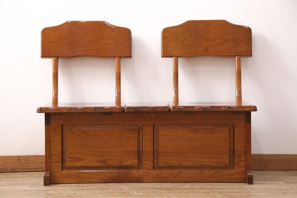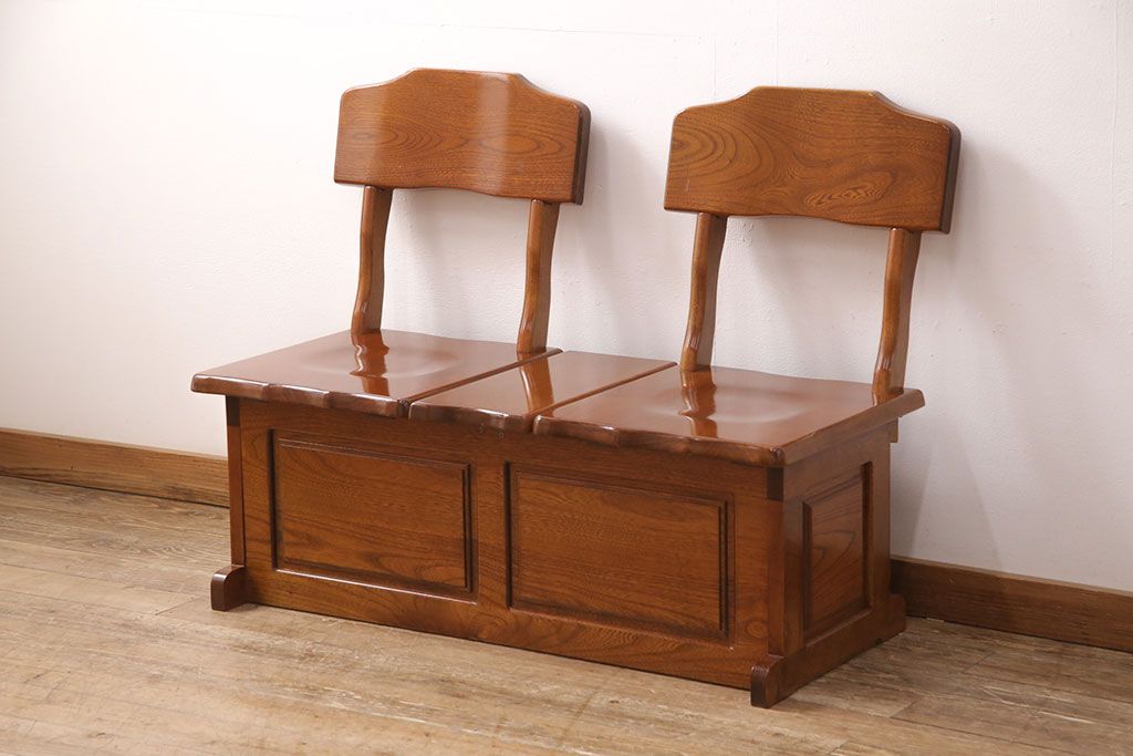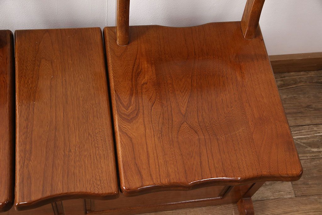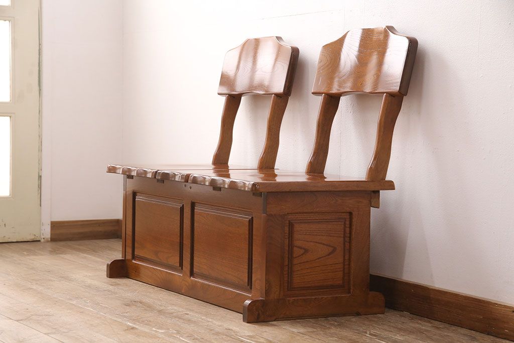 椅子・ベンチ> ダイニングチェア > 中古 伝統木芸士 石橋武士作 ケヤキ材 上質な和の空間づくりに活躍する2人掛けベンチ(チェア・椅子)(定価16万5千円)(R-050973)